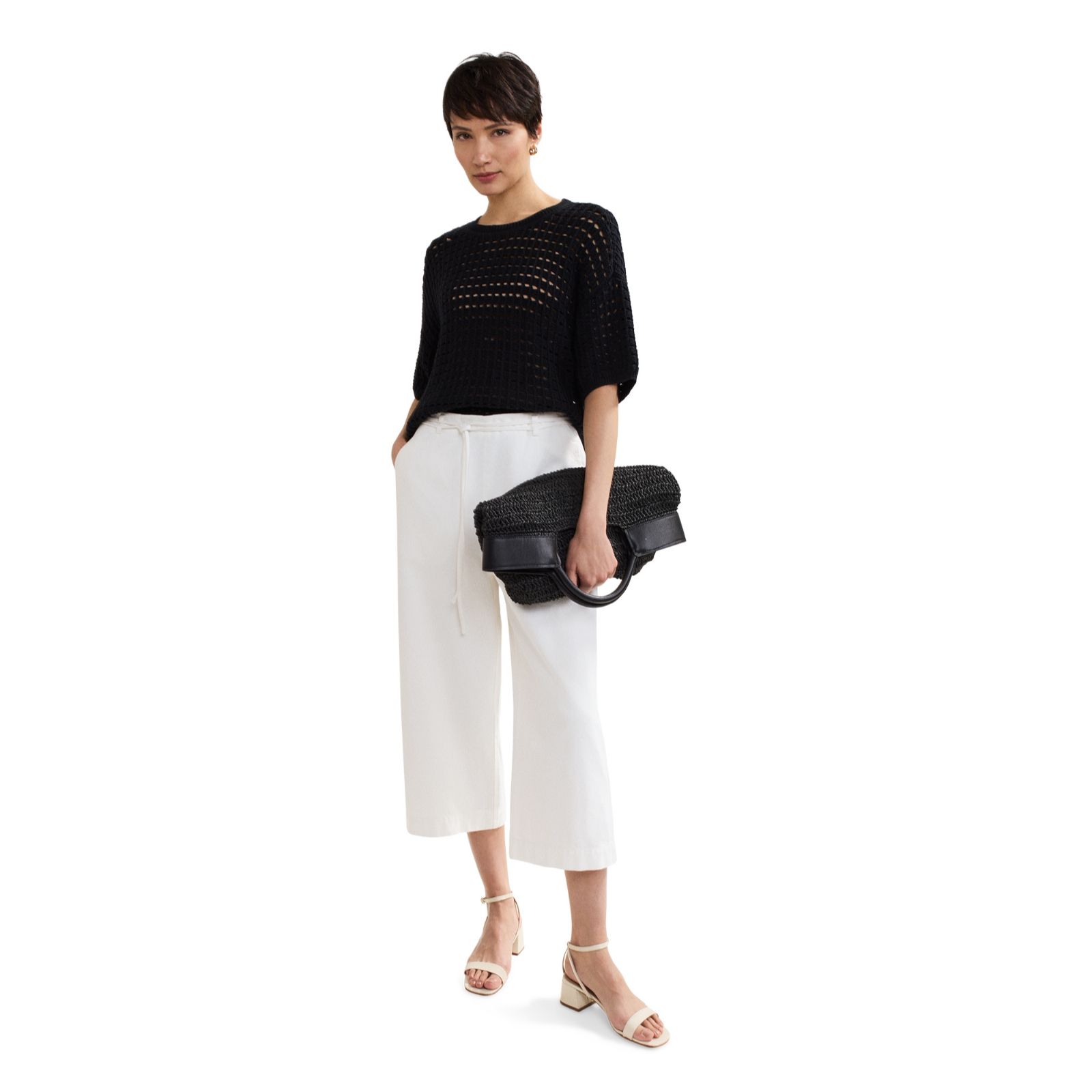 - Wide-leg silhouette