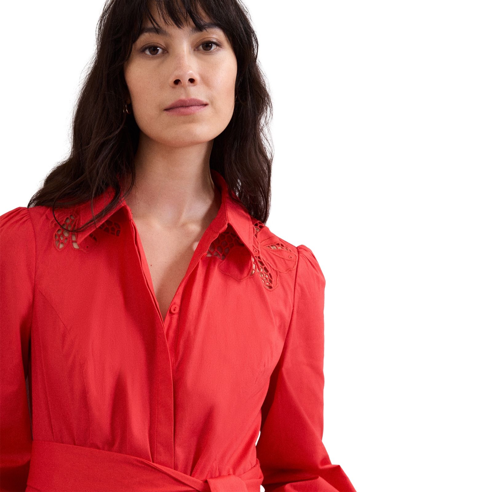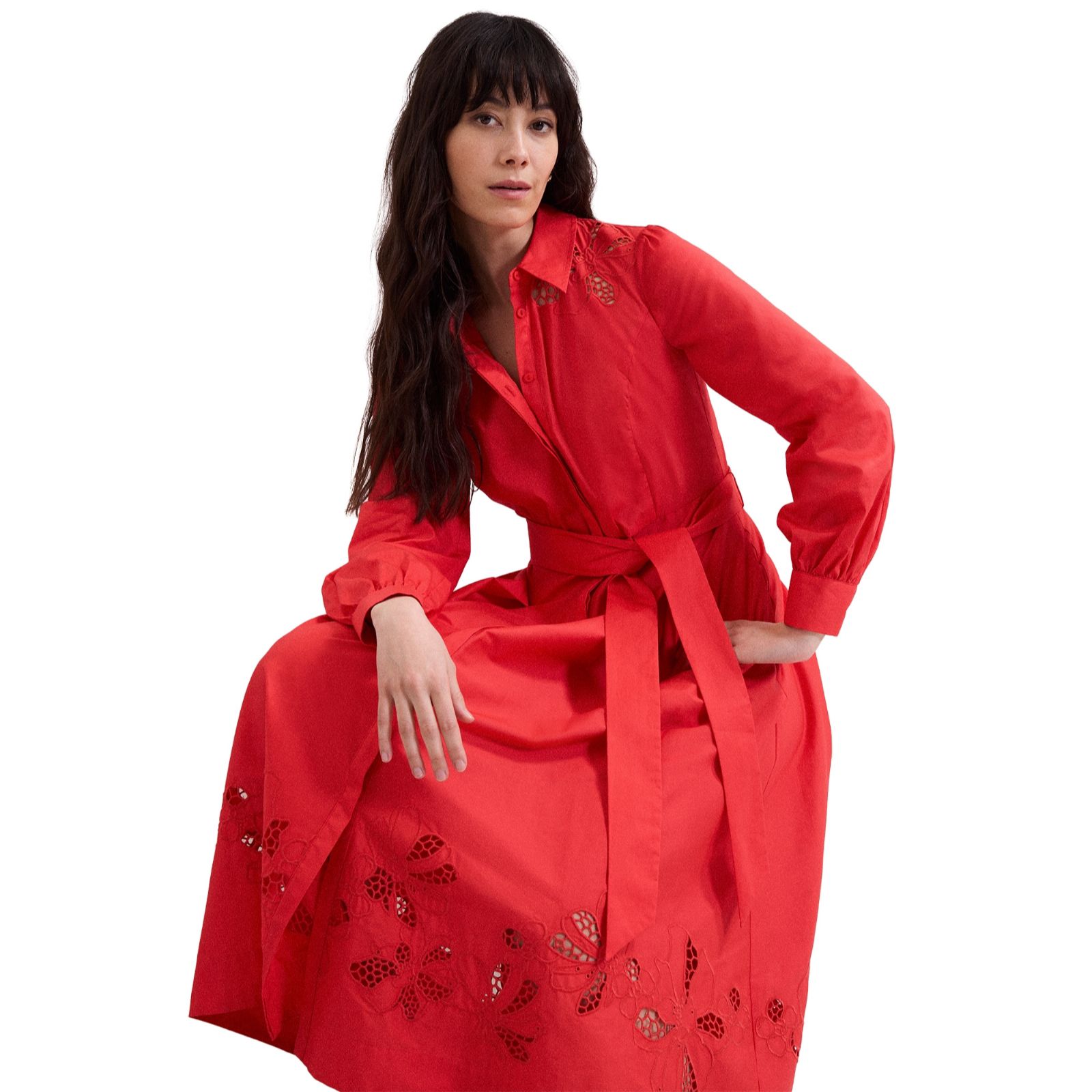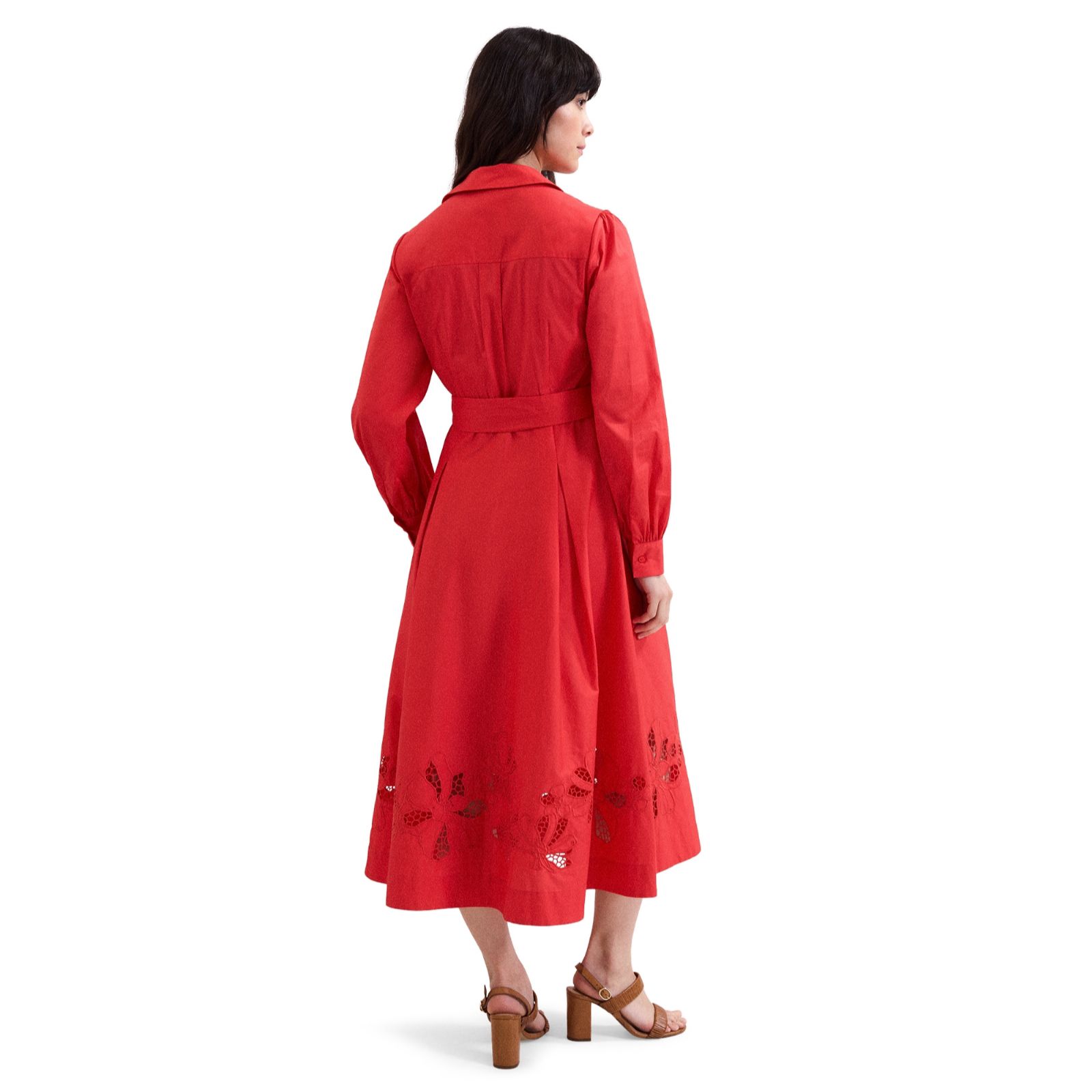 Bring a touch of timeless charm to your wardrobe with the Kim floral cutwork shirt midi dress from Phase Eight, a beautifully detailed piece that blends classic shirt styling with intricate floral embroidery and cutwork design. Perfect for garden parties, brunch dates or summer gatherings, this semi-relaxed silhouette offers effortless elegance. Pair with strappy sandals and a woven cross-body bag for a chic daytime look.