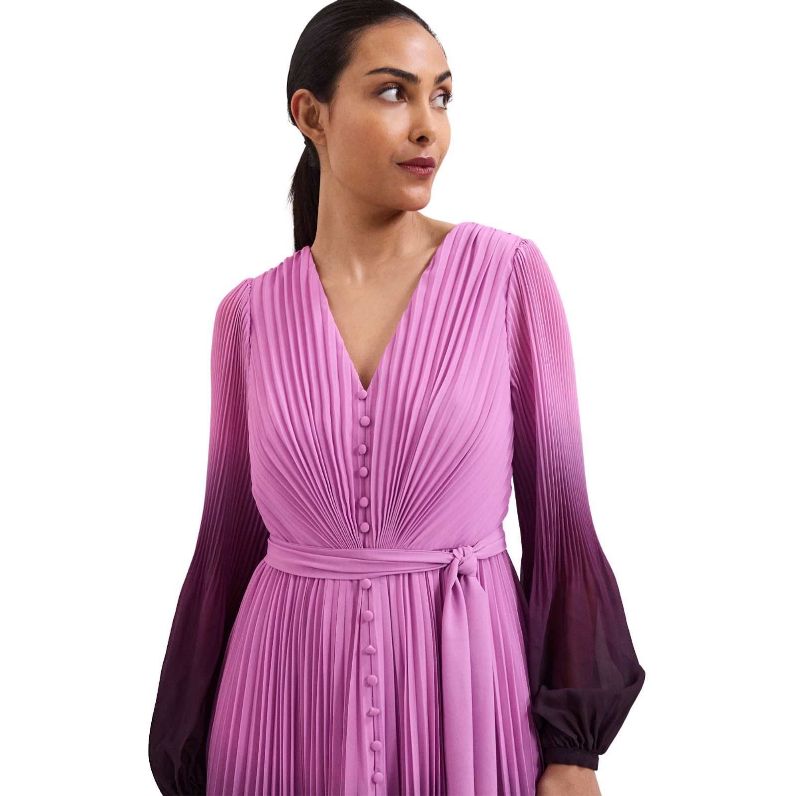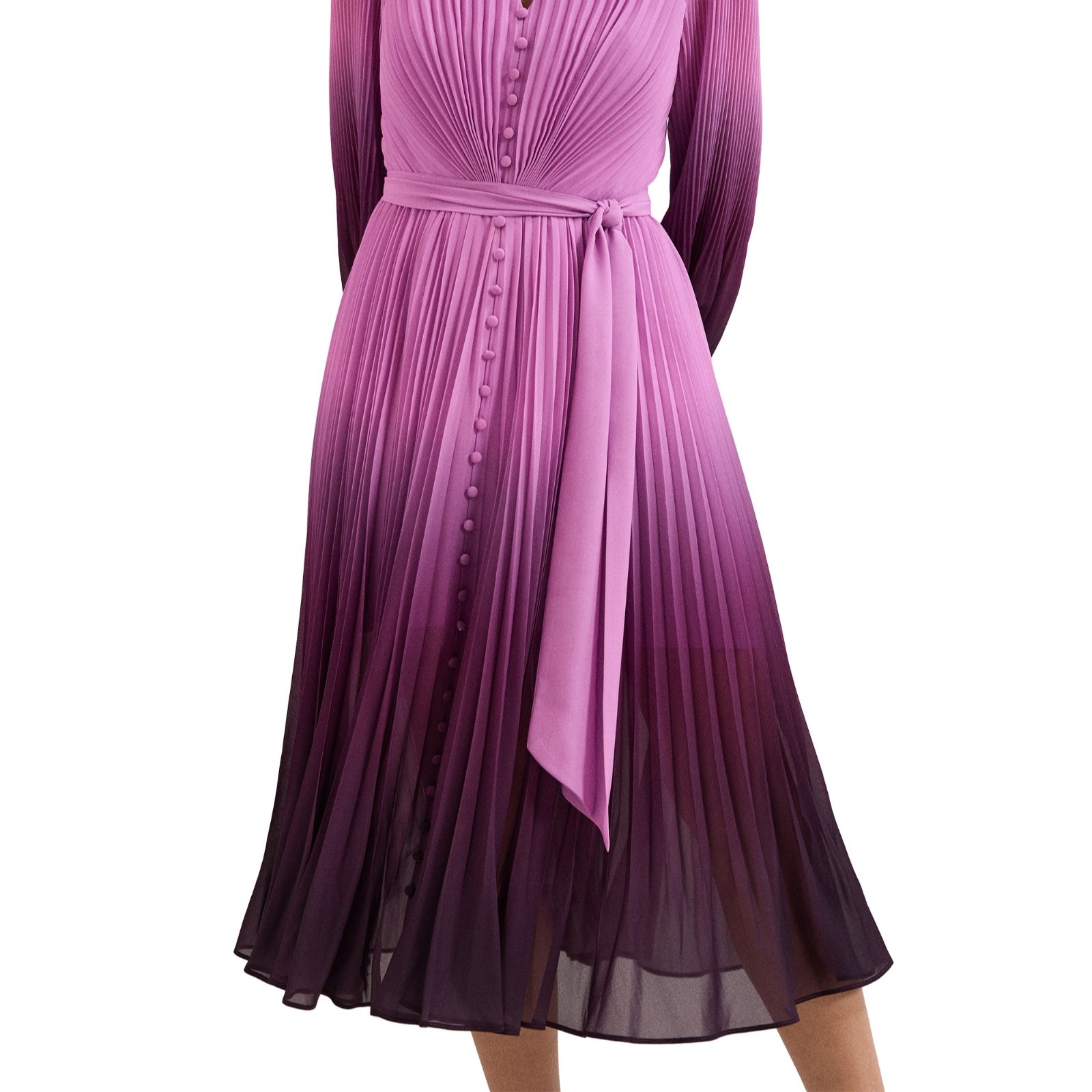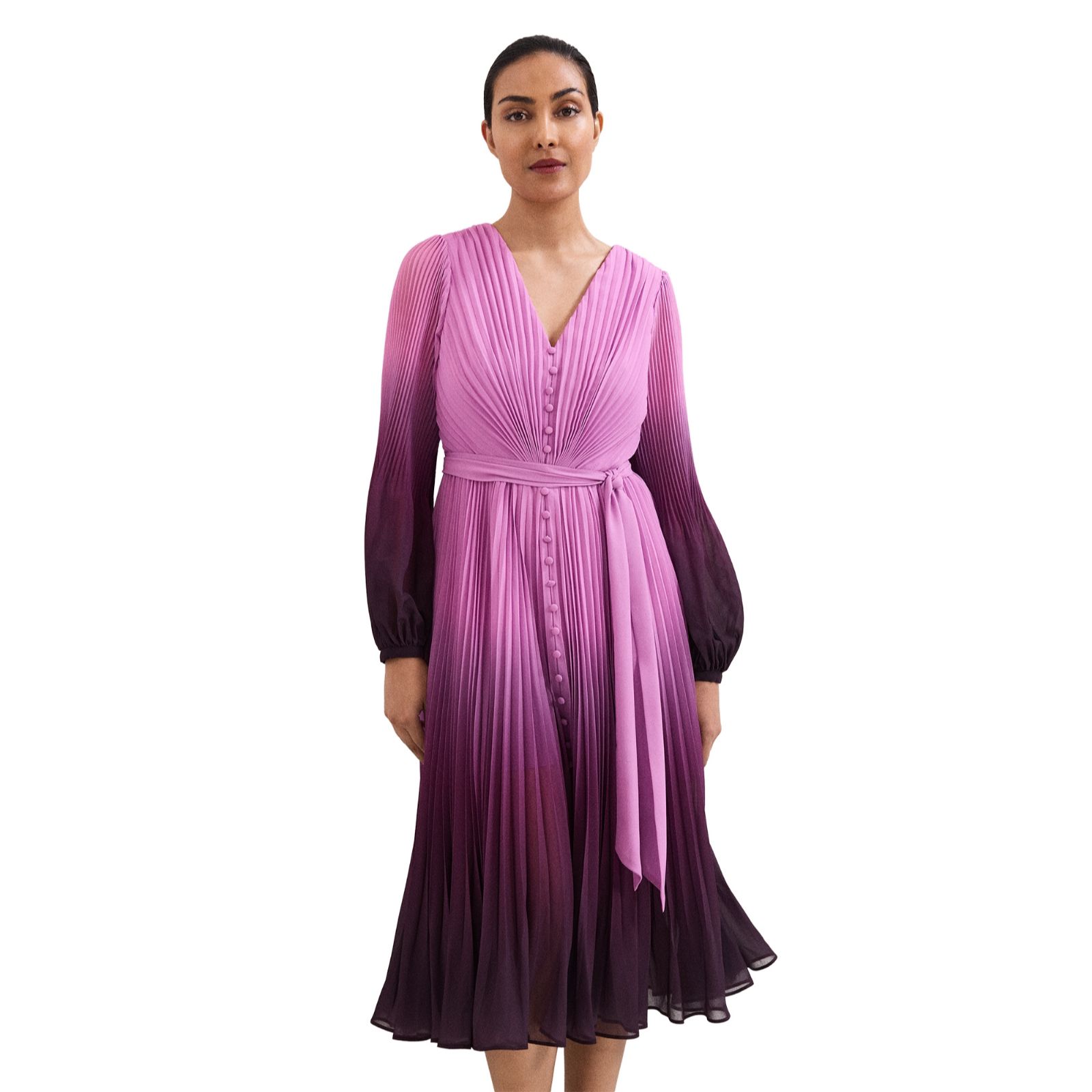 Turn heads in the Mira Ombre midi dress petite from Phase Eight, where a mesmerising purple ombre effect meets elegant tailoring for a truly captivating look. Perfect for everything from garden parties to evening gatherings, this midi dress brings effortless sophistication to any occasion. Pair it with metallic heels and a statement clutch for a chic, modern ensemble that's sure to impress.