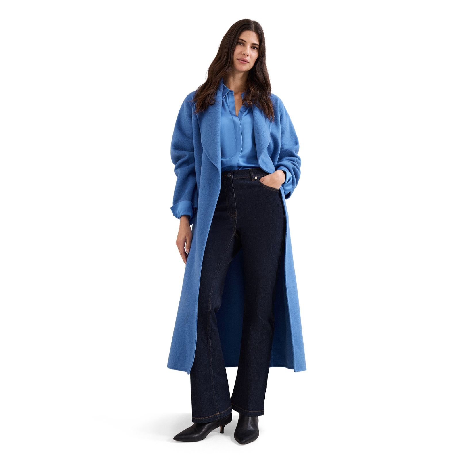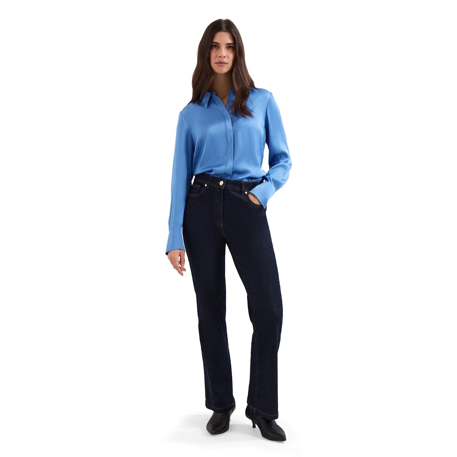 Sleek and sophisticated, the Novie blue satin shirt from Phase Eight brings a touch of effortless glamour to your wardrobe with its lustrous sheen and fluid silhouette. Perfect for elevating your look at the office, dinner dates or weekend outings, this versatile shirt transitions seamlessly from day to night. Try styling it tucked into tailored trousers or with your favourite jeans for a polished yet relaxed ensemble.