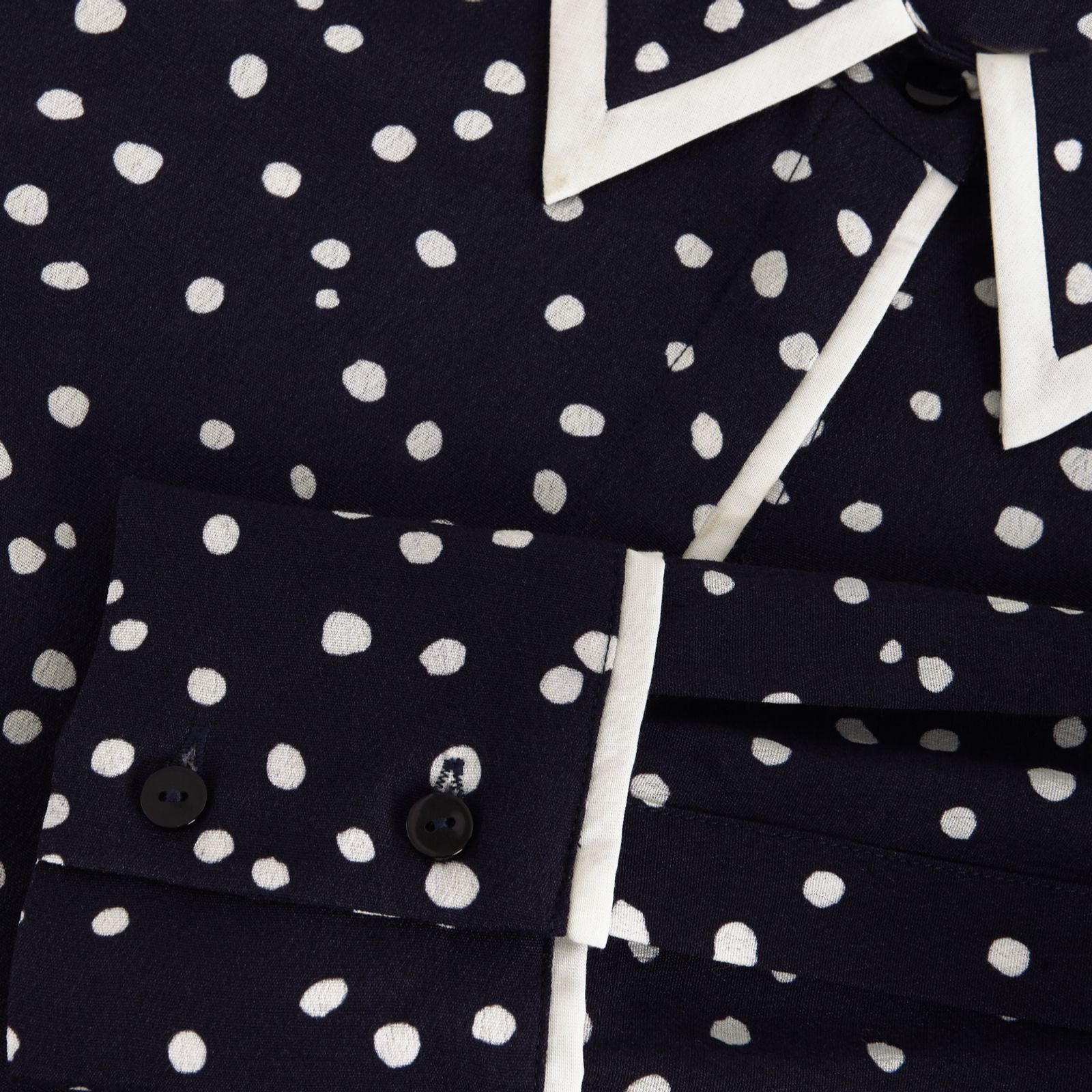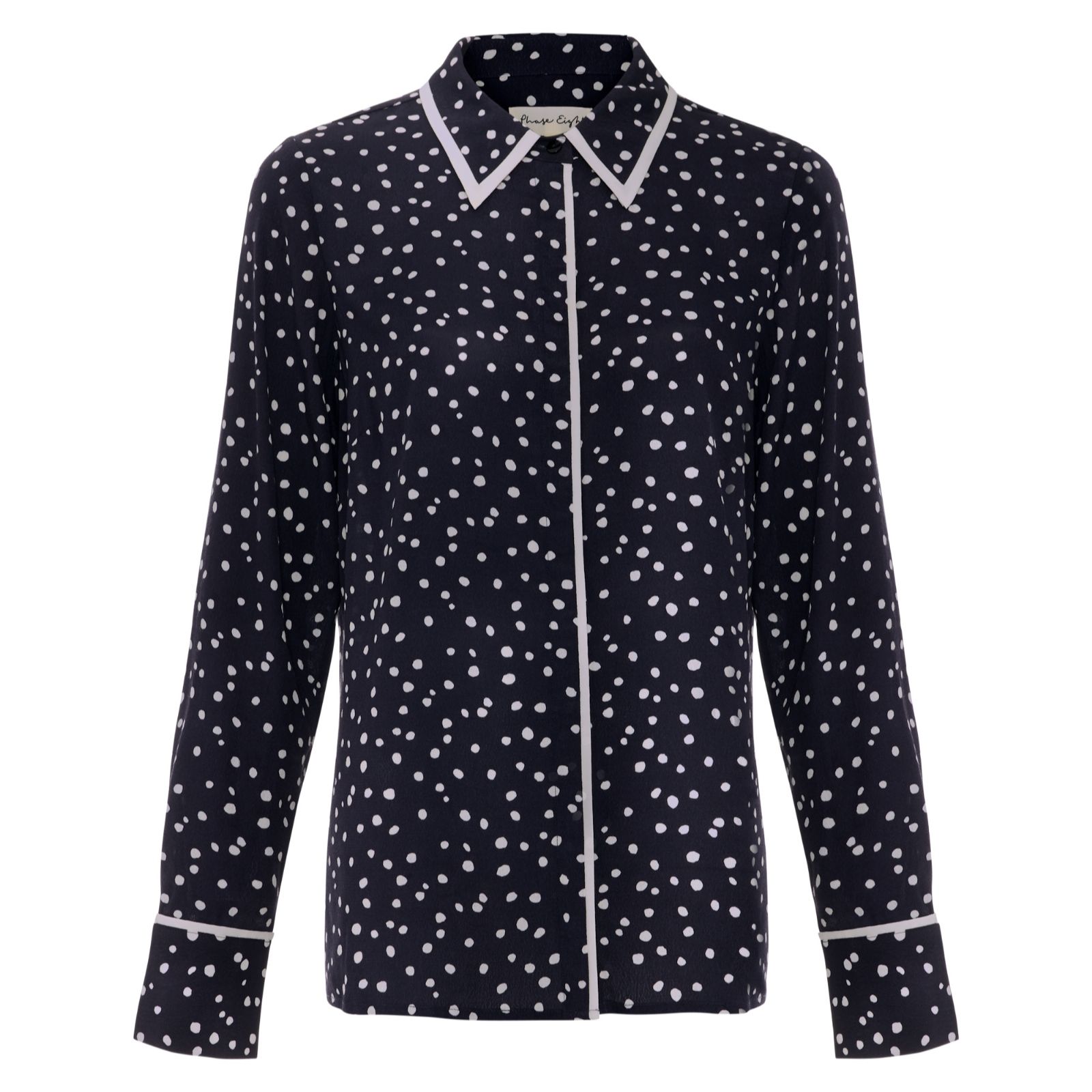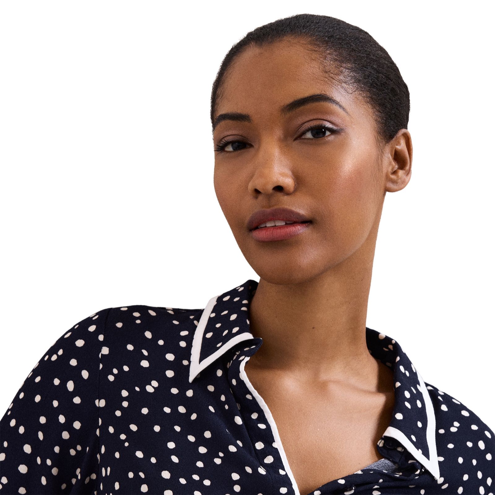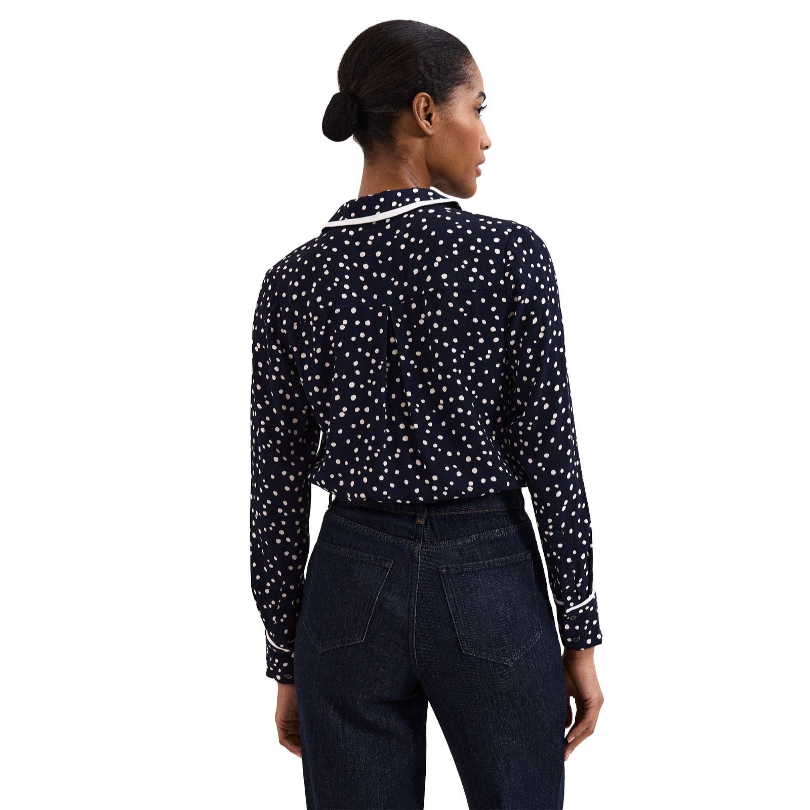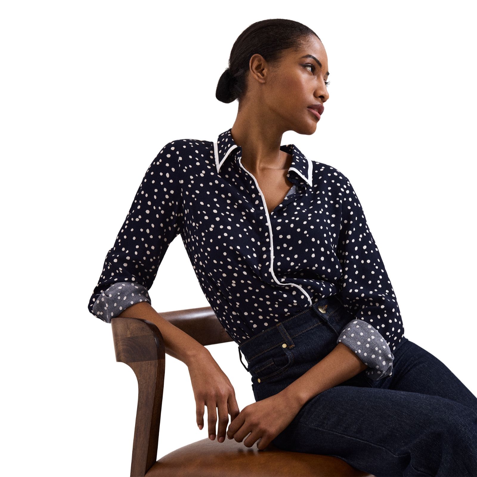 Turn your smart staples into statement pieces with the Rita spot print shirt from Phase Eight, showcasing a timeless navy and ivory palette with a playful all-over polka dot design. Its semi-fitted silhouette and classic button-through front make it perfect for both office days and weekend outings. Pair with tailored trousers and black patent heels for a polished look or style with jeans and loafers for effortless off-duty chic.