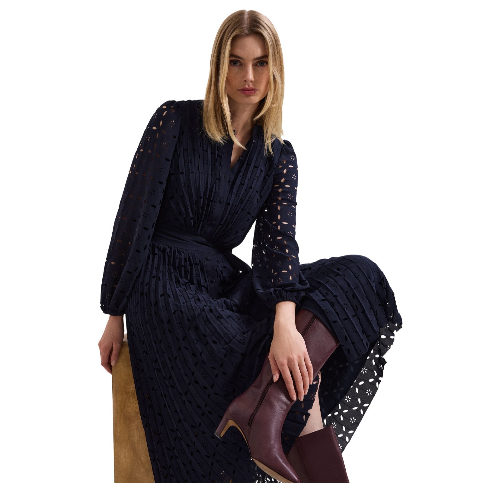 Flow with every step in the Ryley laser cut work midi dress from Phase Eight, where intricate detailing meets timeless elegance. Perfect for garden parties, evening dinners or special celebrations, its regular fit offers comfort without compromising on style. Pair it with strappy heels and a clutch for a refined look that transitions effortlessly from day to night.
