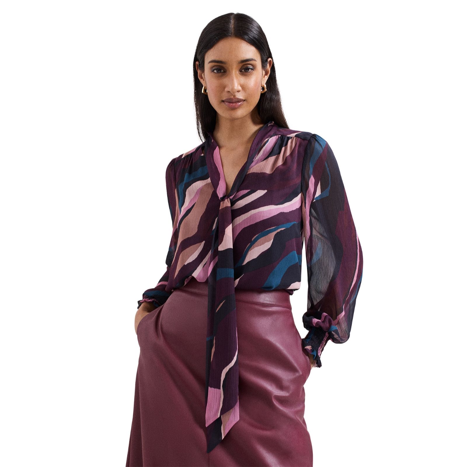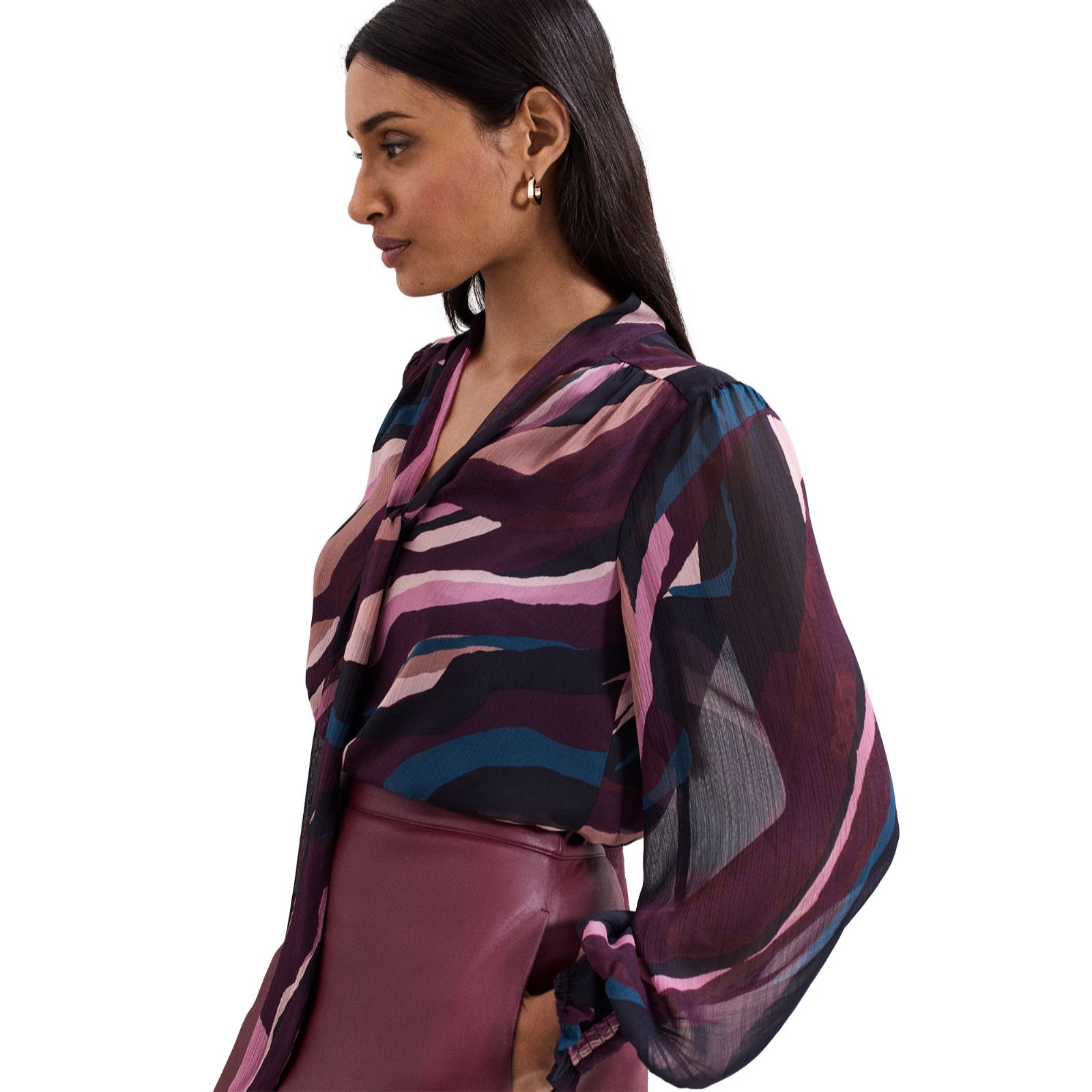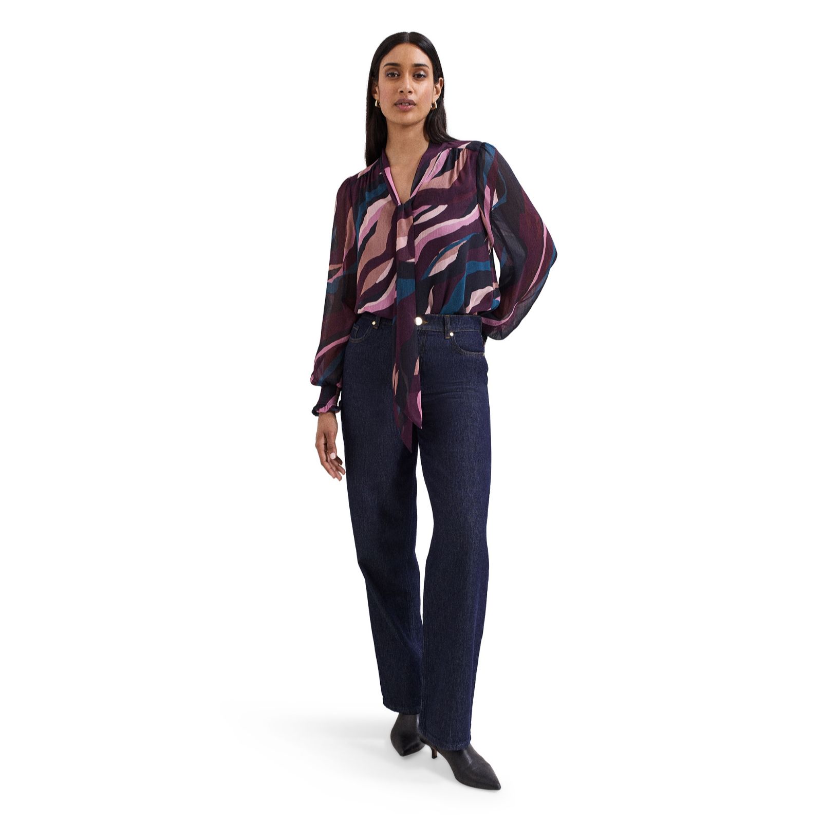 Making a statement with its bold black and pink stripe print, the Shelby blouse from Phase Eight brings a modern twist to your wardrobe. Its relaxed silhouette and thoughtfully tailored details make it a stylish choice for everything from office days to weekend brunches. For a chic ensemble, pair it with tailored trousers or layer under a blazer for a pop of pattern.