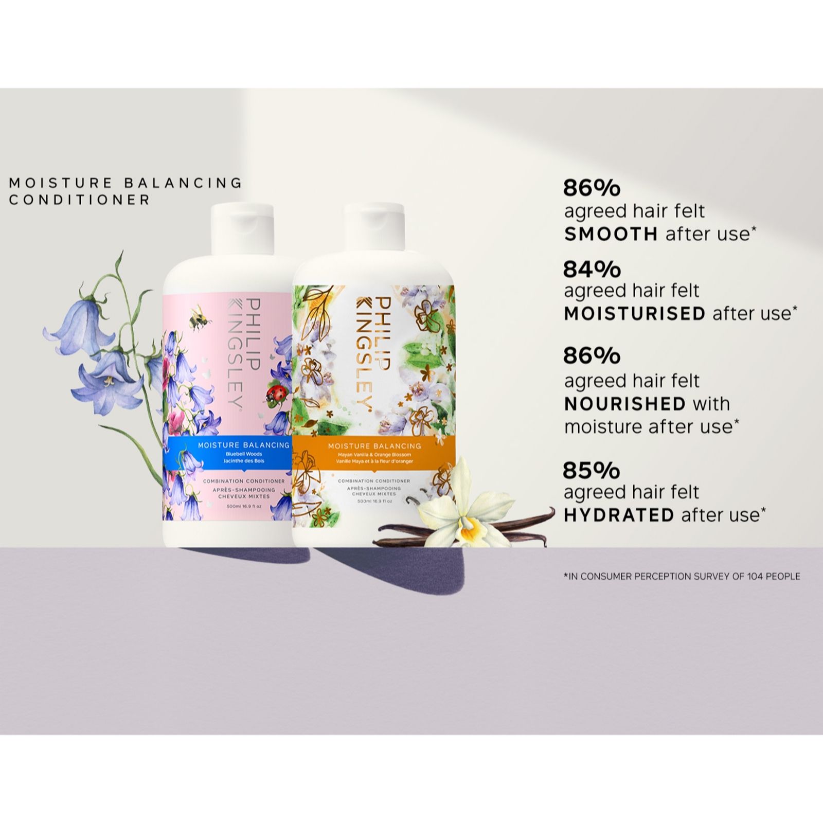 - 1 x Moisture Balancing Conditioner (500ml) - in Bluebell Woods or Mayan Vanilla & Orange Blossom. An anti-static formula ideal for medium-textured, wavy hair or fine processed hair. Formulated to deliver moisture where it is needed most; at mid-lengths and ends, without weighing the hair down, to help leave hair looking shinier, smoother and tangle-free. Perfect for use on colour treated hair and excellent for children as it helps to provide painless and easy detangling. Contains wheat protein, silicone and hydrolysed elastin