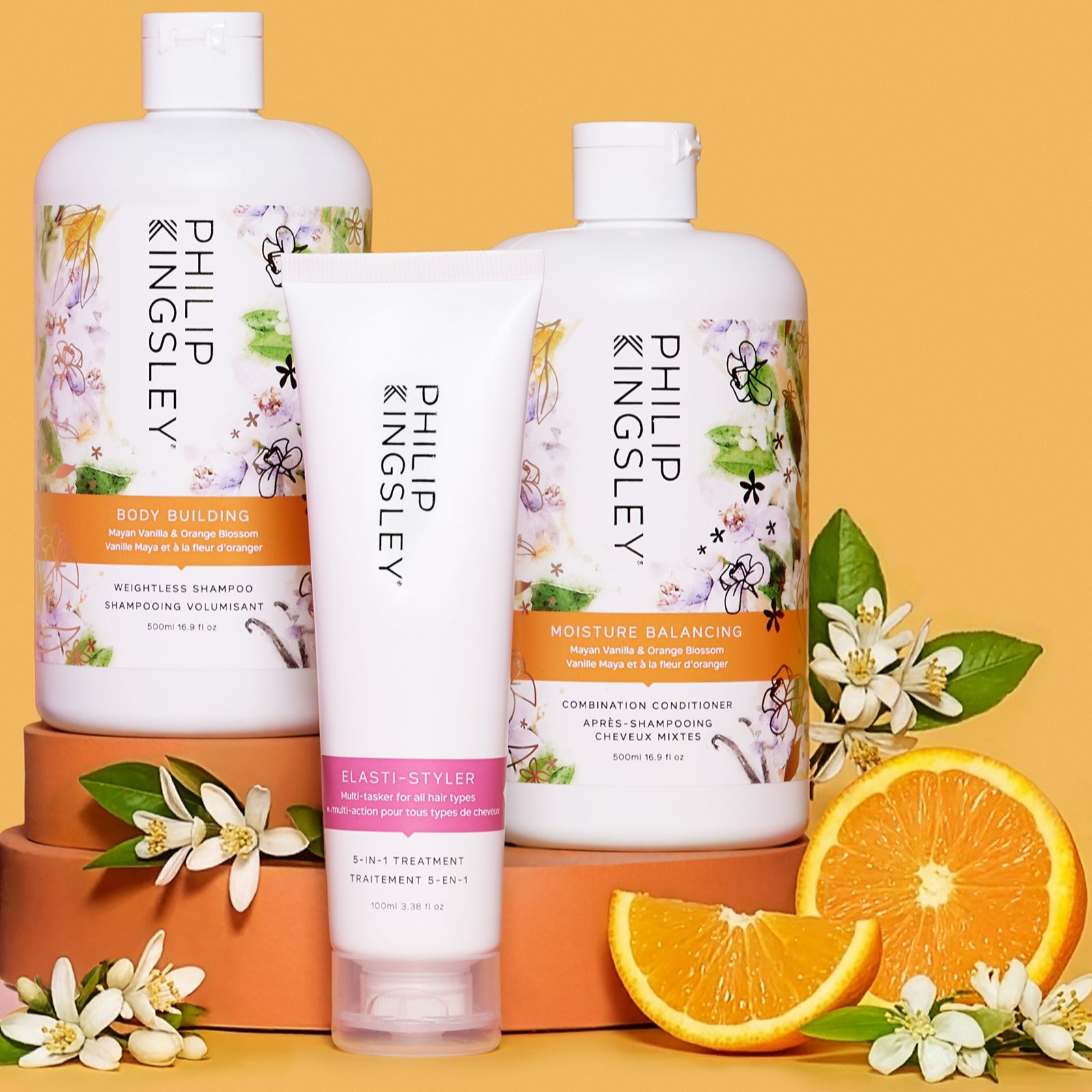 Bring sumptuous scent and beautiful bounce to your tresses with the Philip Kingsley Build & Hydrate Collection. This trio makes your haircare routine a treat from start to finish, featuring the Body Building Shampoo and Moisture Balancing Conditioner to help give your hair volume, bounce and shine, plus the ingenious five-in-one Elasti-Styler to finish. In your choice of two gorgeous and much-loved scents, lather up and let this trio transport you to an exotic orange grove or a tranquil British woodland in an instant.