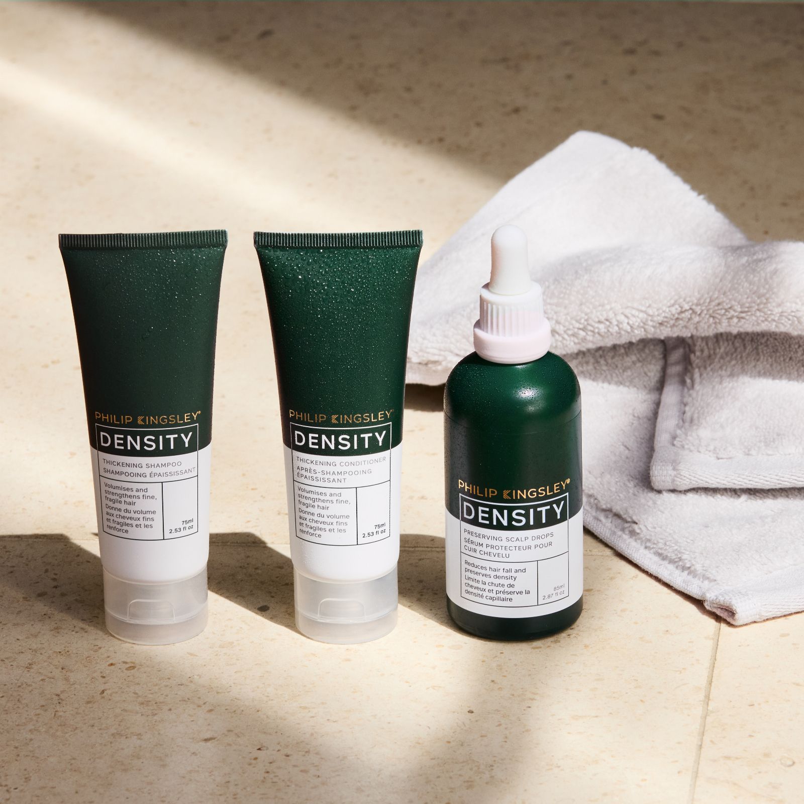 Ready to give your hair routine a boost? The Philip Kingsley Density Starter Collection is designed to help you care for your scalp and hair, featuring the Density Scalp Drops, Density Thickening Shampoo and Density Thickening Conditioner. This trio fits seamlessly into your daily routine to help support fuller-looking hair from root to tip.