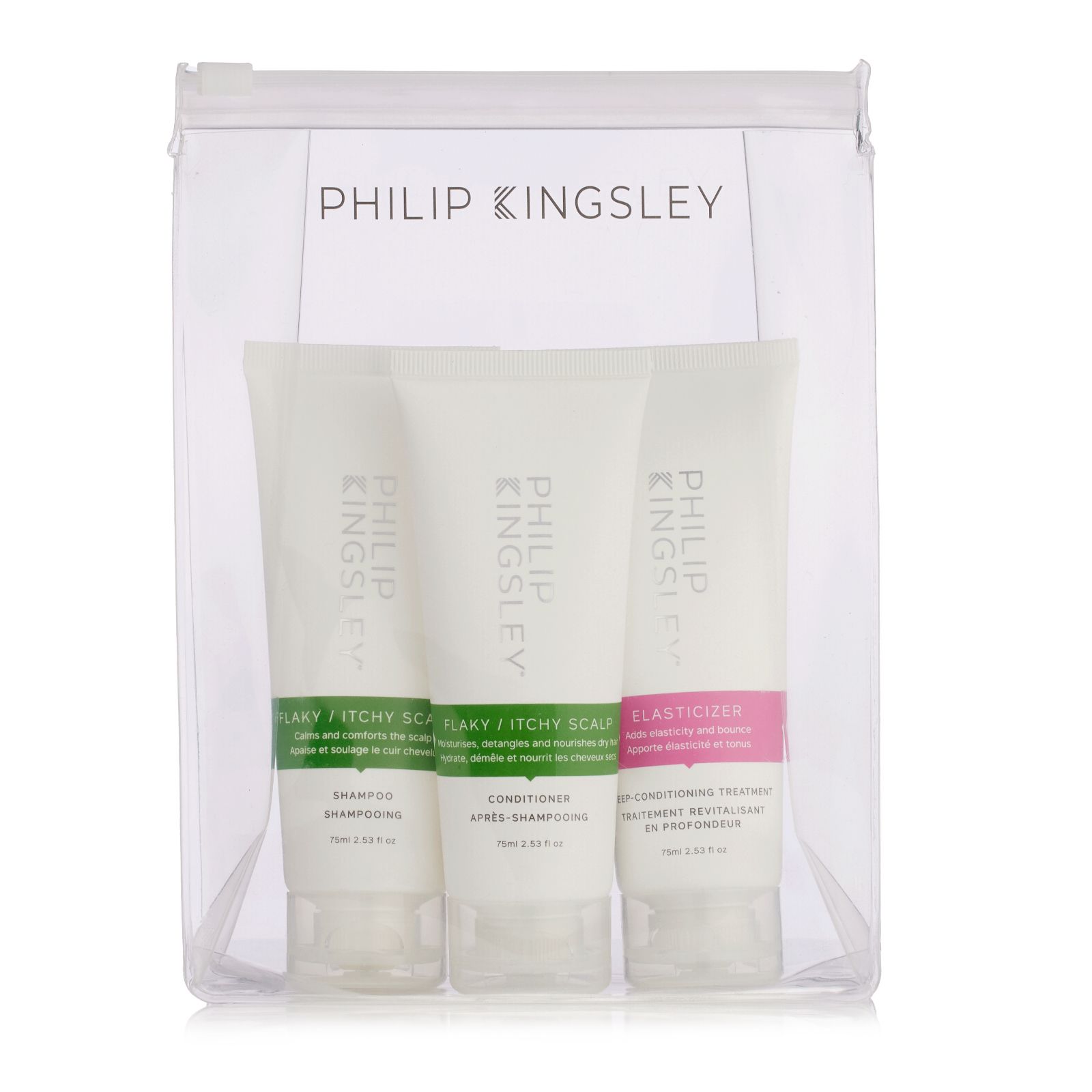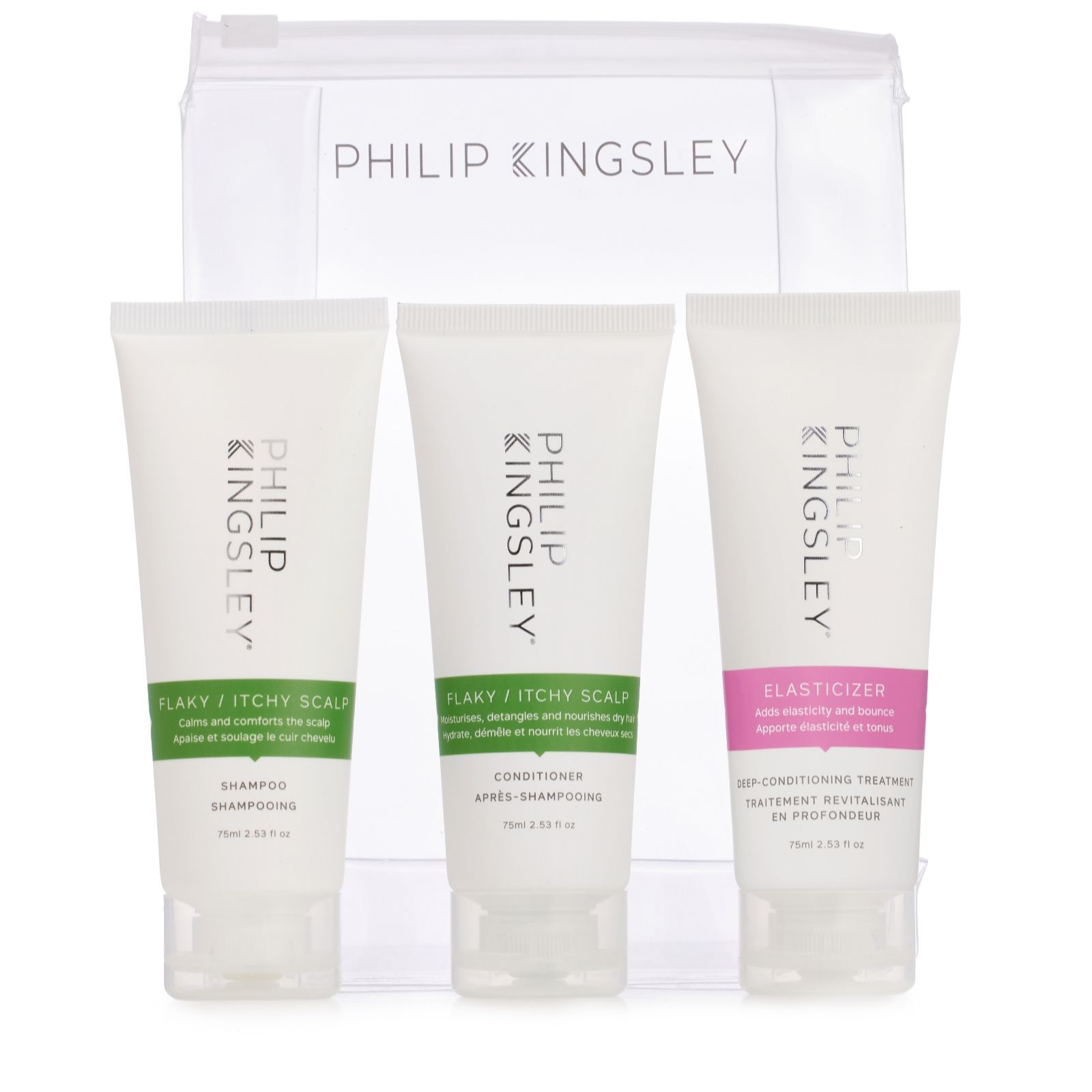 Bring comfort to your on-the-go haircare routine with the Flaky Itchy Jet Set Collection from Philip Kingsley, a travel-ready kit designed to help soothe your scalp while leaving your hair feeling refreshed and manageable. Whether youre at home or on the move, this collection can help keep your scalp calm and your hair looking its best, making it ideal for those prone to dryness or discomfort.