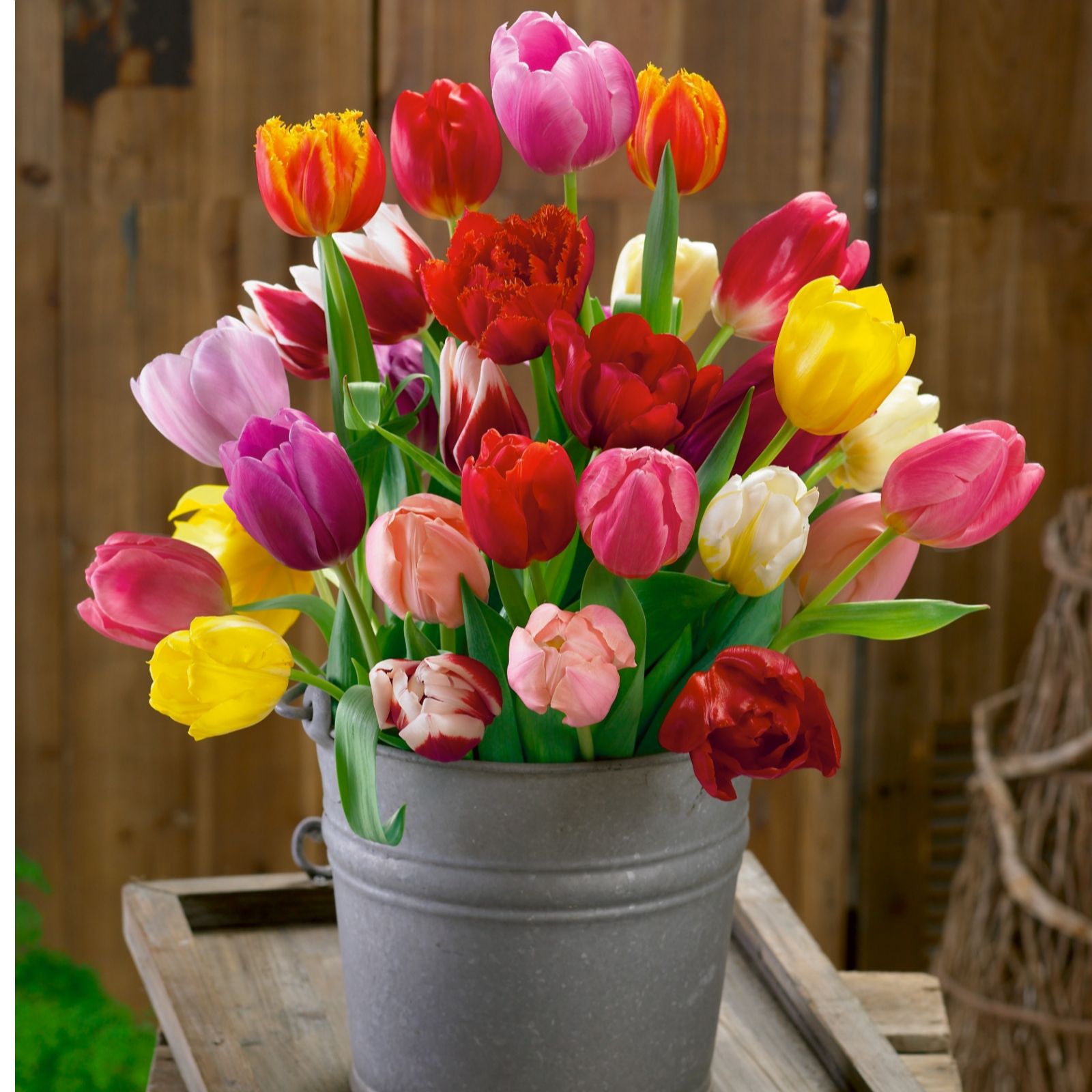 A spectacular mix of Triumph tulip bulbs from Plants2Gardens, including an array of beautiful hues and sizes. Create a riot of colour in your outdoor space while attracting bees and butterflies to your garden.