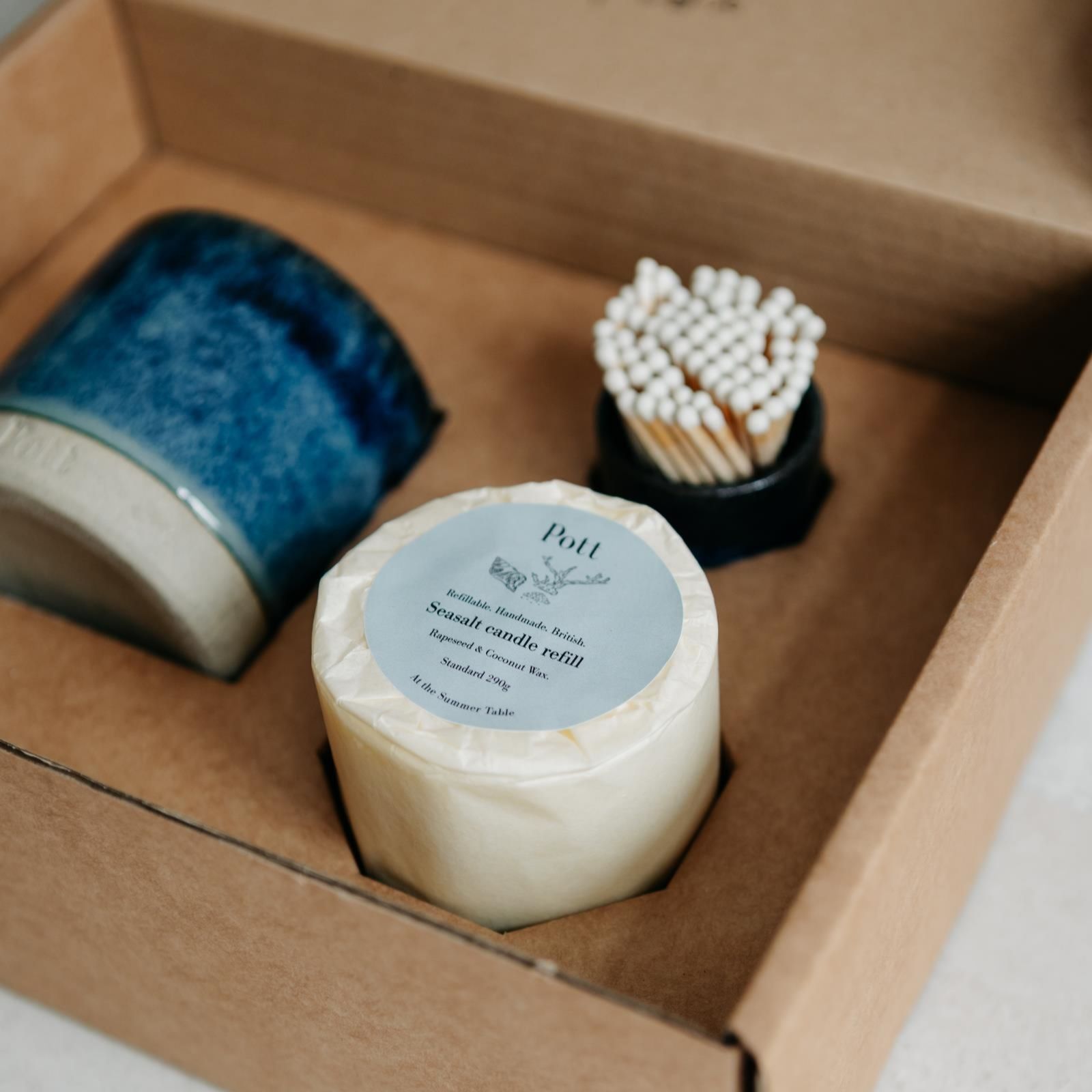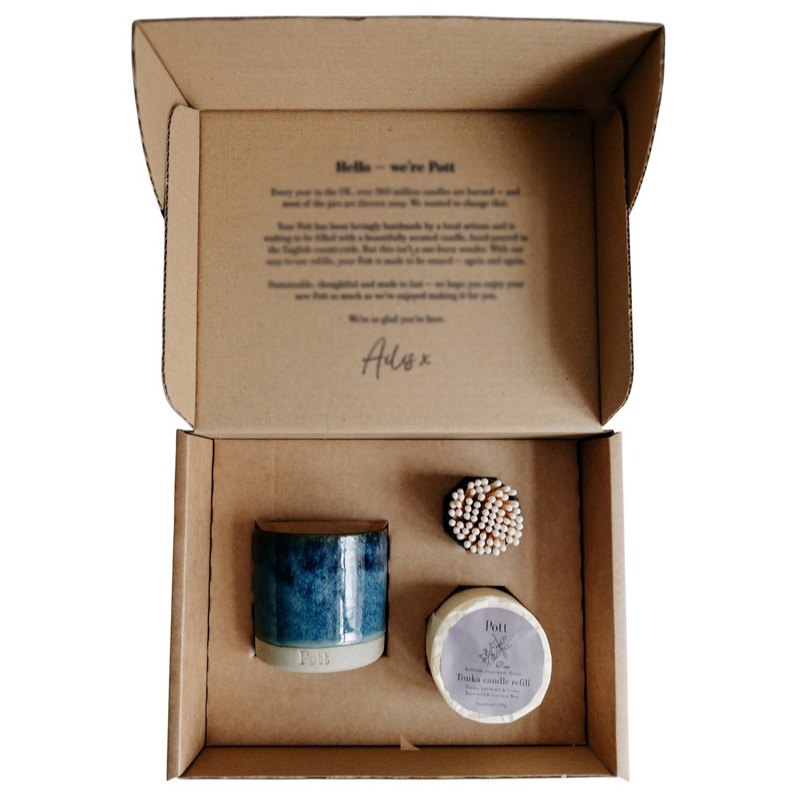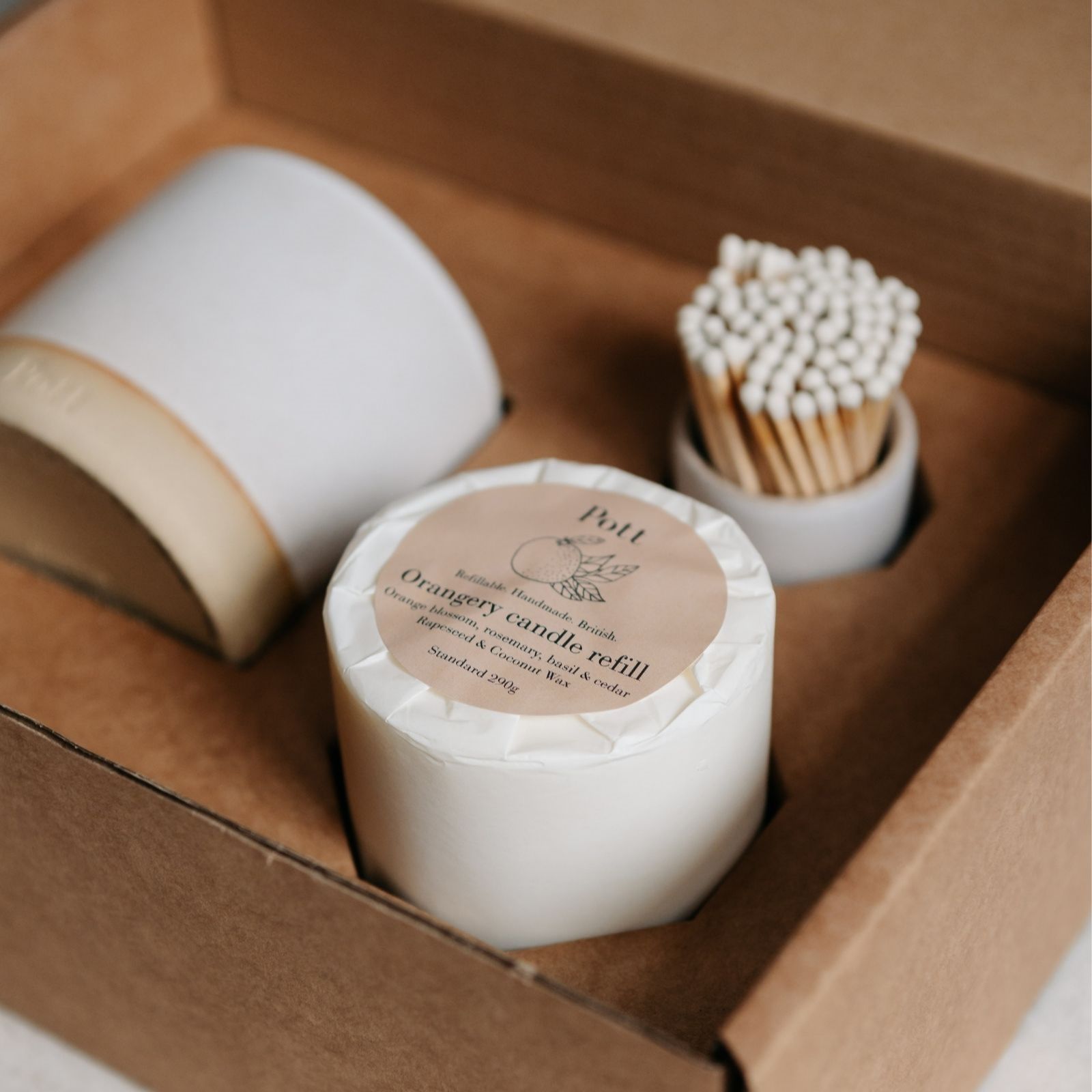 Bring artisan charm and captivating fragrance into your home with the Pott Refillable Candles Starter Pack. Featuring a handmade refillable Pott, your first scented refill and a matching Match Pott, this set is perfect for creating a cosy atmosphere. With scents ranging from the citrus and herbal notes of Orangery, the fresh coastal aroma of Seasalt to the warm festive spice of Noel, this set is ideal for gifting or indulging yourself all year round.
