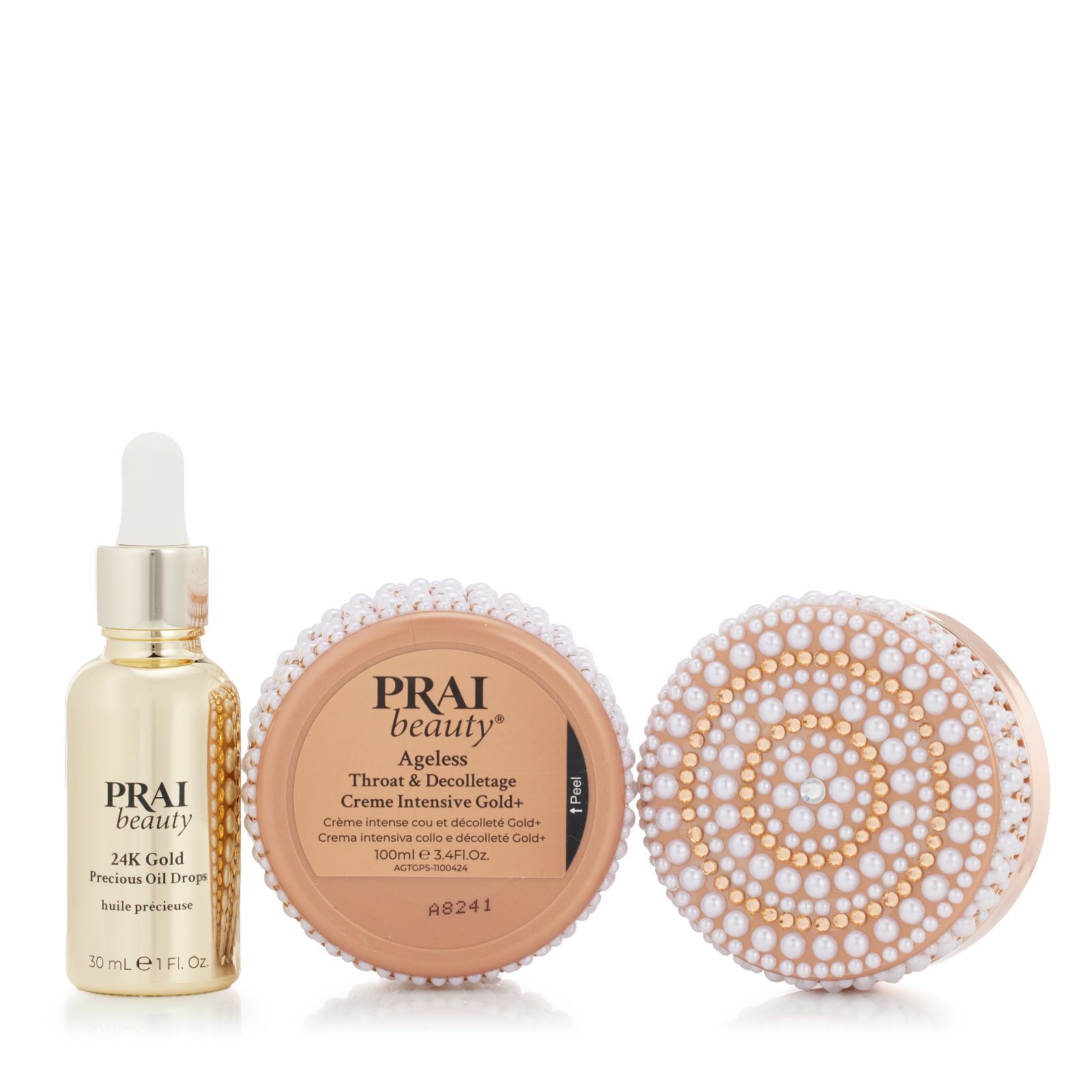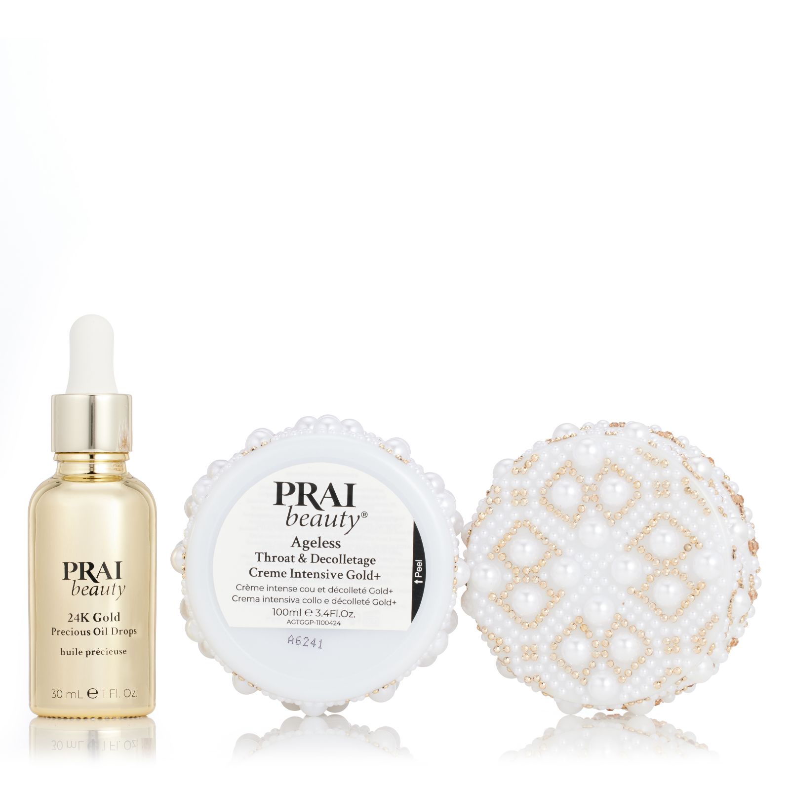Reveal your inner glow with Prai's Ageless 100ml Throat & Decolletage Gold+ with 24k Gold Oil Drops. This luxurious duo combines the best-selling Ageless Throat & Decolletage Creme with a new twist, to help improve the appearance of neck and decolletage skin. Complementing this, the 24K Gold Precious Oil Drops help you to achieve a radiant finish. It's the perfect way to add a little luxury into your everyday routine.