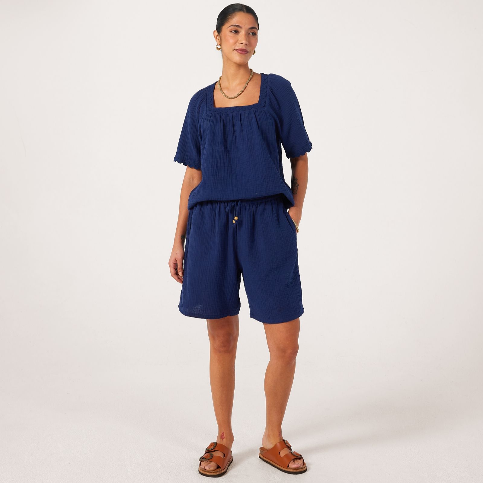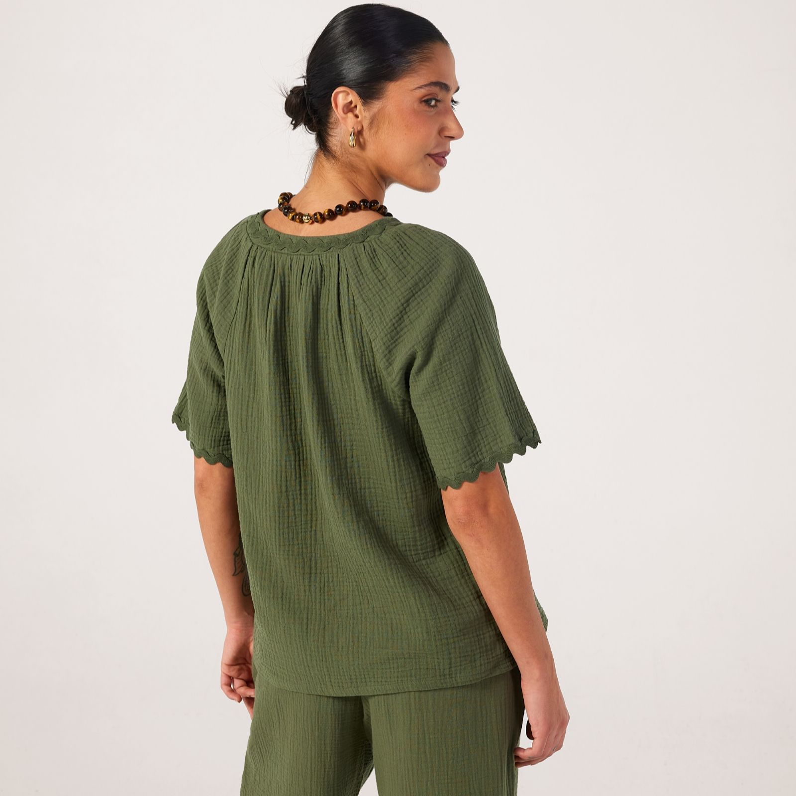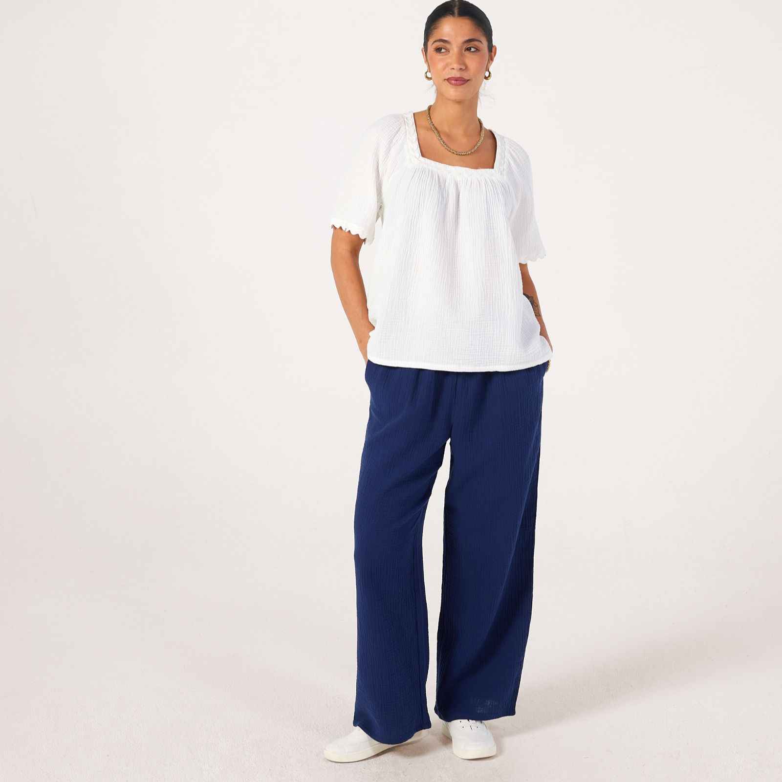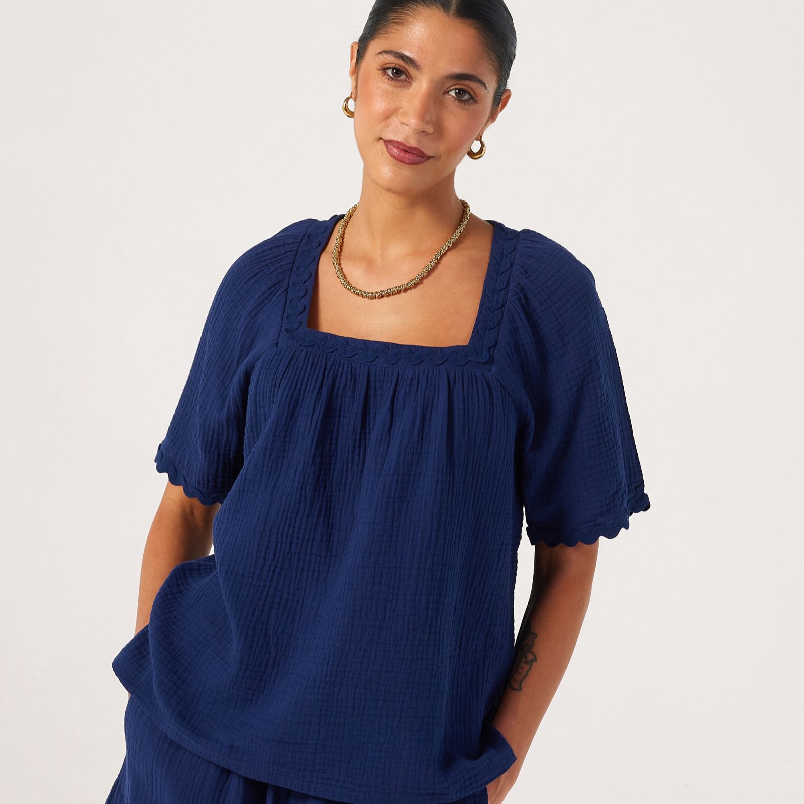 Bring a touch of texture to your warm-weather wardrobe with this pure cotton top from Denim & Co. With an effortless, relaxed fit, this breezy and breathable piece is crafted from textured cotton, making it perfect for those carefree days in the sun. Elevated by a playful ric rac trim for a charming finish, it pairs beautifully with your favourite denim or flowy linens for an easy-going yet elegant look.