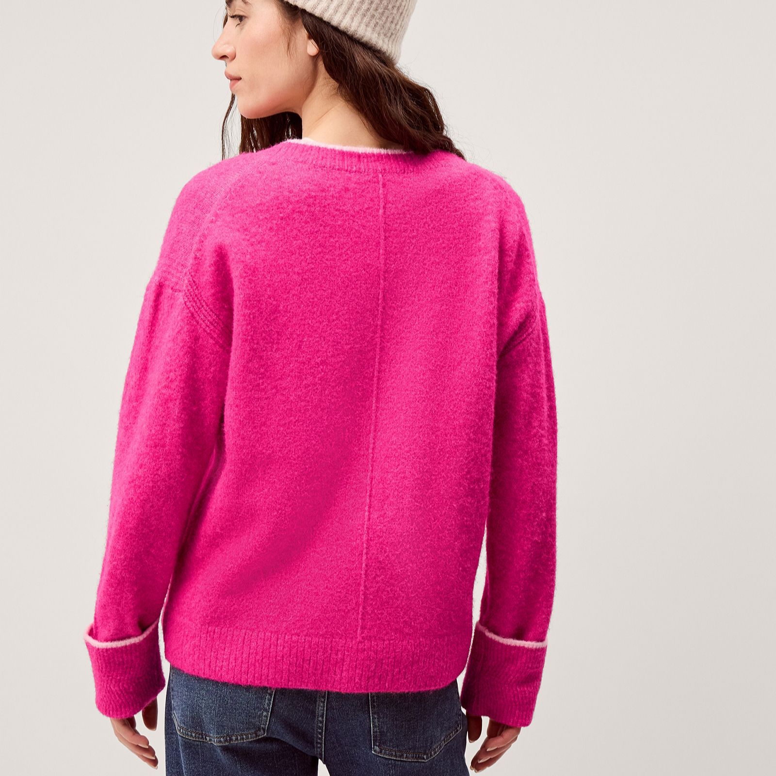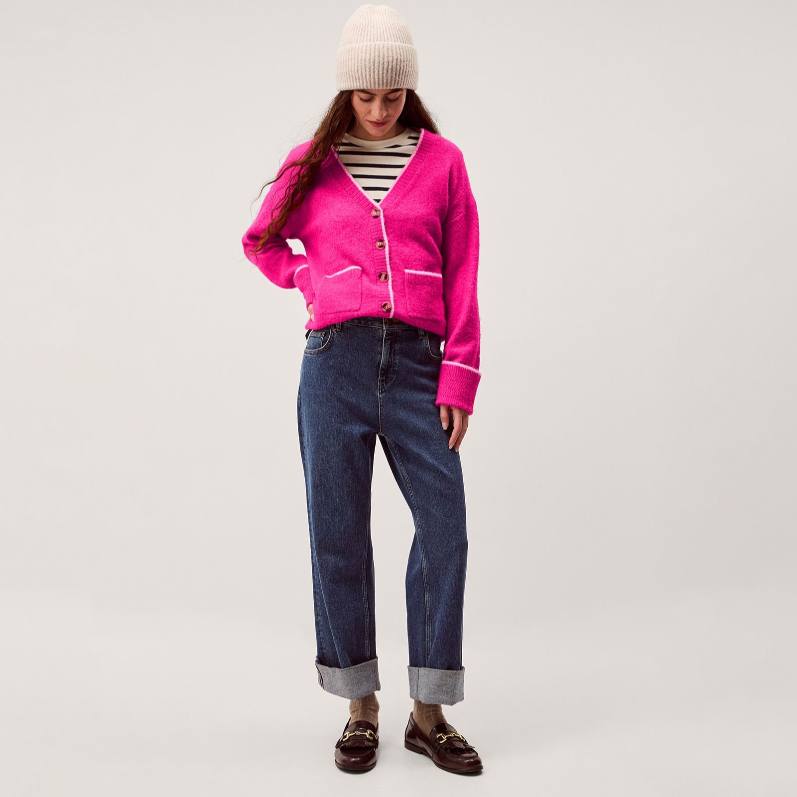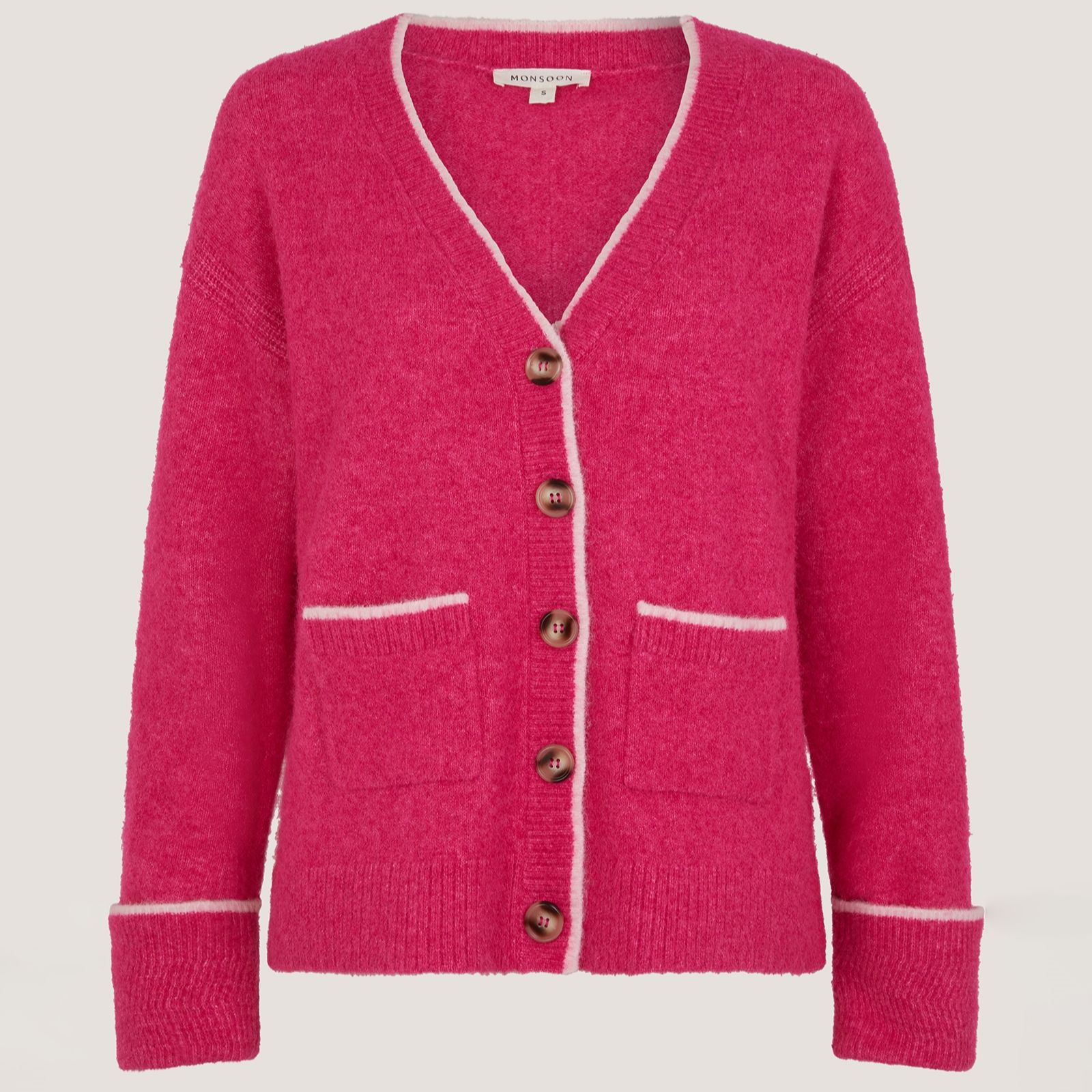 Brighten up chilly days with the Monsoon Oona Oversized Cardi, a fuschia delight knitted from irresistibly soft yarns. Its relaxed, oversized fit and classic V-neck with tortoiseshell buttons make it a standout piece for layering, whether you're heading to the office or working from home. Style it over a simple tee and jeans for an effortlessly chic look that transitions seamlessly from weekday to weekend.