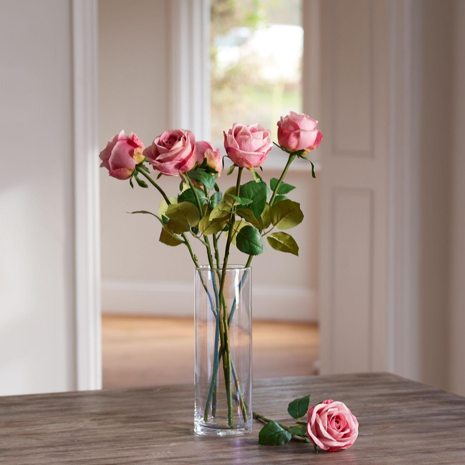 This Peony collection includes six wonderfully realistic faux roses in a delicate shade of deep pink. Create your very own bespoke arrangement with these gorgeous long-stemmed roses.