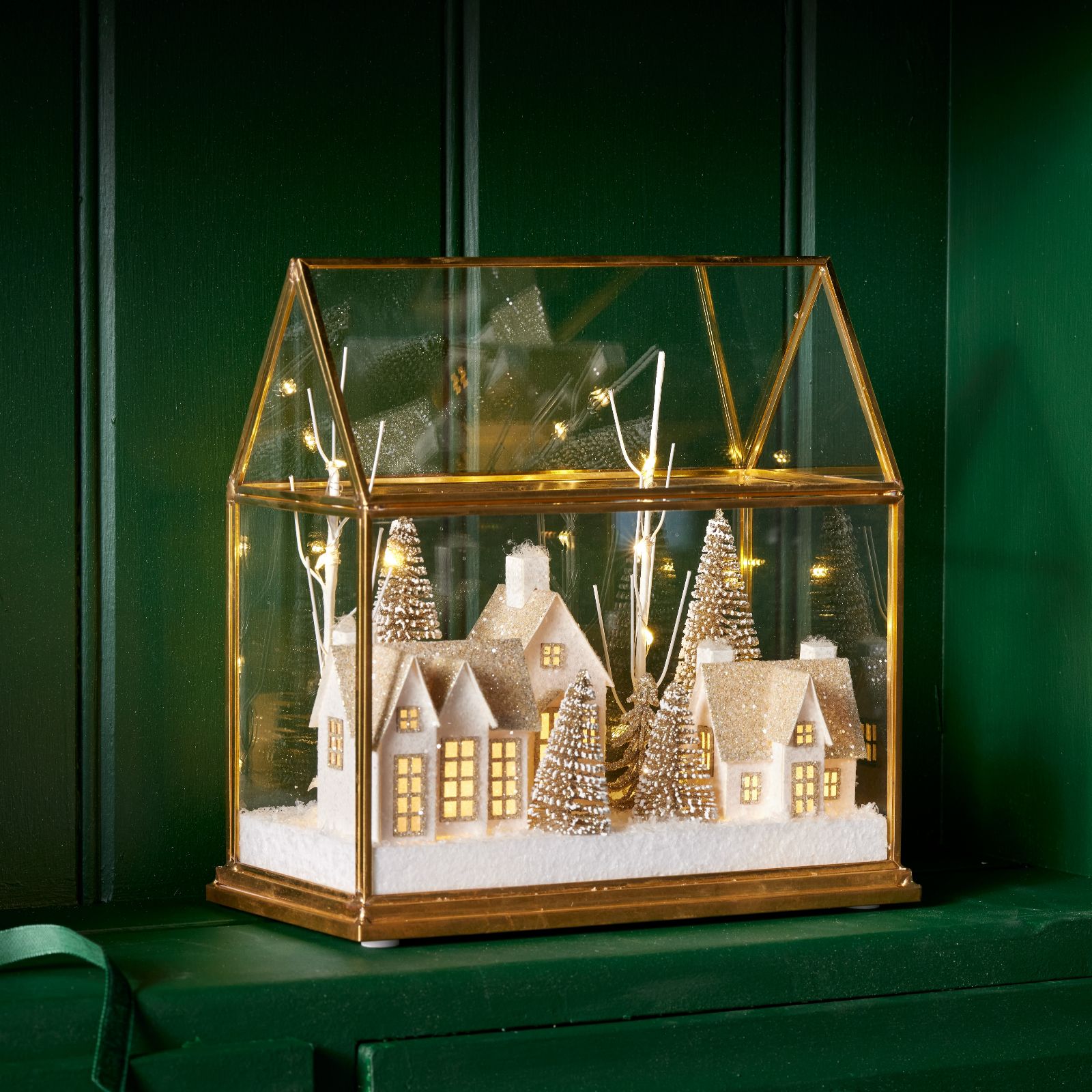 Finish your winter wonderland in style with this unique pre-lit snow village decoration from My Home Stories. This gorgeous decoration paints the perfect wintry scene with a charming snowy village, festive faux fir trees and twinkling lights, all housed in a sophisticated glass container. Whether you're placing it on your mantlepiece or using it as the centrepiece to your Christmas table, this new design is sure to be the star on top of your festive decor.