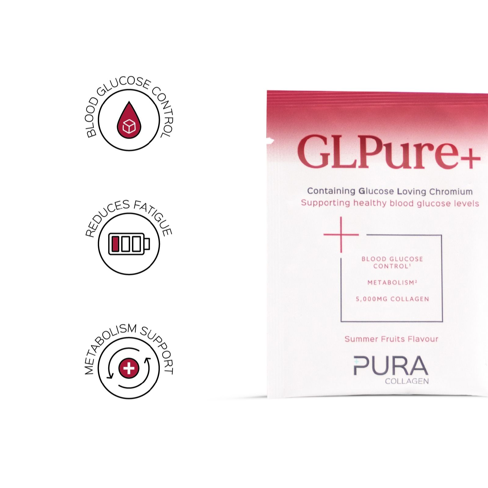 Power up your daily wellness routine with Pura Collagen's GLPure Advanced Powder Formula, a summer fruits-flavoured supplement designed to fit seamlessly into your lifestyle. Whether you're looking for convenient metabolic support or a boost before mealtimes, these handy sachets help to support normal blood glucose regulation and help reduce tiredness, wherever your day takes you.