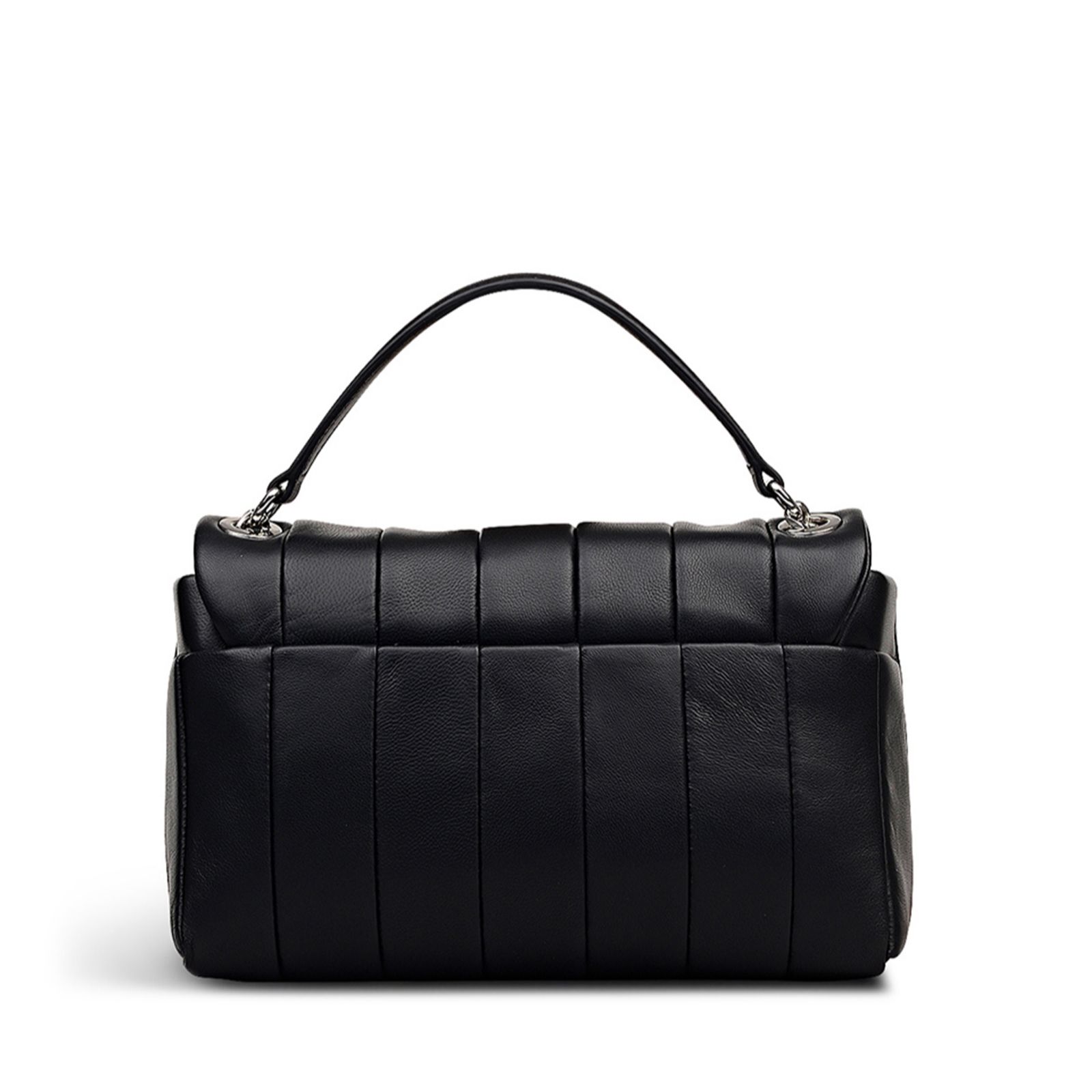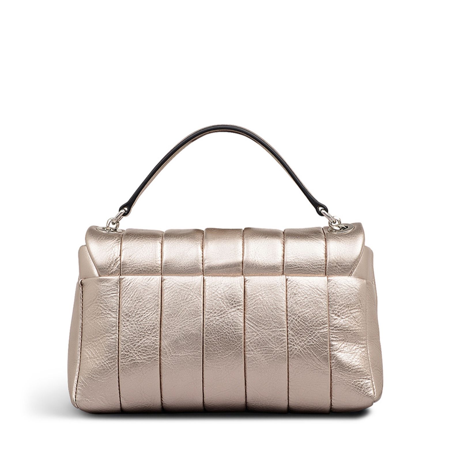 • Extra features: foil logo, vertical quilting, sliding chain strap with padded shoulder trim, push-lock fastening