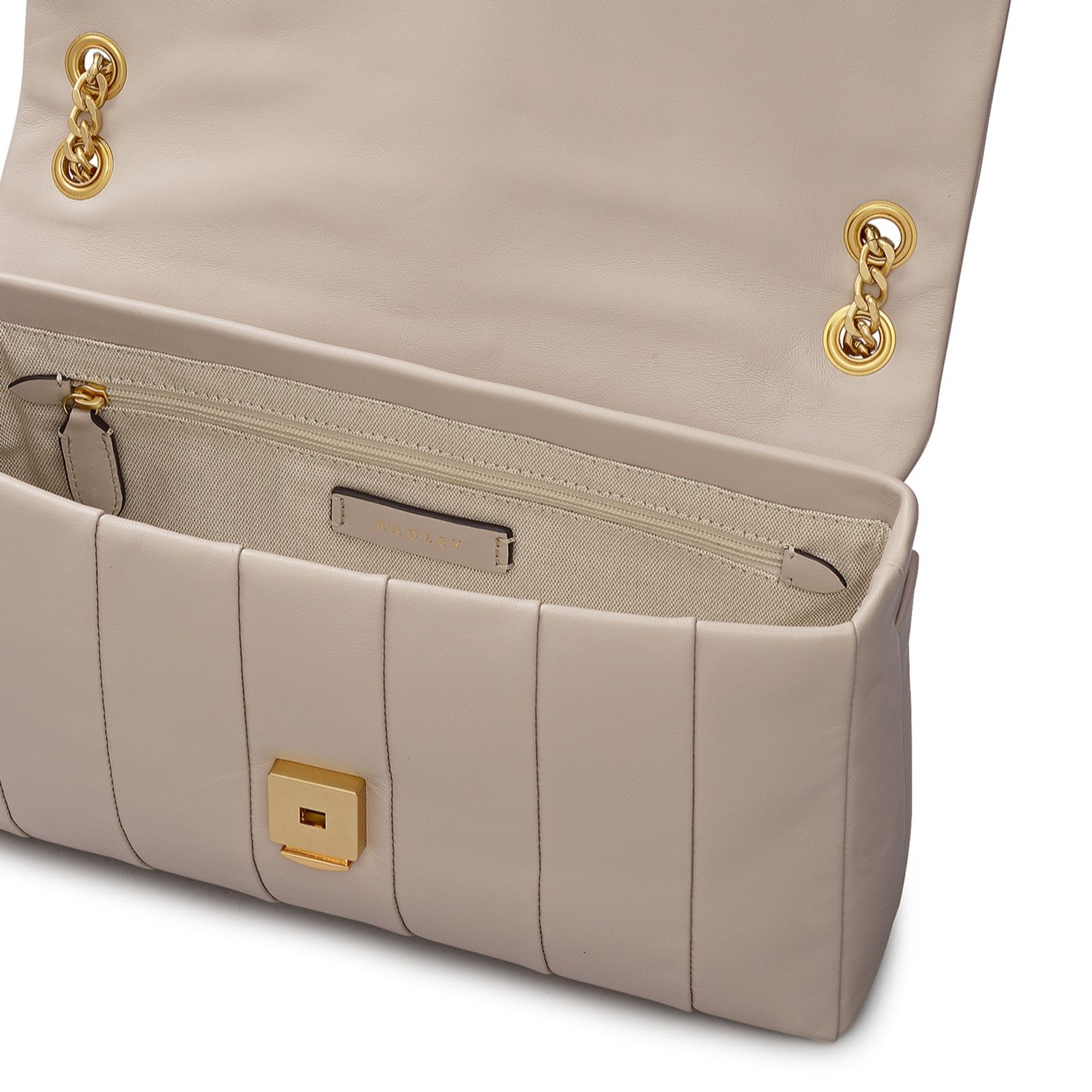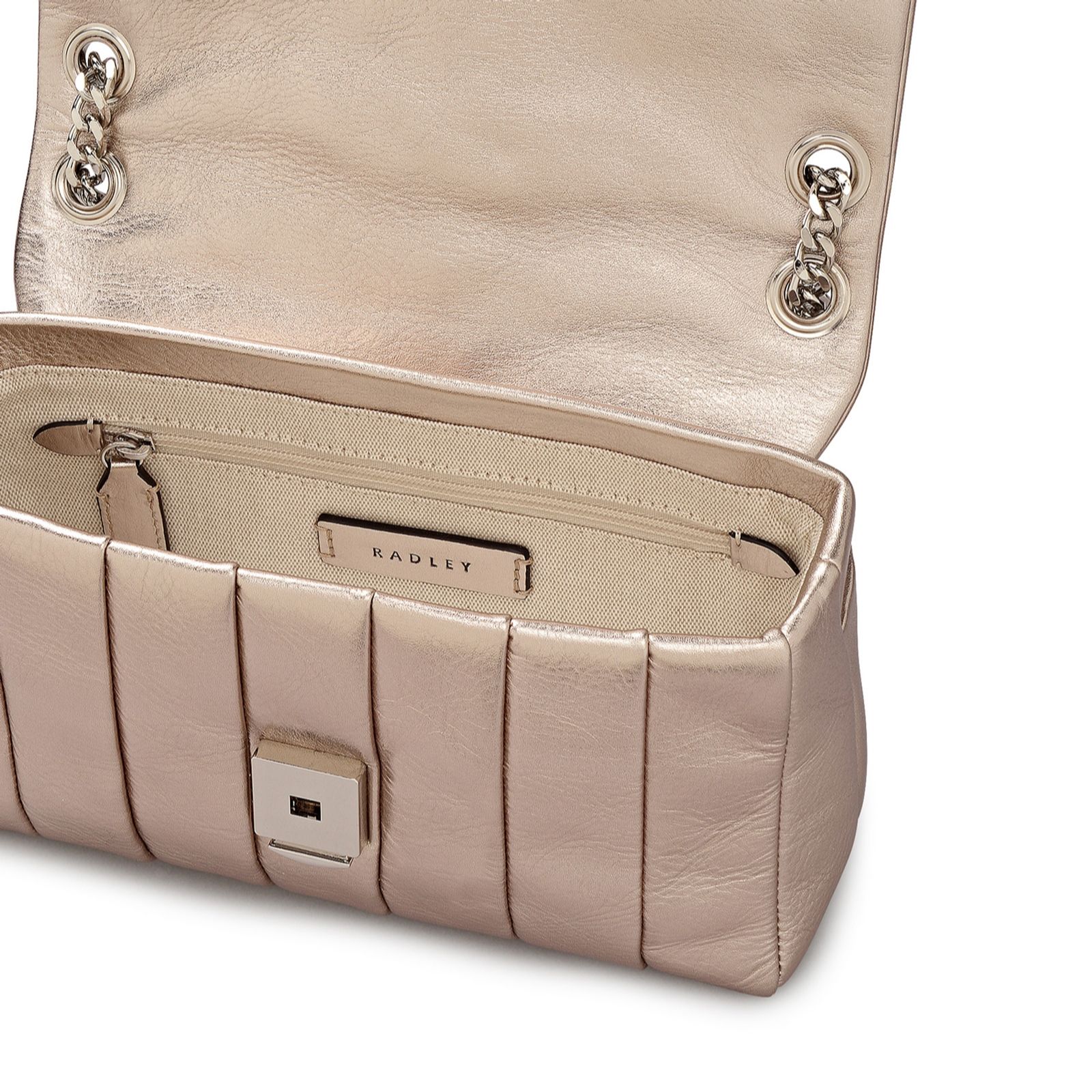 From day to night, the Burton Way small flap over crossbody from Radley brings effortless sophistication to every moment. Crafted in soft quilted nappa leather with a sleek vertical quilting and a sliding chain strap, this versatile bag can be worn long or short, while the hidden push-lock fastening keeps your essentials secure. Perfect for evenings out or elevating your everyday, its a true style statement.