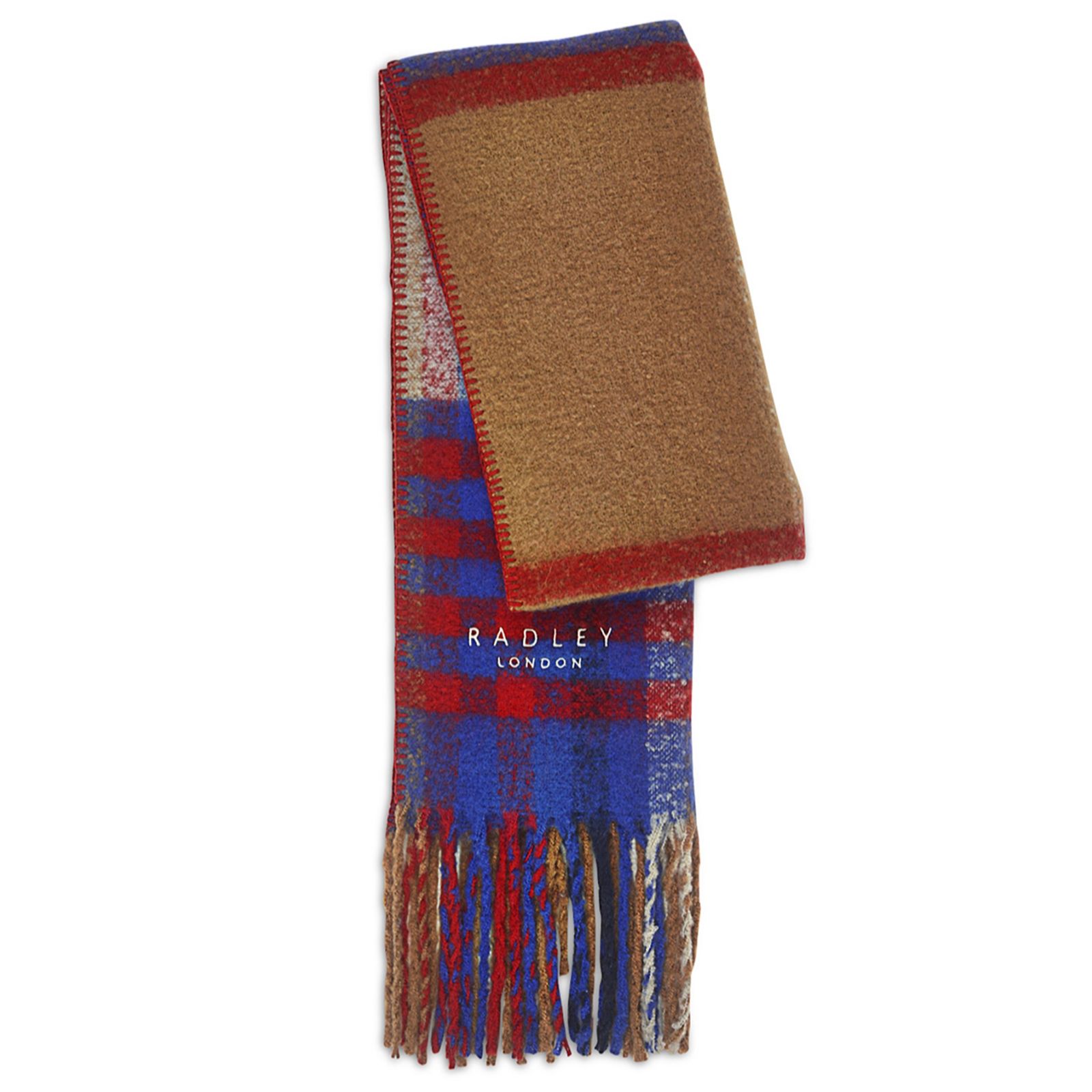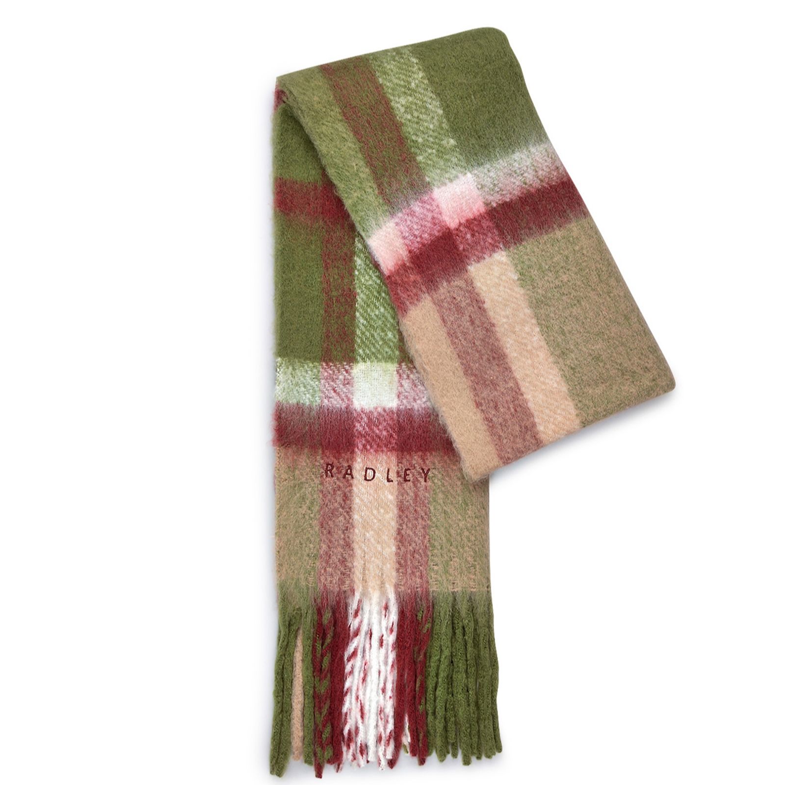 Wrap yourself in the timeless charm of the Radley Fluffy Check scarf, where traditional check patterns meet modern sustainability. Soft fringing and blanket-stitched edges add a cosy touch, while the embroidered logo nods to quality craftsmanship. Perfect for chilly commutes, weekend strolls or layering over your favourite coat, this scarf effortlessly blends comfort and style. Try pairing it with a neutral jumper for an effortlessly chic look.