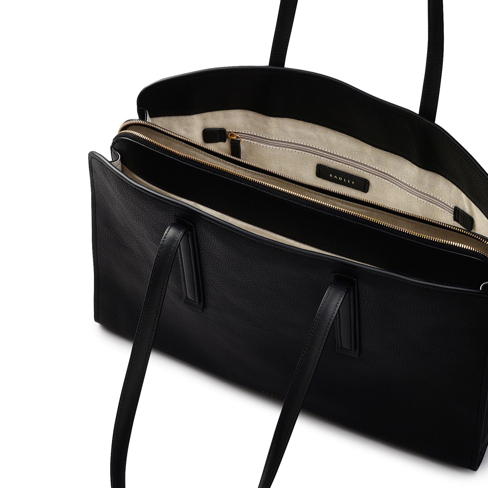 Effortlessly blending practicality and style, Radley Londons Arragon Row large laptop shoulder bag is crafted from grained leather with a softly domed silhouette, slim layered handle tabs and a detachable strap. With three spacious compartments and a padded zipped section for your laptop, this bag keeps you organised whether youre heading to work or out and about at the weekend.