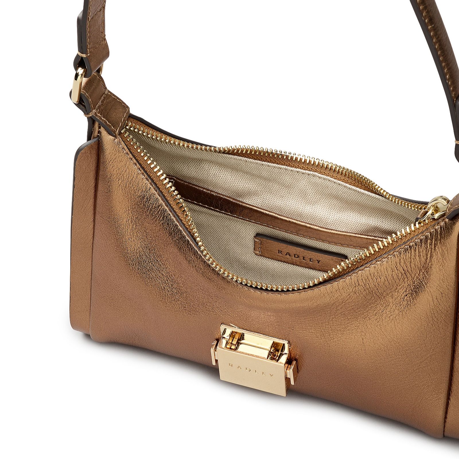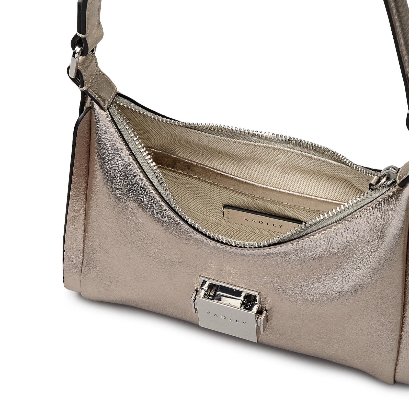 Refresh your handbag collection with the Sloane Mews small shoulder bag from Radley, where soft metallic grain leather and refined inverted seams meet a chic scooped top edge. The branded push lock tab and zip fastening add a secure finishing touch, making this shoulder bag a stylish companion for evenings out or day-to-day ventures.