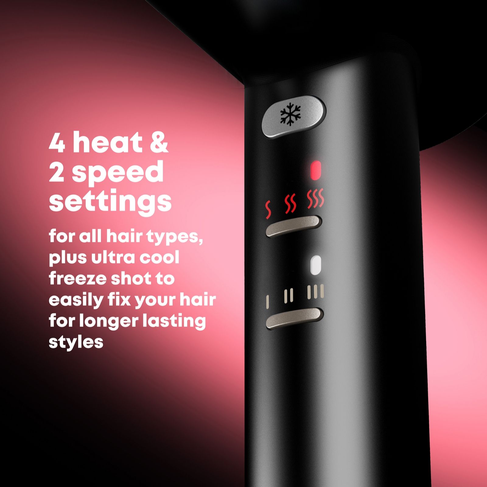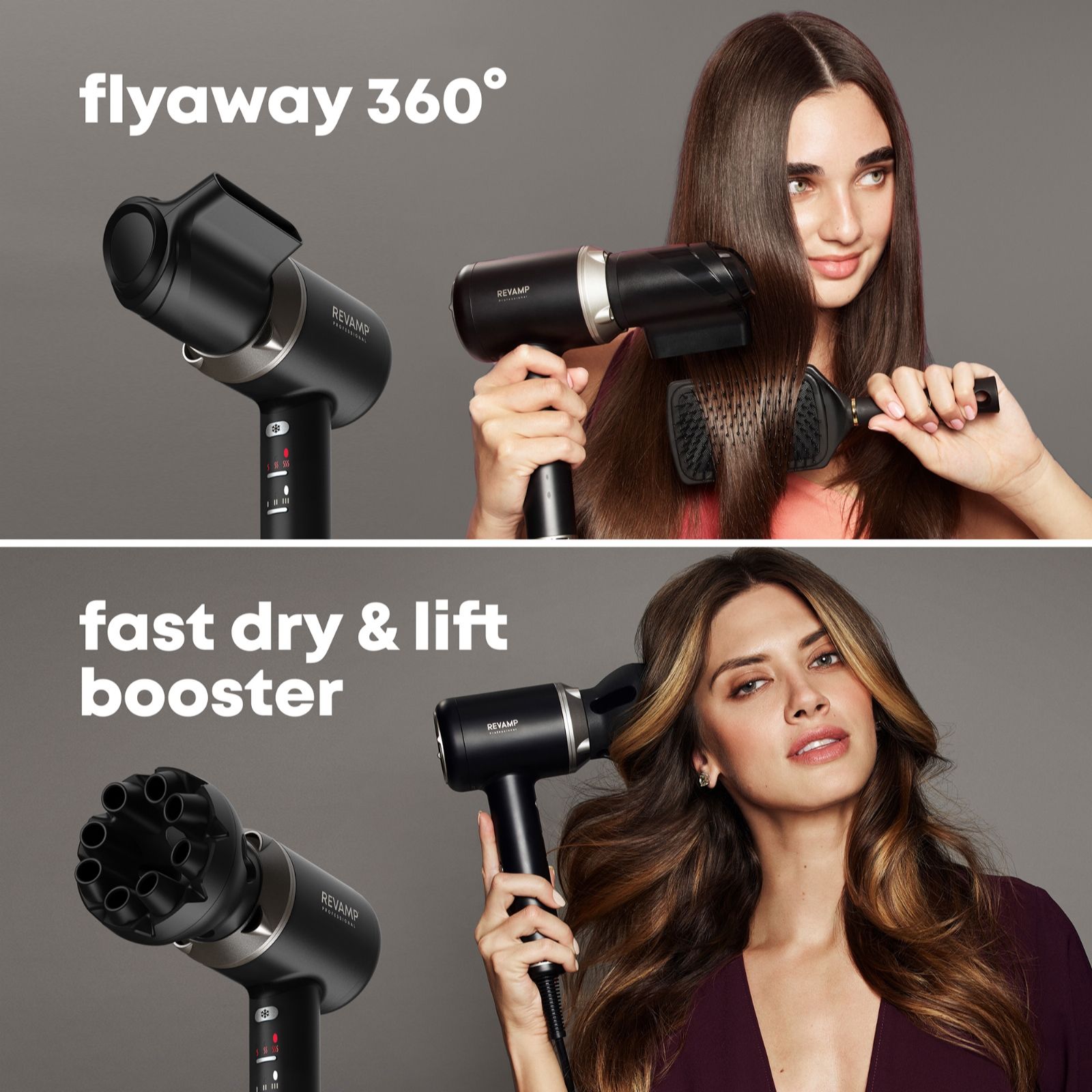Achieve salon-inspired results at home with the Enigma Precision Hair Dryer from Revamp. Featuring a powerful digital brushless motor and quad ionic conditioning, it helps deliver fast drying while working to enhance smoothness and shine. With four magnetic styling attachments, multiple heat and speed settings, plus a lightweight, ergonomic design, it's ideal for everyday styling or creating polished looks for special occasions.