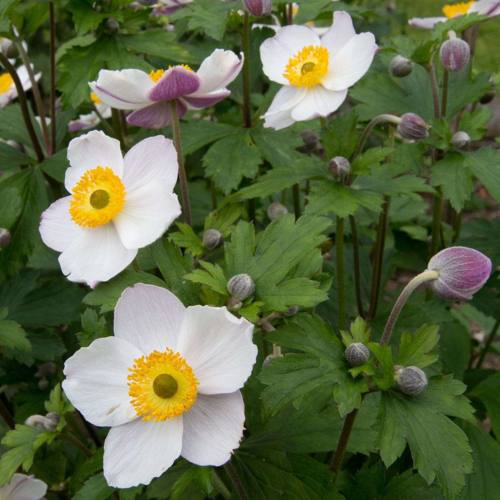 Enhance your garden with the elegant Anemone Elfin Swan from Richard Jackson. This hardy perennial is known for its exquisite white flowers with violet markings on the reverse, blooming from July to October, and attracting pollinating insects. Perfect for cottage gardens, patios, or cutting gardens, it thrives in fertile, moist, well-drained soil and adds a touch of charm to any outdoor space.