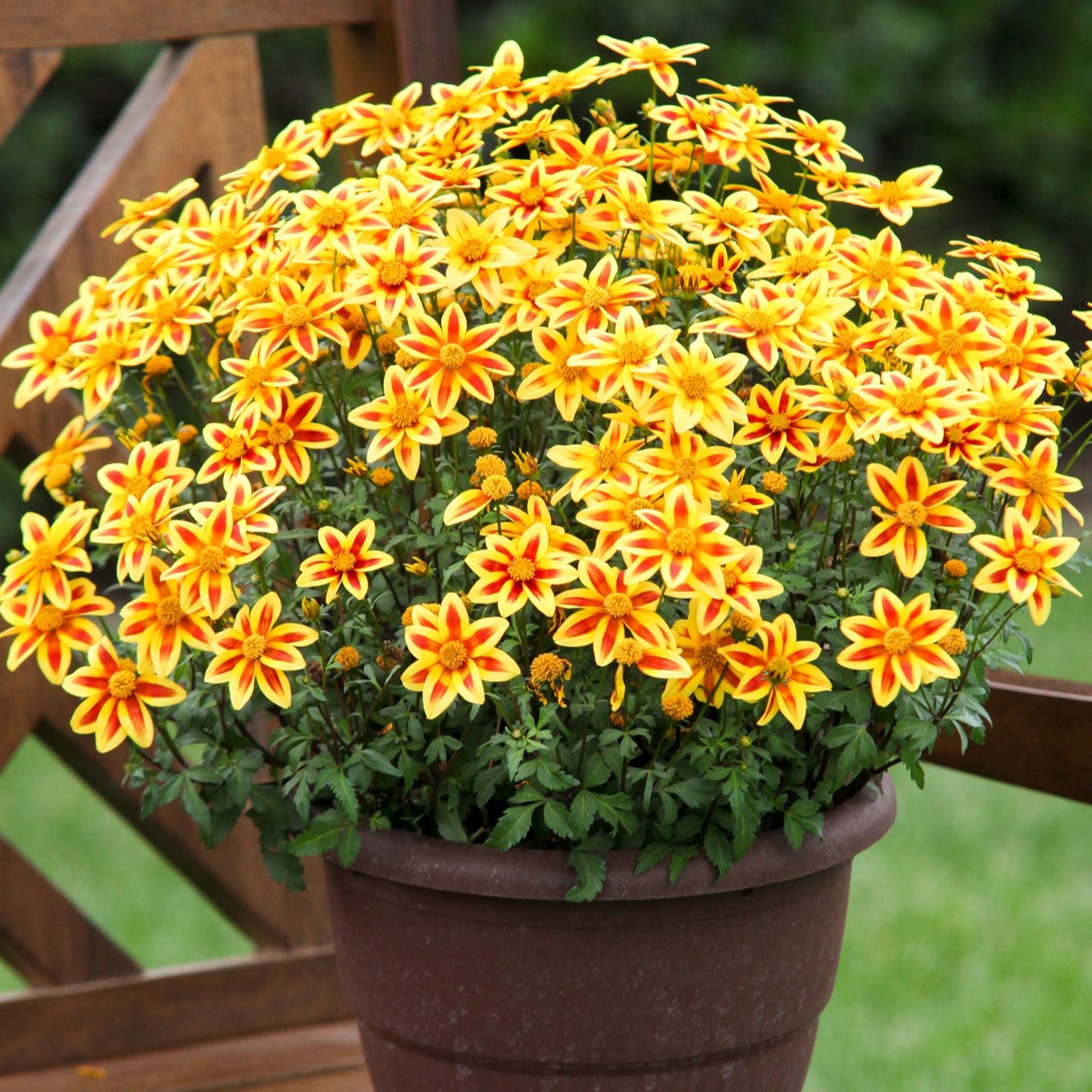 Let your garden shine like the sun with Richard Jackson's Bidens Blazing Star Power Plants, bursting with bright yellow and red star-shaped blooms that flourish from June to October. Perfect for hanging baskets, window boxes, patio containers or borders, these low-maintenance, drought-tolerant beauties will attract bees and butterflies while adding vibrant colour to your outdoor space. Supplied as bigger, stronger garden-ready plants for immediate impact.