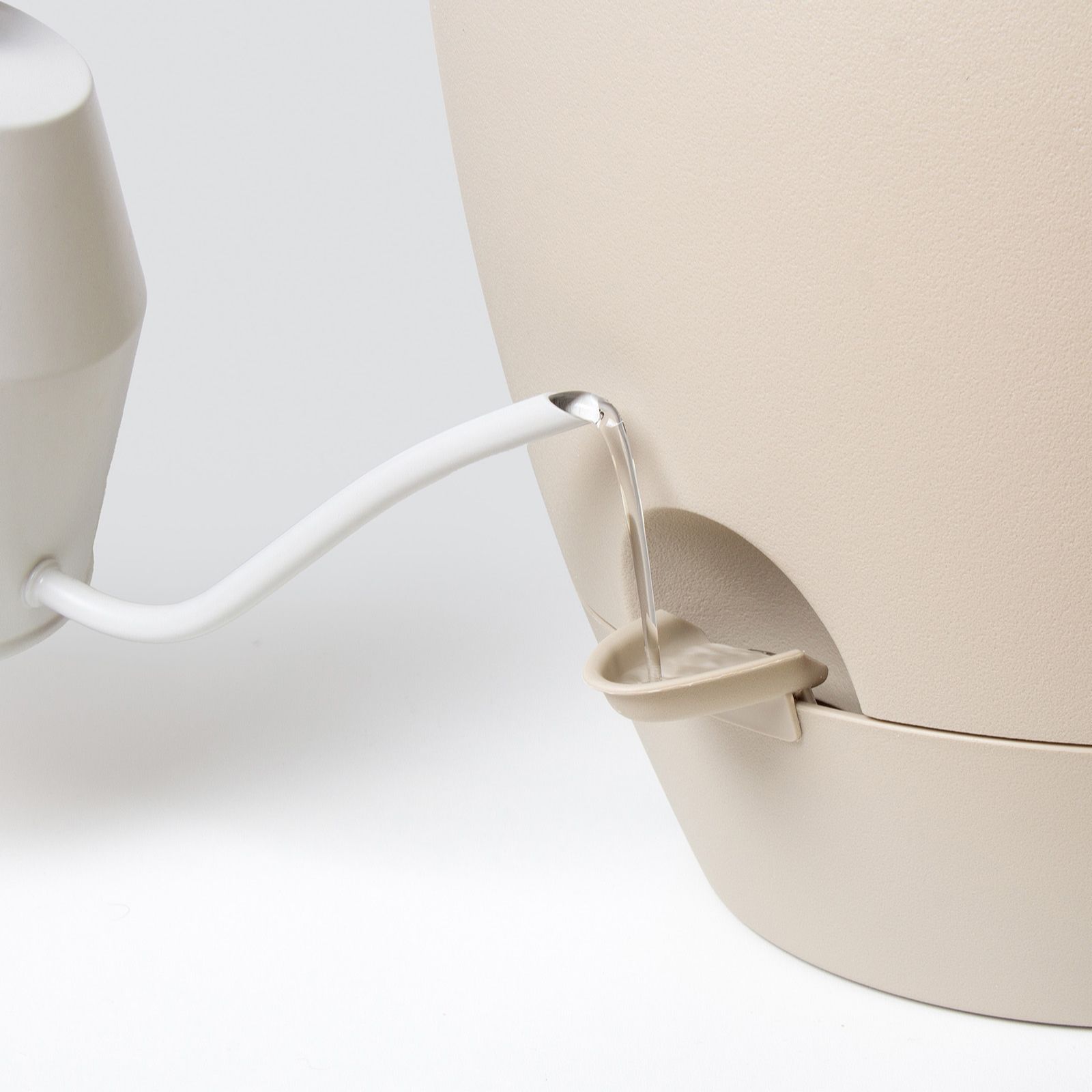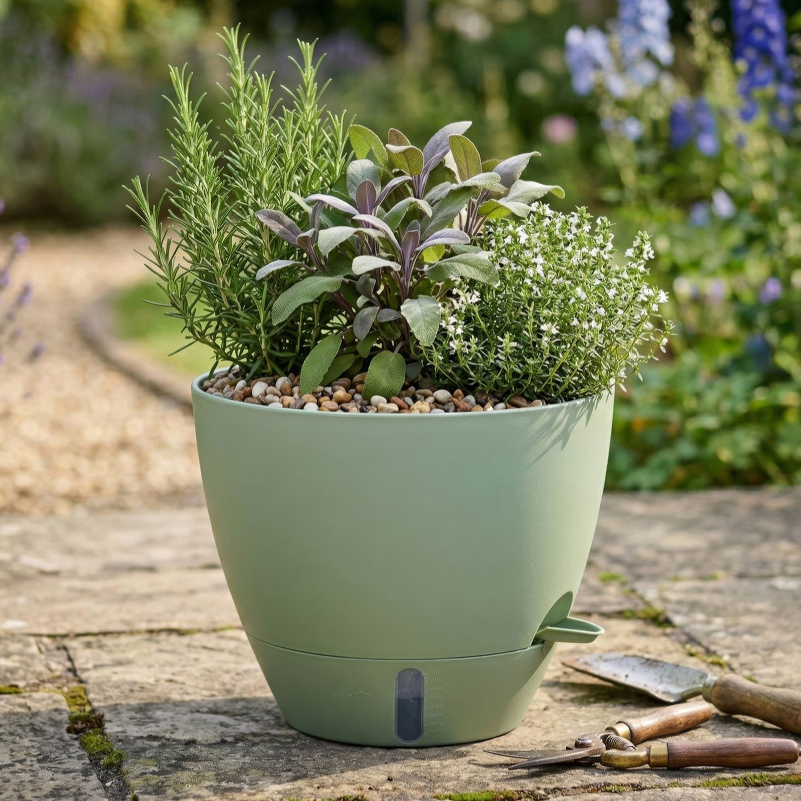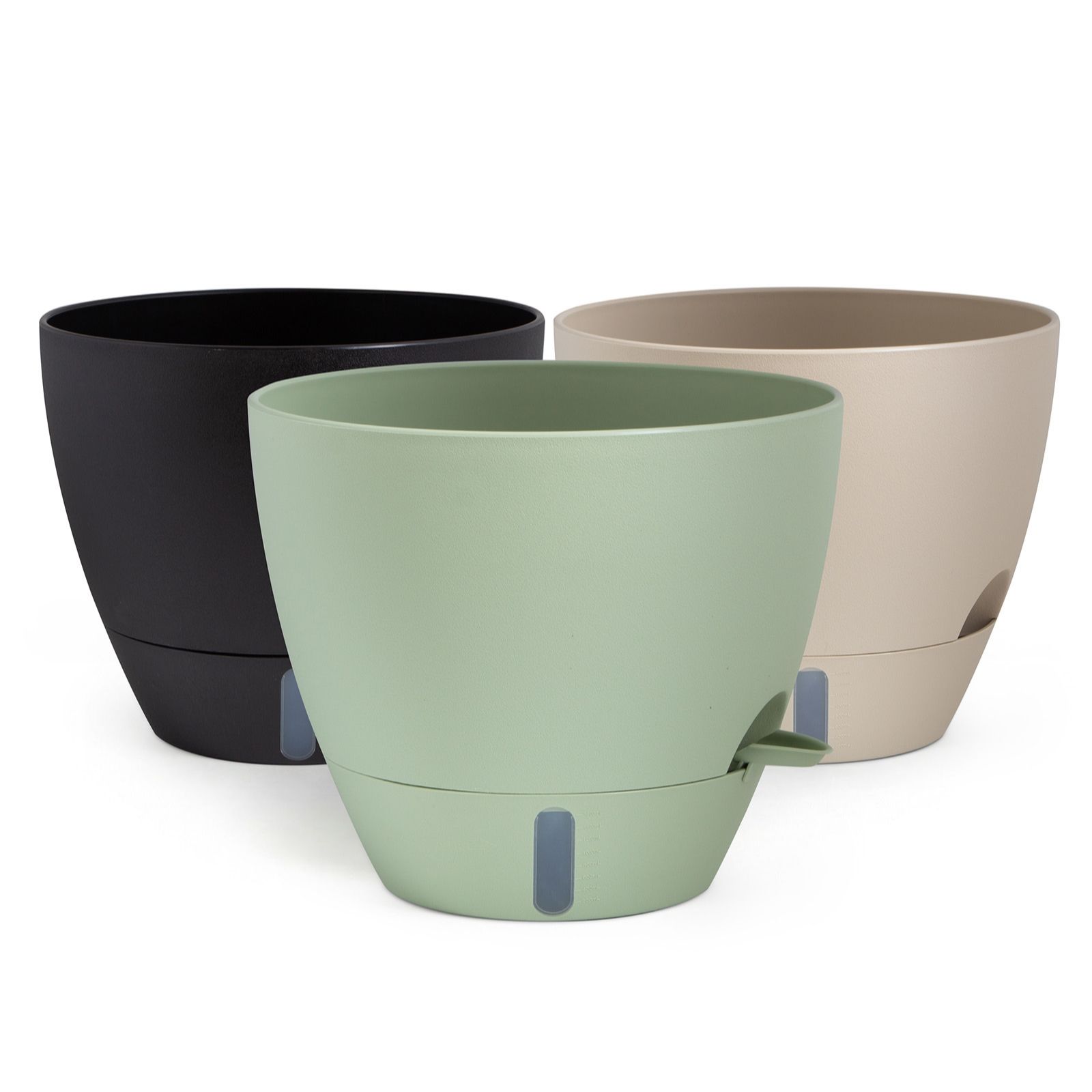 with a clever built-in window in each planter, you can effortlessly see when the water needs topping up in the reservoir, taking the guesswork out of watering your plants. There's also an attachable watering lip to make it even easier to top up the reservoir with a watering can or hose. It's gardening made easy!