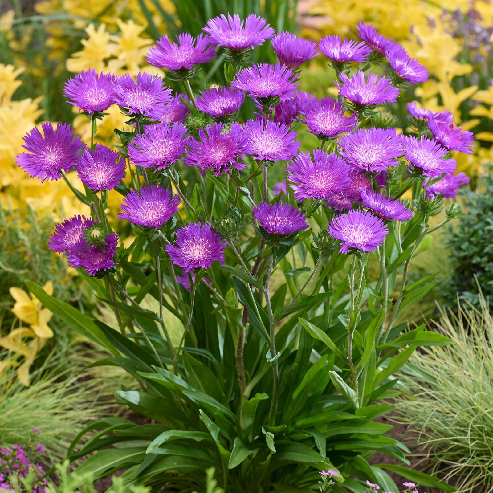 Transform your garden with Richard Jackson's Stokesia Amethyst, a hardy perennial boasting vibrant purple blooms from July to September. Perfect for city spaces, cottage gardens, or patio containers, these evergreen plants attract bees and butterflies while making stunning cut flowers for your home. Enjoy their easy care and year-round interest as they thrive in borders, beds, or gravel gardens.