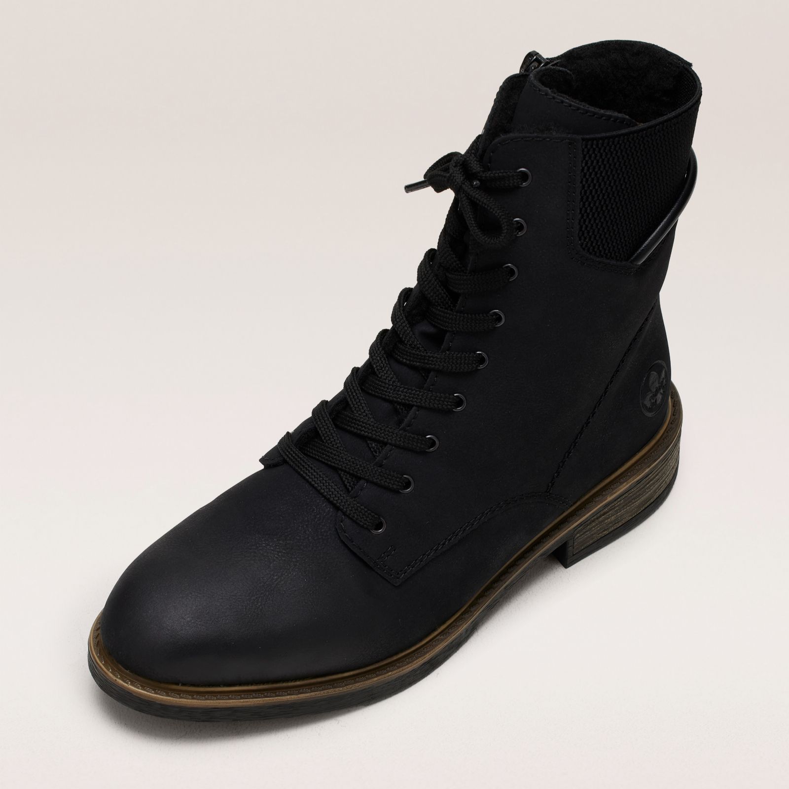 Step out in style with these lace-up ankle boots from Rieker, featuring an inside zip for easy access and a contrast sole that adds a chic touch to your look. These lightweight boots are perfect for casual outings or a day at the office, offering a velour lining and cushioned footbed for all-day comfort. Pair them with your favourite jeans and a cosy jumper for a relaxed yet fashionable ensemble.