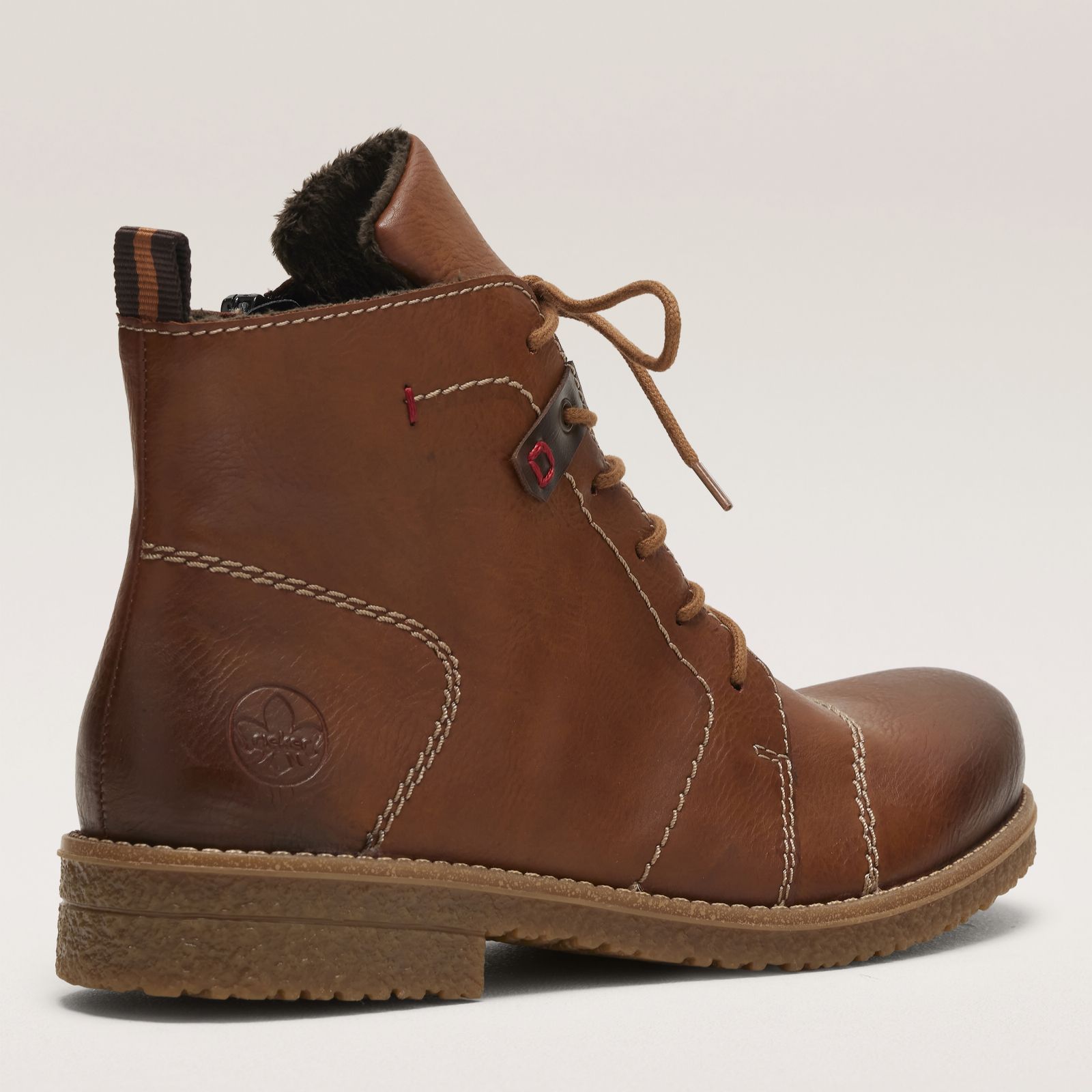 Bring a touch of rugged charm to your everyday outfits with these lace-up boots from Rieker, featuring both laces and an inside zip for easy wear and a secure fit. The lightweight design and cushioned footbed offer comfort for busy days, while the textured outsole adds grip and durability. Style these ankle boots with jeans and a cosy jumper for an effortlessly casual look.