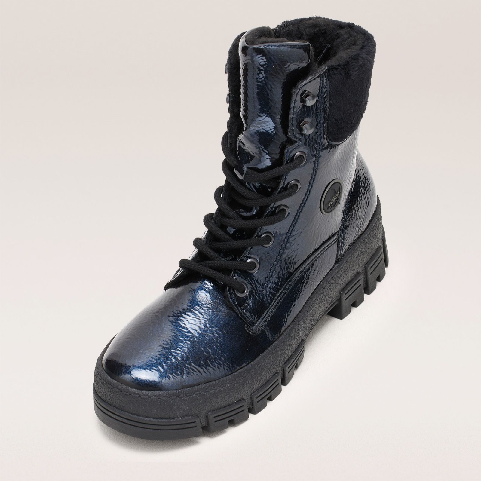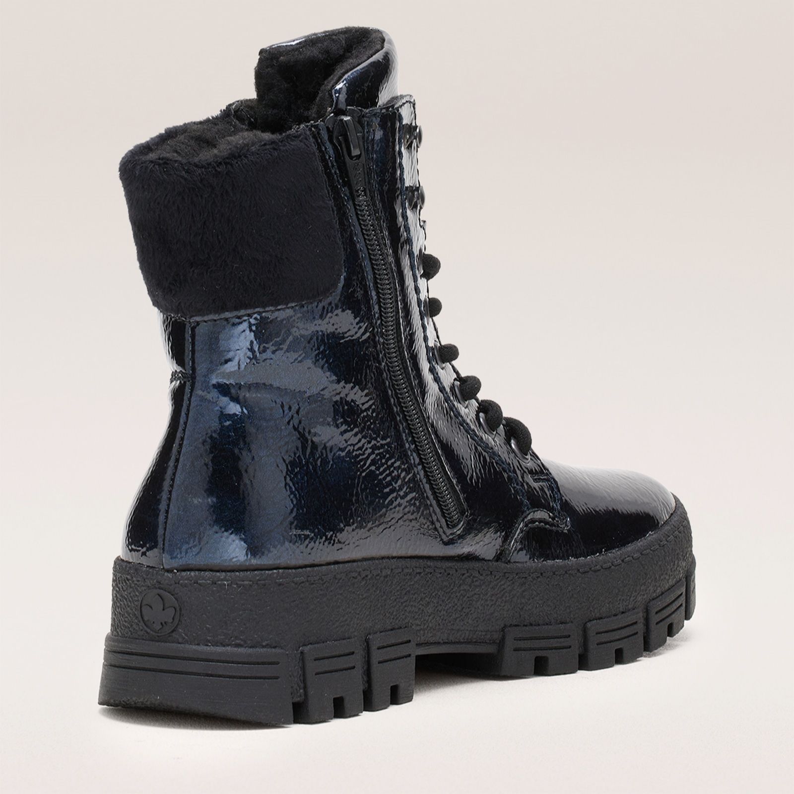 Rock your style with the lace-up ankle boots from Rieker, boasting a sleek patent look and a cosy warm lining that keeps you comfortable throughout the day. Perfect for park strolls, weekend outings or adding a chic edge to your everyday wardrobe, they combine lightweight wear with a cushioned footbed for lasting comfort. Pair them with skinny jeans and a biker jacket for an effortlessly cool finish.