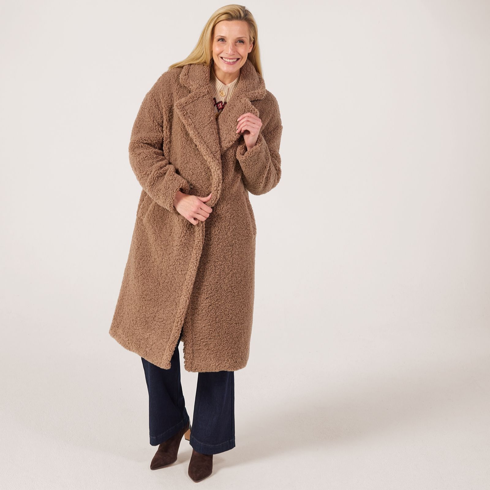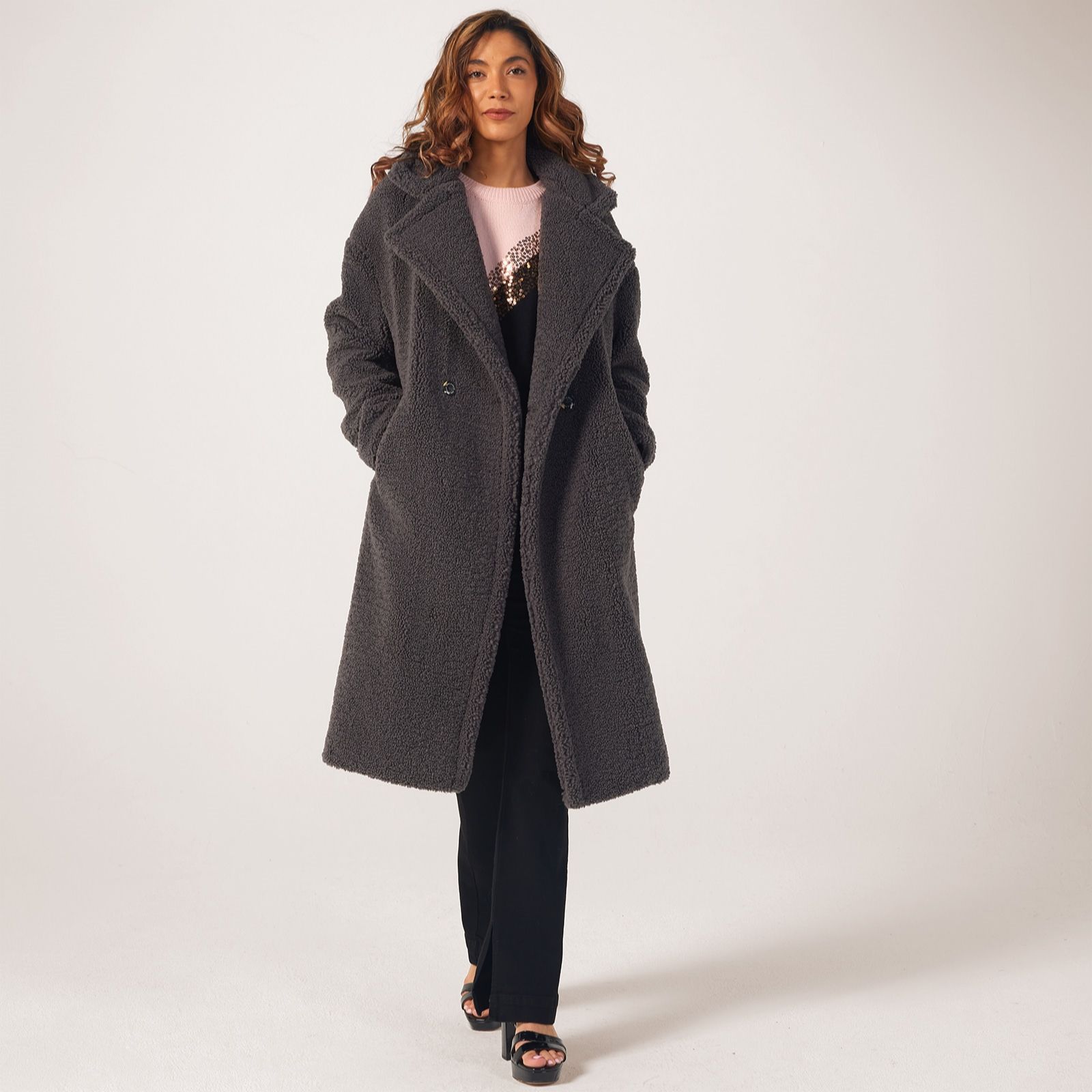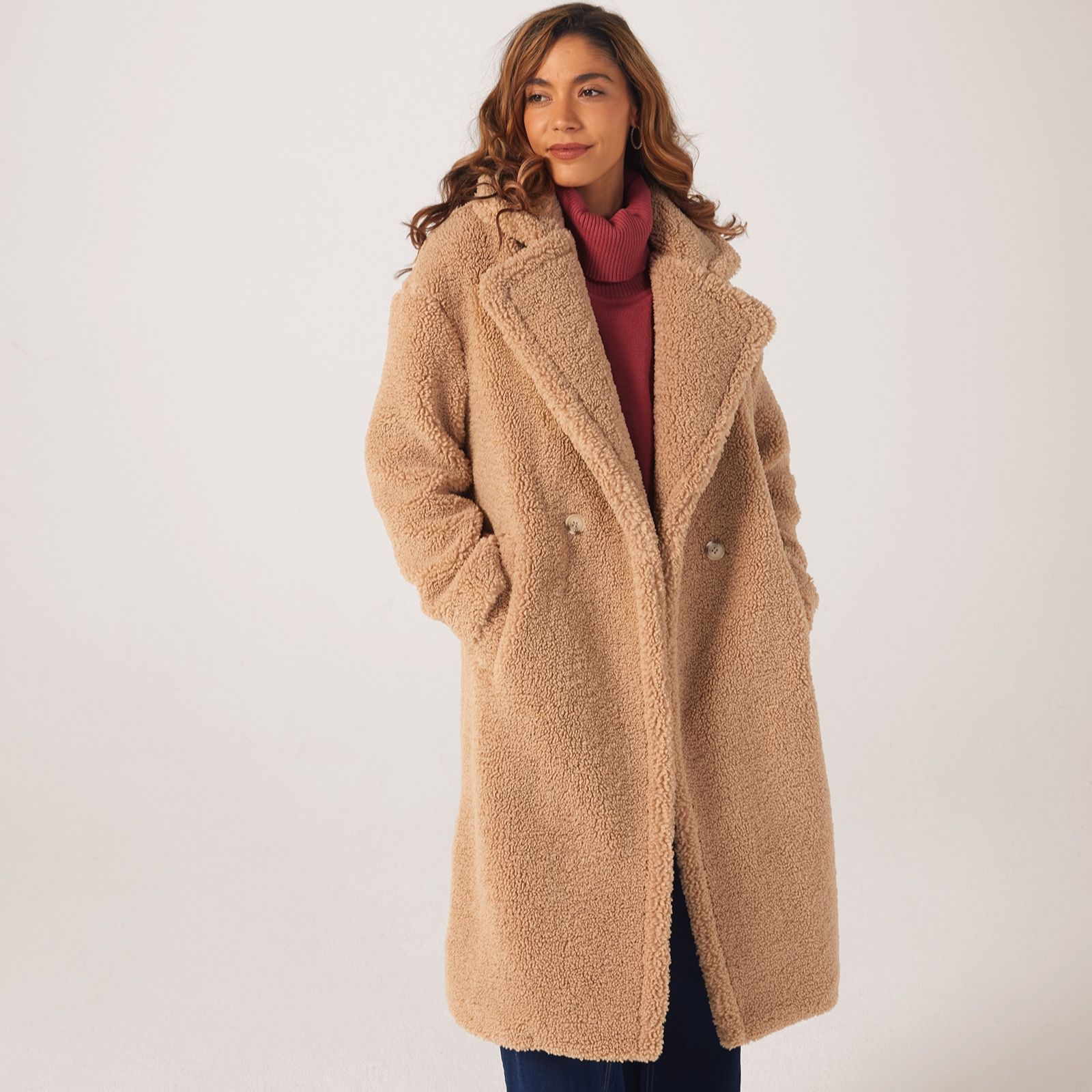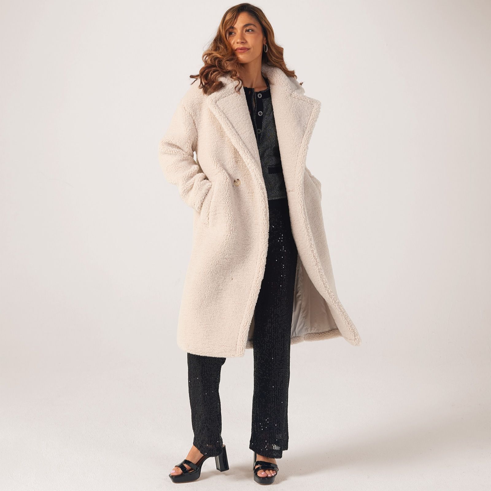 Snuggle up in the Elicia teddy coat from Rino & Pelle. With its boxy fit, double-breasted button closure and large lapel collar, this sumptuously soft coat is the ideal companion for chilly winter days. For a sophisticated office look, pair it with tailored trousers and a chic blouse, or dress it down with your favourite jeans and snug jumper for a weekend stroll.