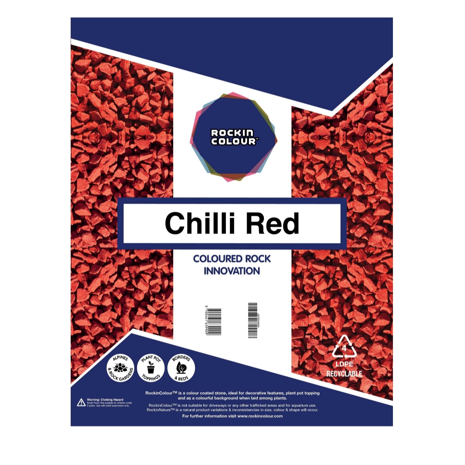 Refresh your outdoor spaces and add a splash of colour with Rockin Colour, a unique decorative stone for gardens and rockeries. With a patented manufacturing process, the stone is coated and baked in a long-lasting colourant that's safe for animals and children. Create a striking effect in any outdoor areas with this superb stone.