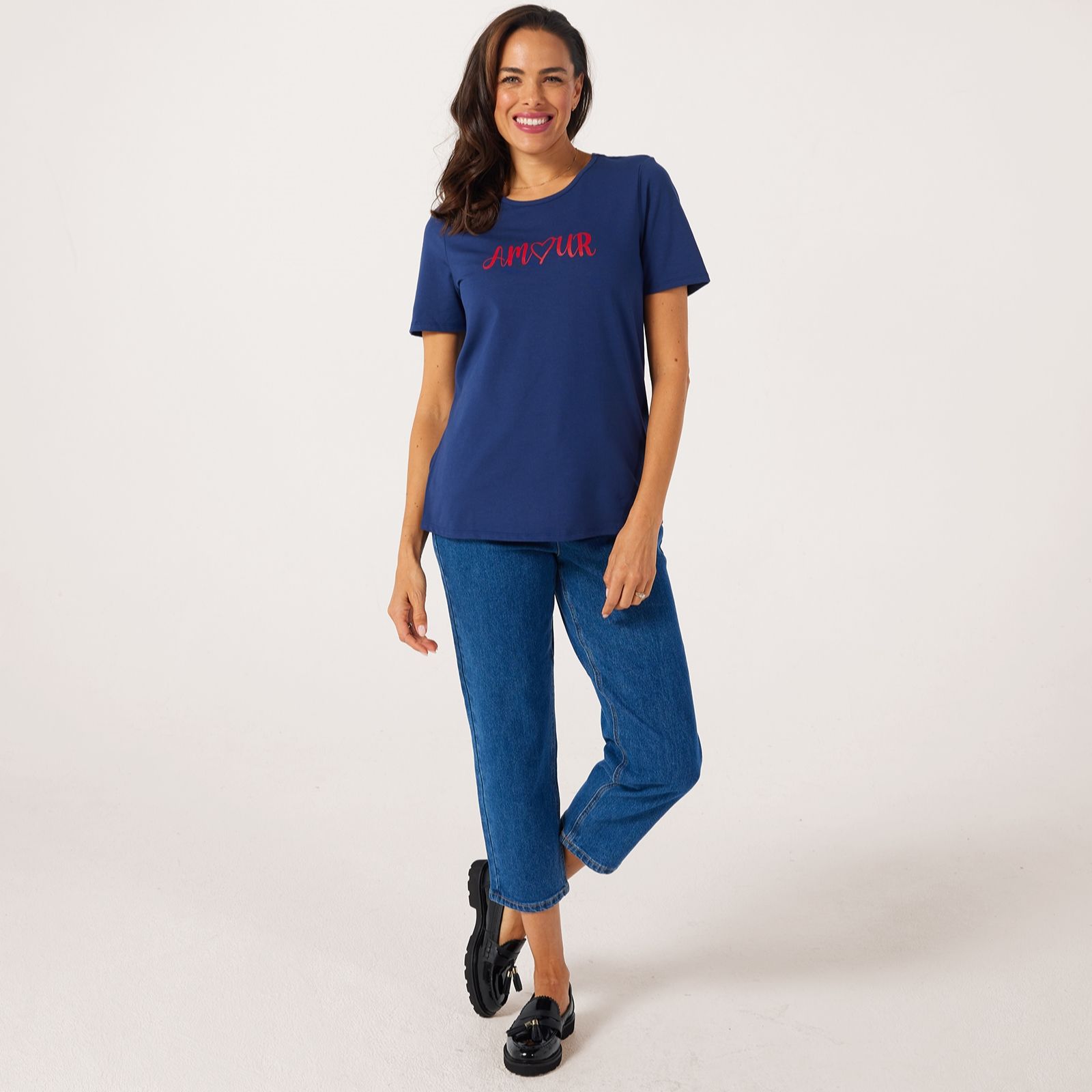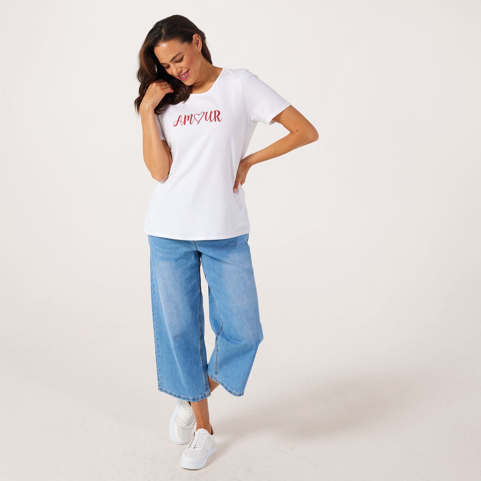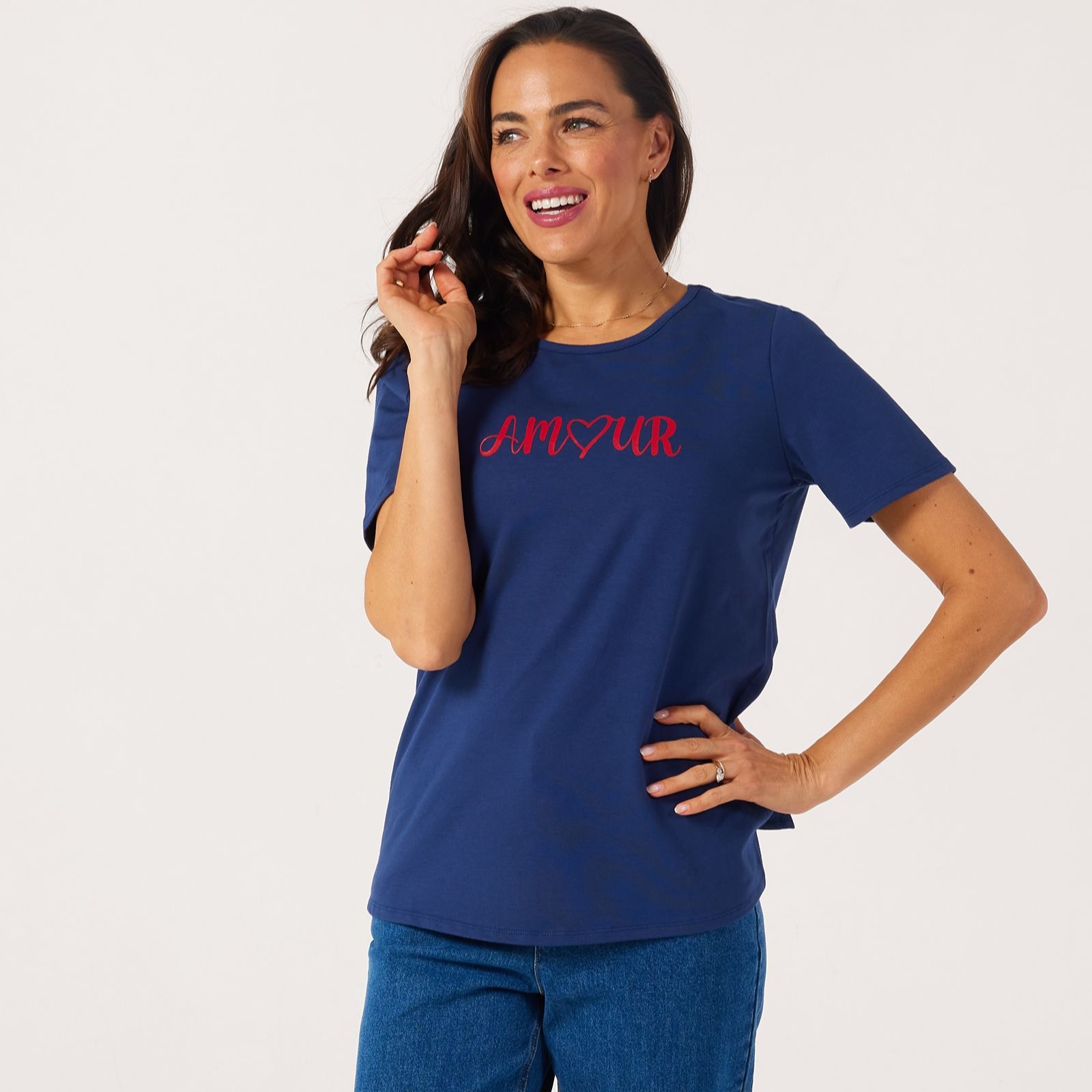 Love your look with the amour slogan T-shirt from Ruth Langsford, where playful charm and effortless style meet in one versatile piece. With its statement slogan print and seamless fit, this T-shirt brings a touch of personality to relaxed days, whether you're heading out for coffee or kicking back at home. For a fresh take, pair this T-shirt with high-waisted jeans and wedge trainers to keep your outfit laid-back yet chic.