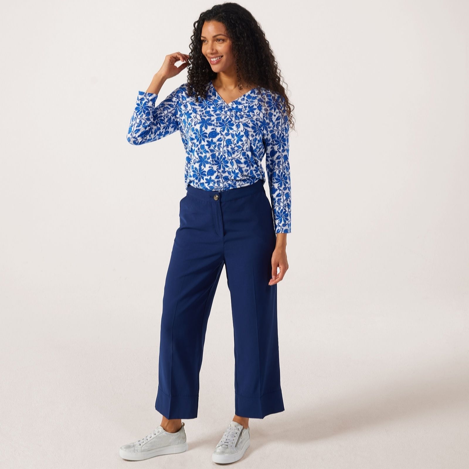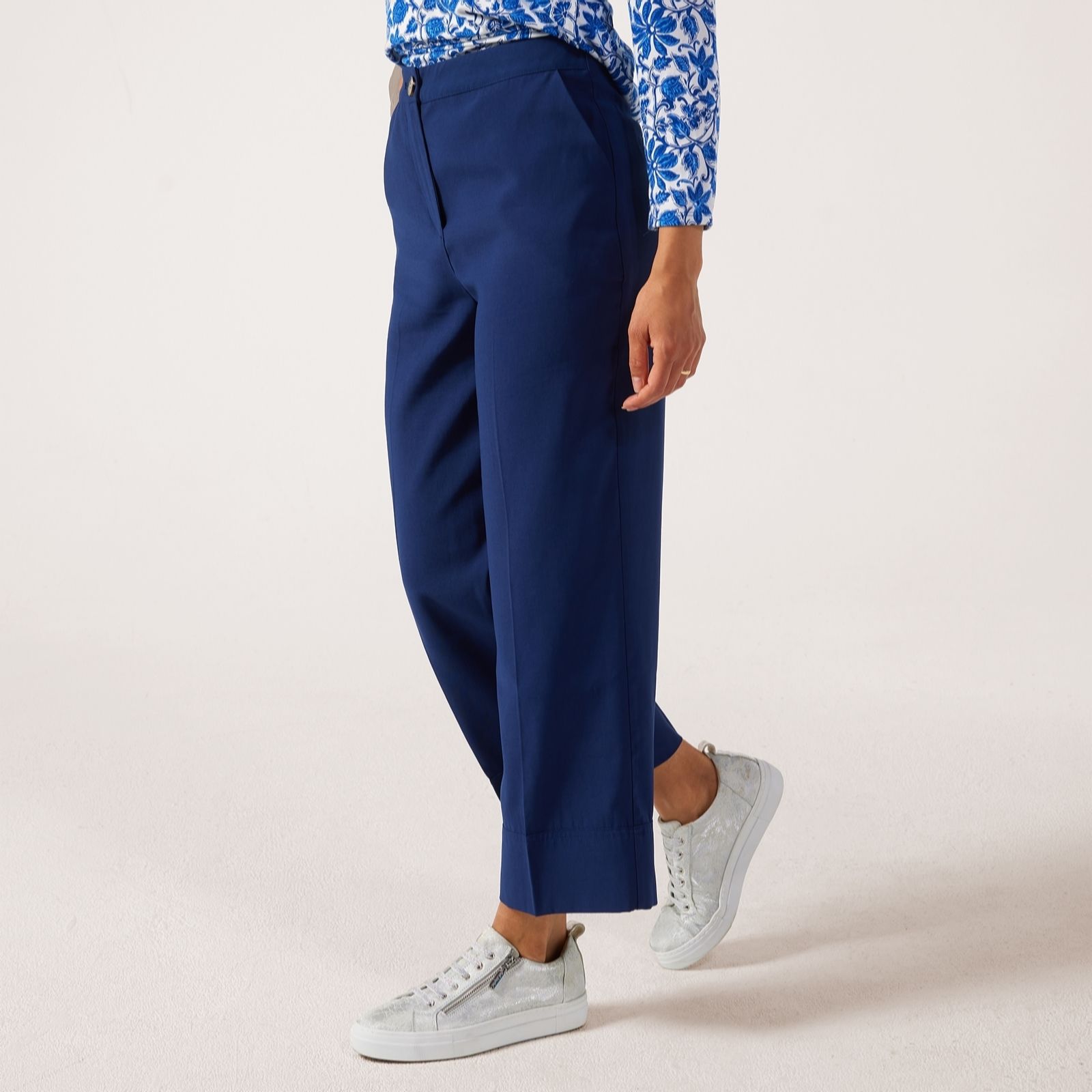 Take your everyday style up a notch with the Ruth Langsford 7/8th Deep Hem Trousers in a petite fit. These woven trousers feature a chic deep hem design, adding a contemporary twist to your wardrobe essentials. Perfect for both casual outings and more refined occasions, their versatile wide leg cut ensures you stay comfortable and stylish. Pair them with a crisp blouse for a polished look or dress them down with a cosy jumper and trainers for a relaxed, everyday vibe.