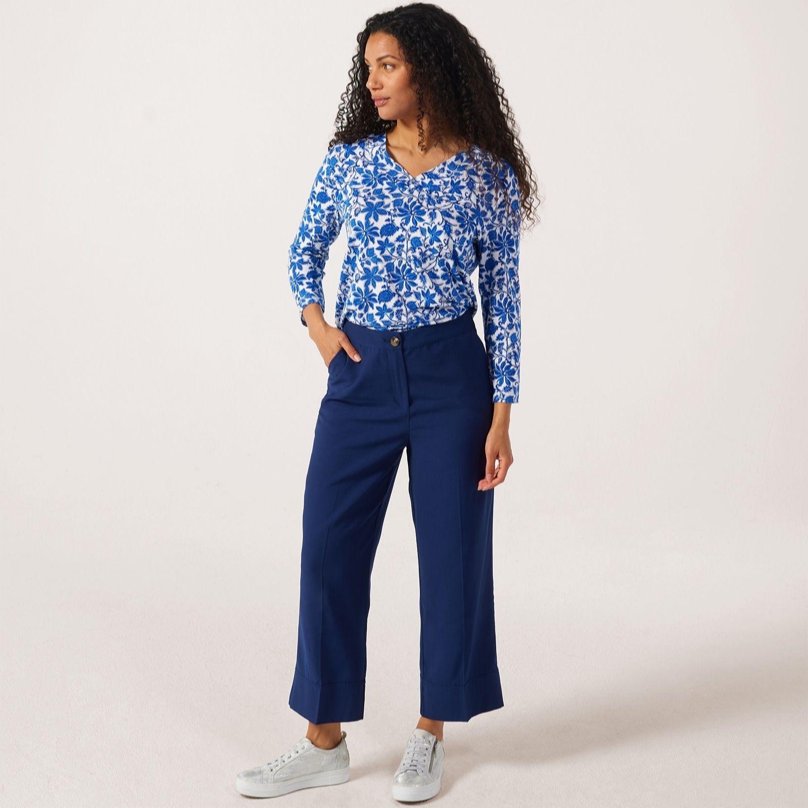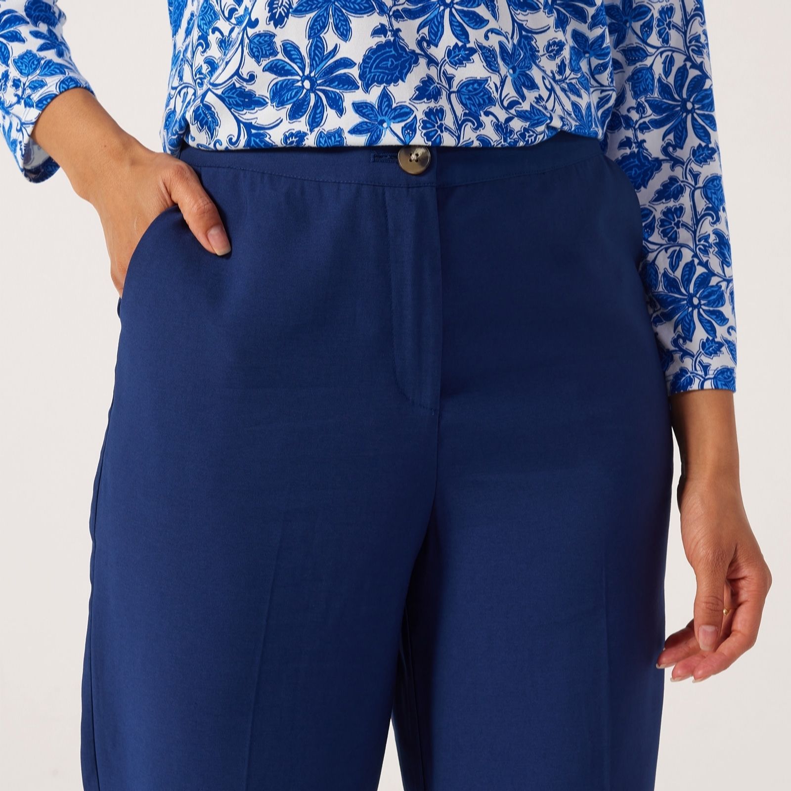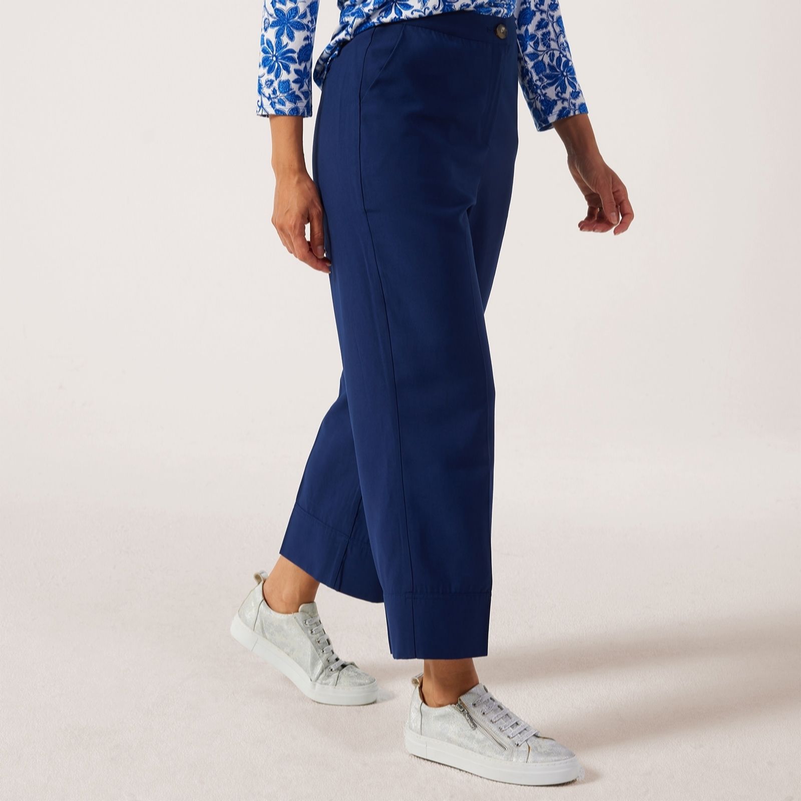 Take your everyday style up a notch with the Ruth Langsford 7/8th Deep Hem Trousers in a tall fit. These woven trousers feature a chic deep hem design, adding a contemporary twist to your wardrobe essentials. Perfect for both casual outings and more refined occasions, their versatile wide leg cut ensures you stay comfortable and stylish. Pair them with a crisp blouse for a polished look or dress them down with a cosy jumper and trainers for a relaxed, everyday vibe.