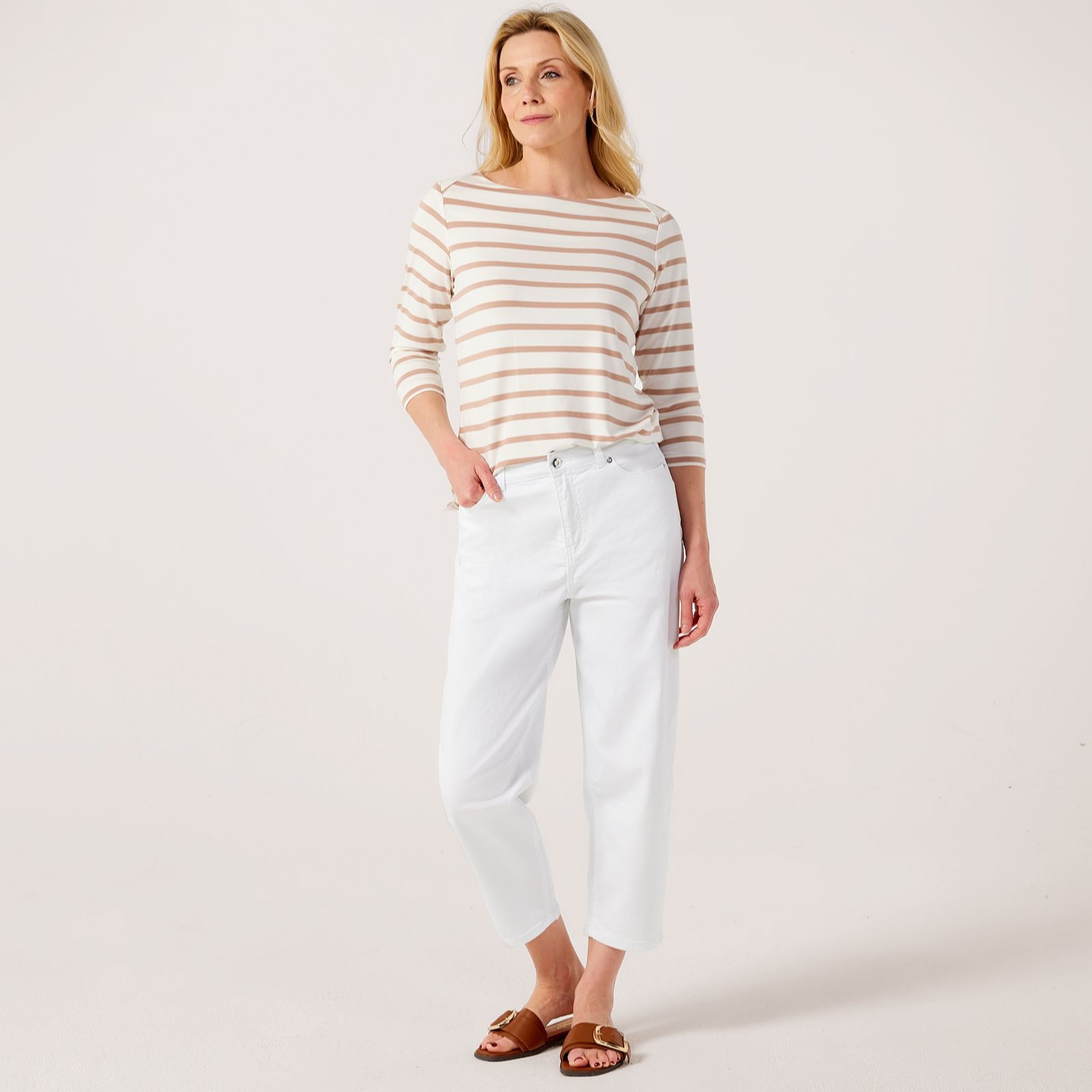 Add a chic and contemporary edge to your denim collection with the Ruth Langsford Barrel Leg Jeans in a standard fit. These jeans offer a modern twist on classic denim, featuring a stylish barrel leg design that provides a relaxed yet polished look. Ideal for both casual outings and more dressed-up occasions, these jeans can effortlessly transition from day to night. Pair them with a tucked-in blouse and heeled boots for a sophisticated ensemble or with a simple t-shirt and trainers for a laid-back vibe.