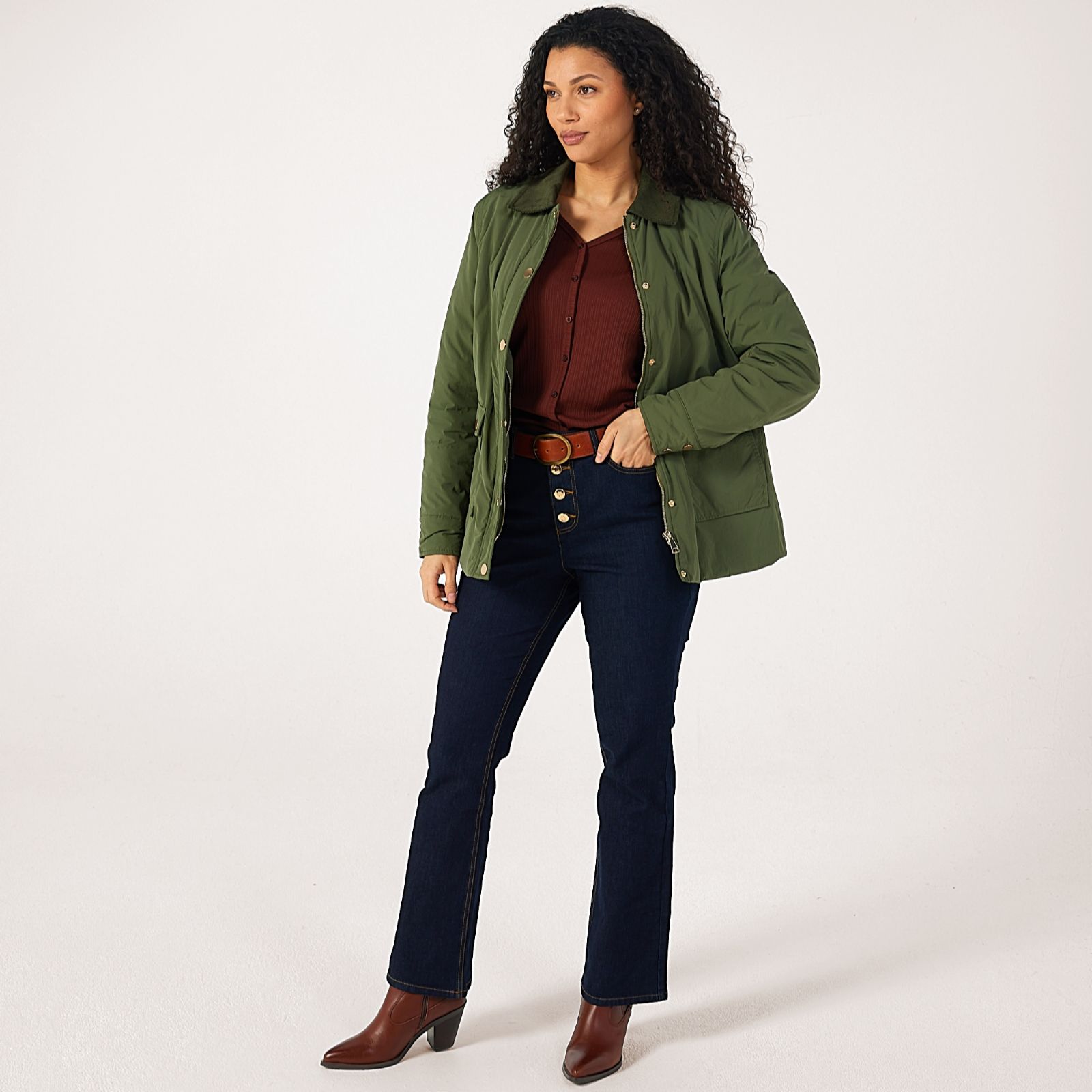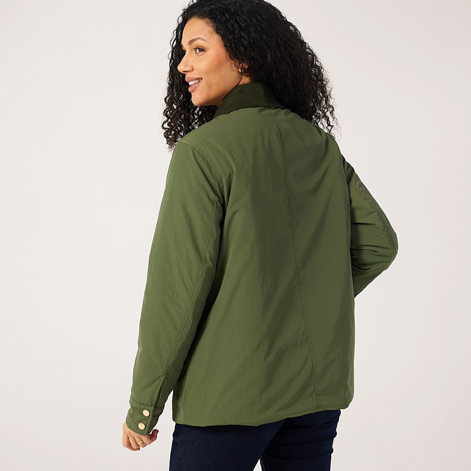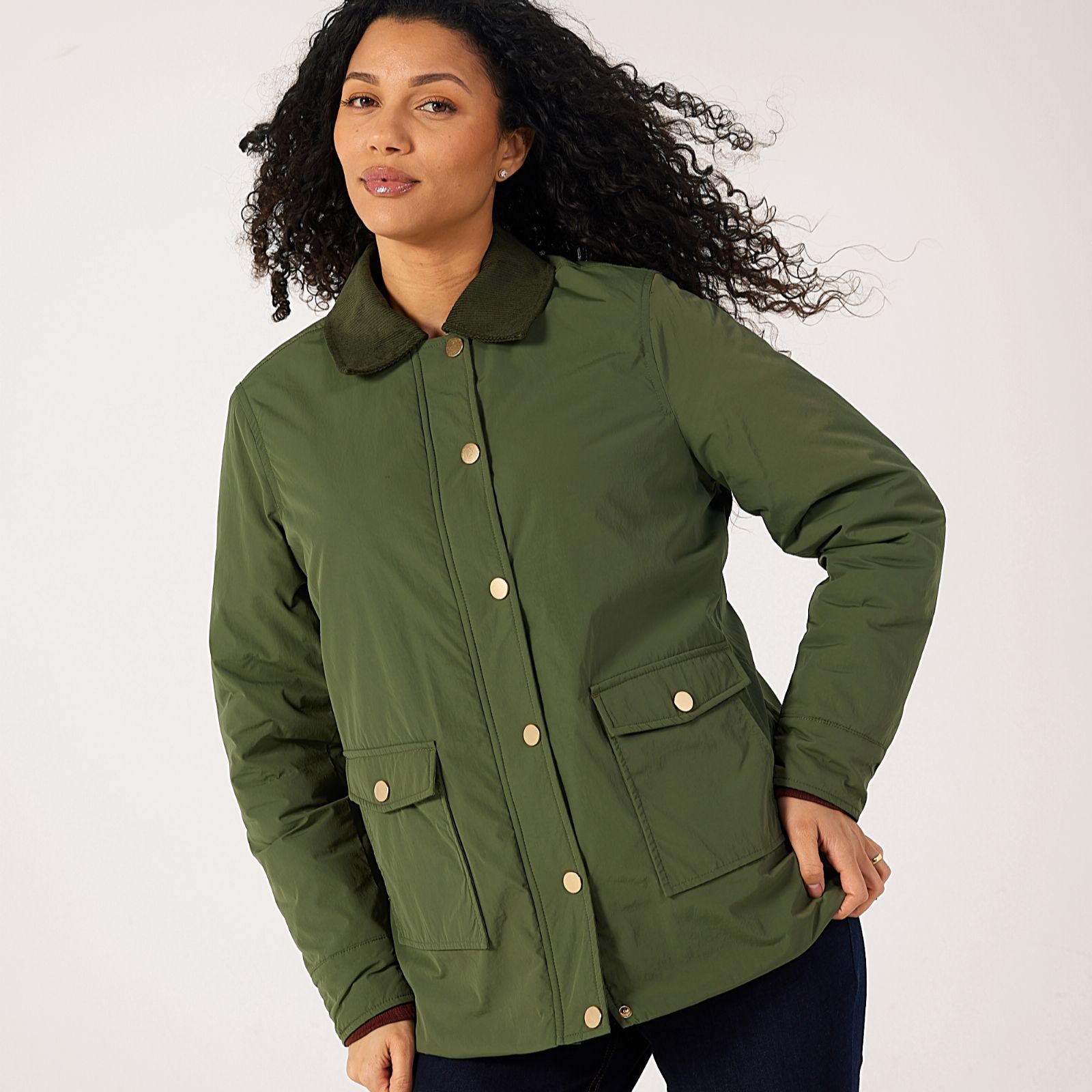 Blending classic charm with a modern edge, the Ruth Langsford Cord Collar Jacket showcases a stylish khaki shell paired with a soft corduroy collar for a subtle contrast. Perfect for everything from weekend walks to casual meet-ups, its versatile design offers effortless style all season long. Try layering it over a chunky knit and jeans for a relaxed, on-trend look.
