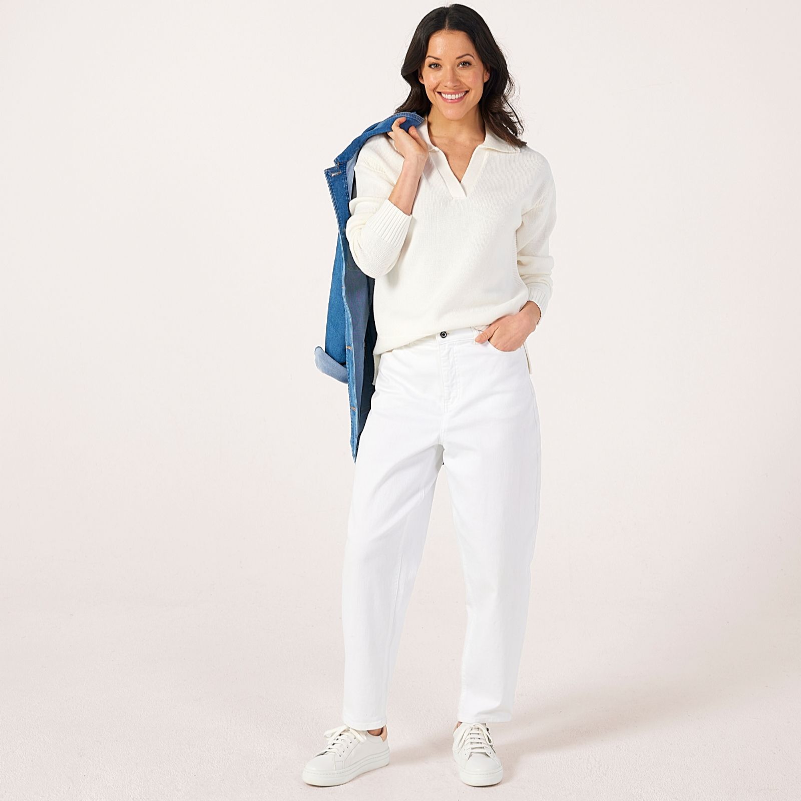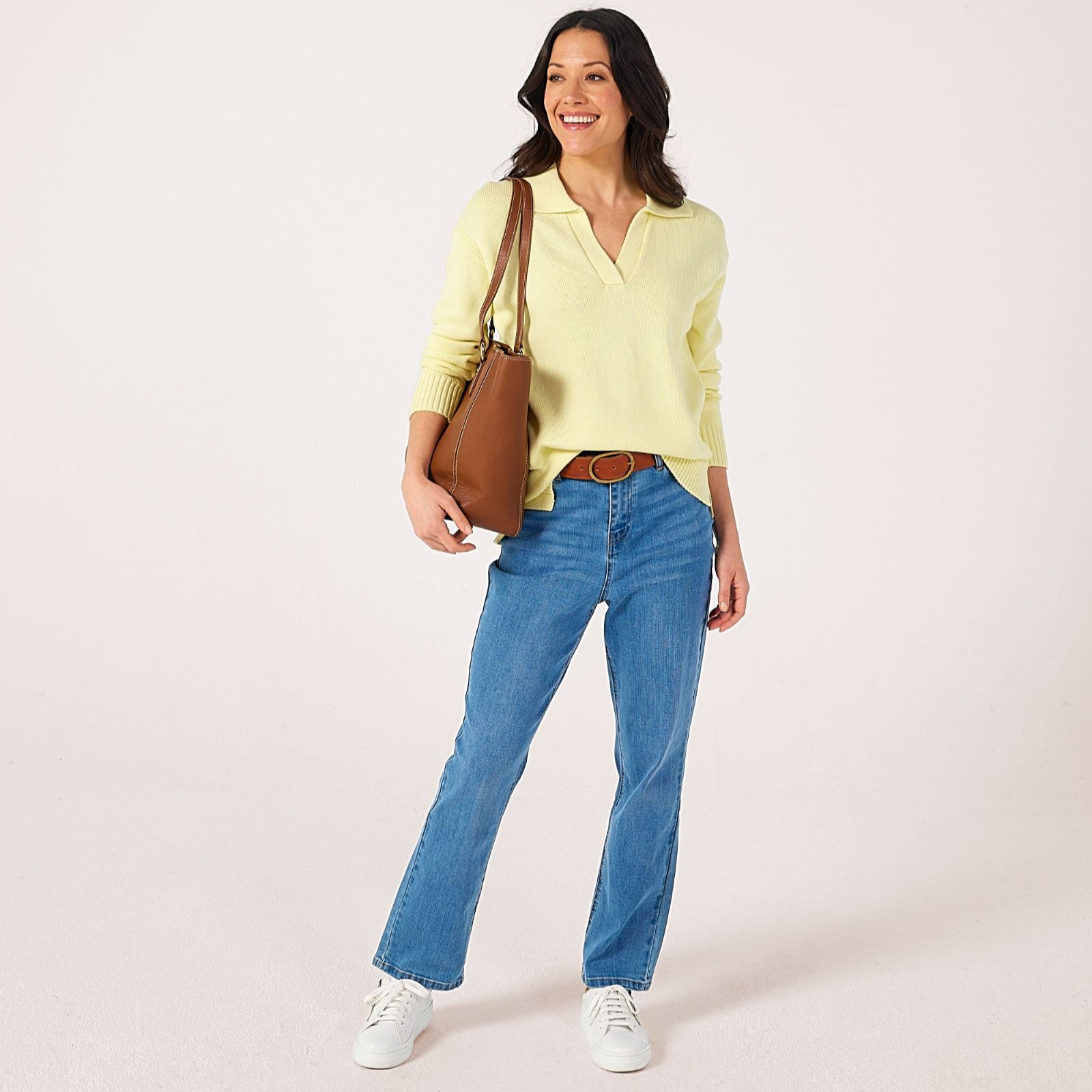 Update your wardrobe with the contemporary style of this cosy and casual collared jumper from Ruth Langsford. The long-sleeved piece features a collared neckline and is crafted from a wonderfully breathable, mid-weight blend of cotton and viscose perfect for seeing you through from cooler months into spring. It's the perfect transitional garment for your new season outfits.