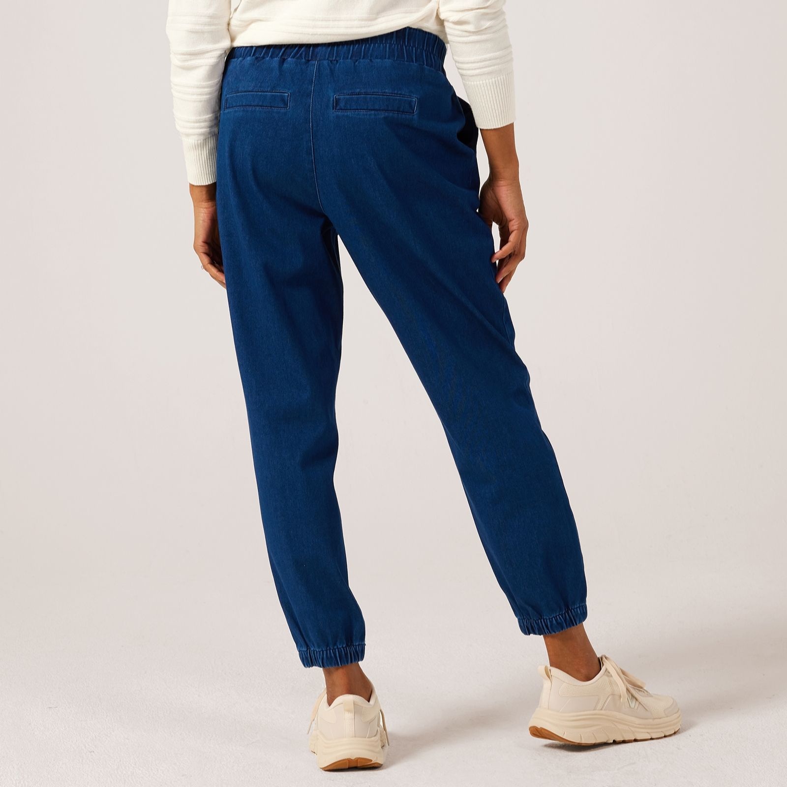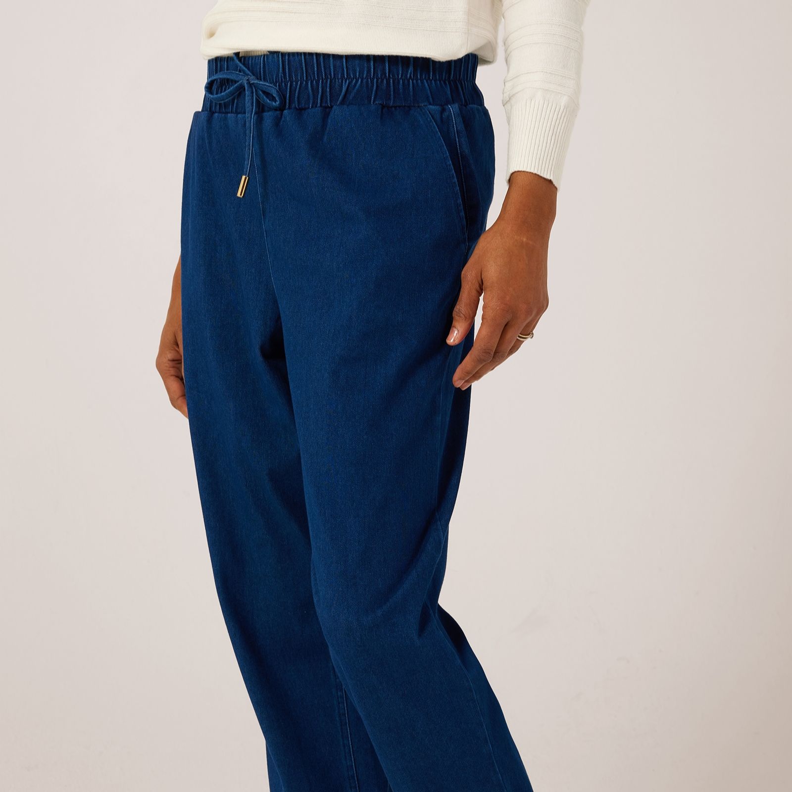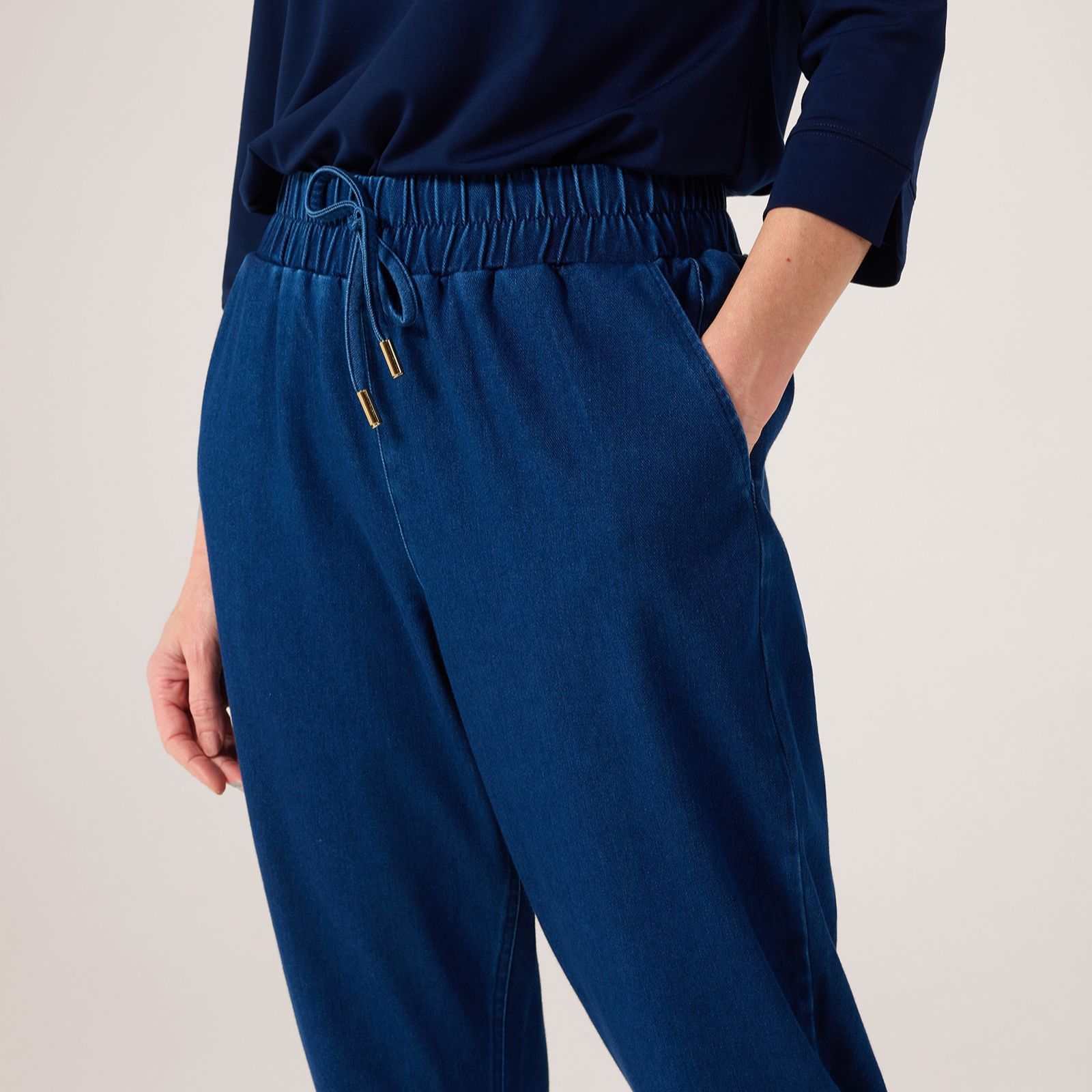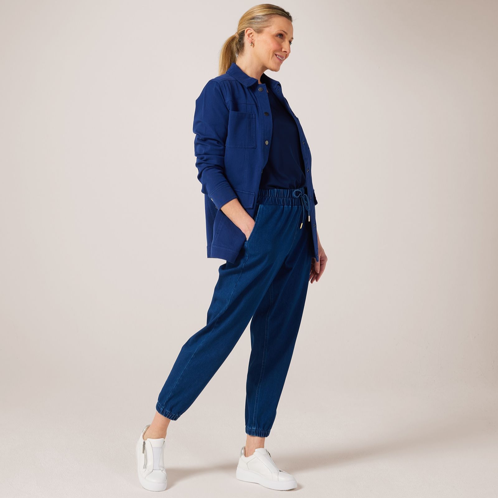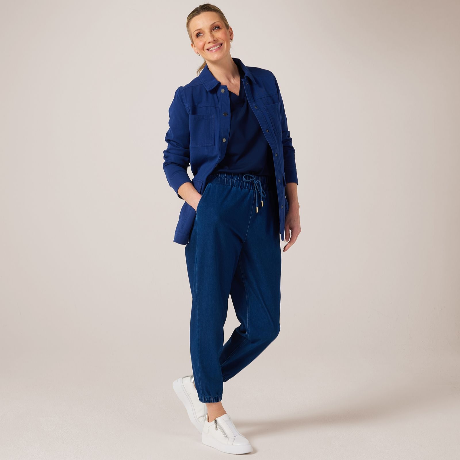 Add a touch of laid-back sophistication to your wardrobe with these Denim Look Jogger trousers from Ruth Langsford in a tall fit. Crafted with a tapered leg and an elasticated waist featuring a mock drawstring, these joggers offer both style and comfort. The addition of side pockets and mock back welt pockets enhances their practicality, making them perfect for casual outings or relaxed weekends. Style with your favourite tee and trainers for an effortlessly chic look.