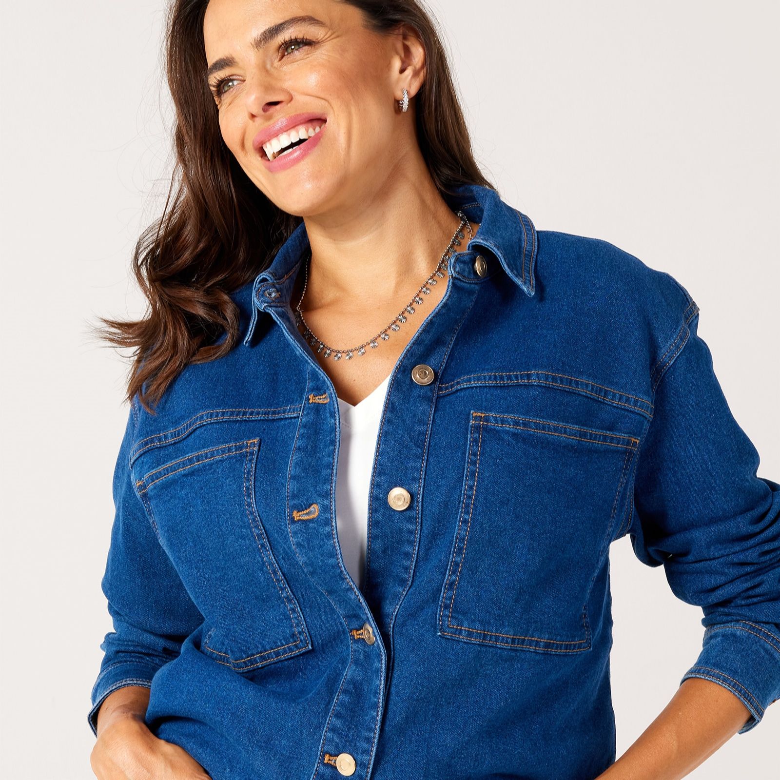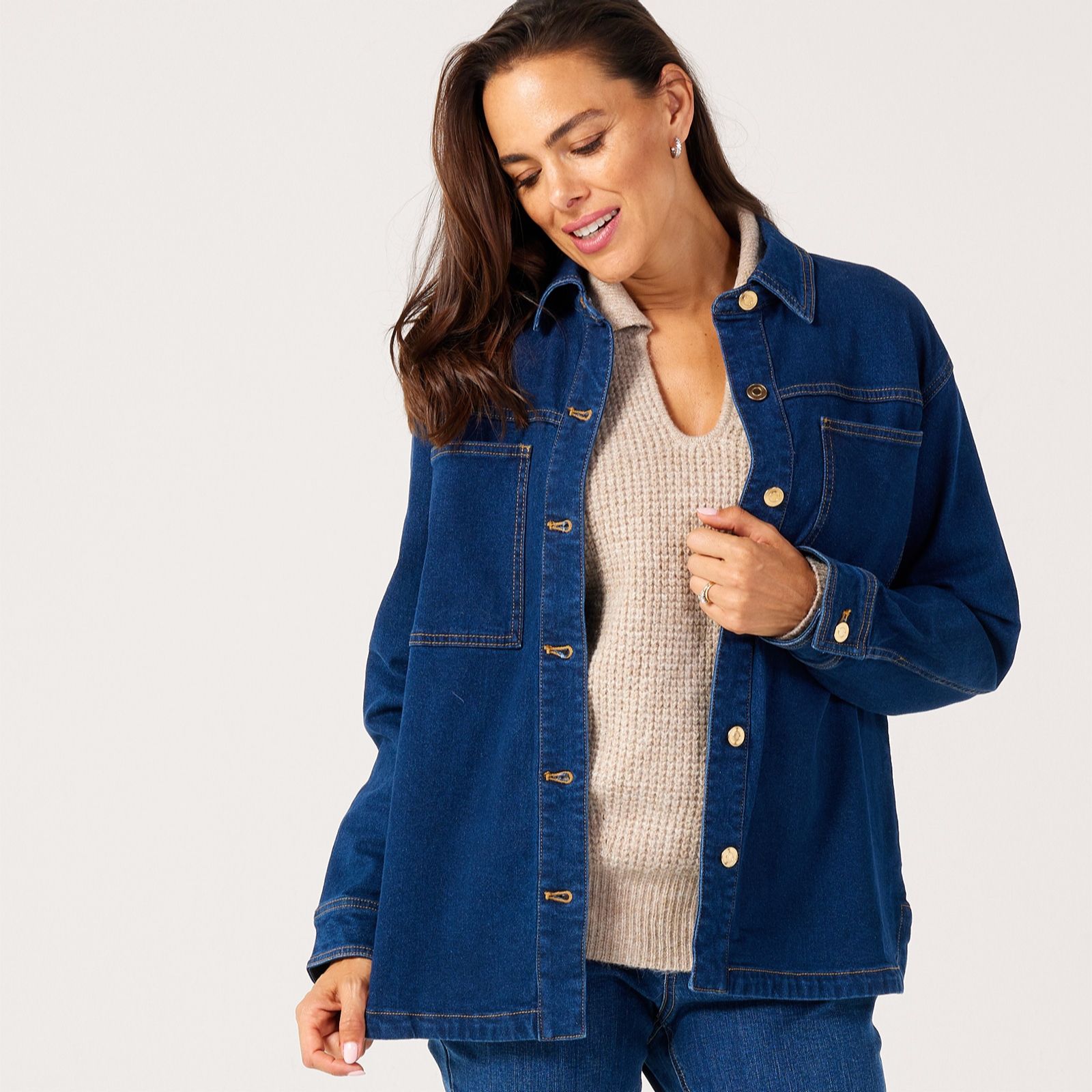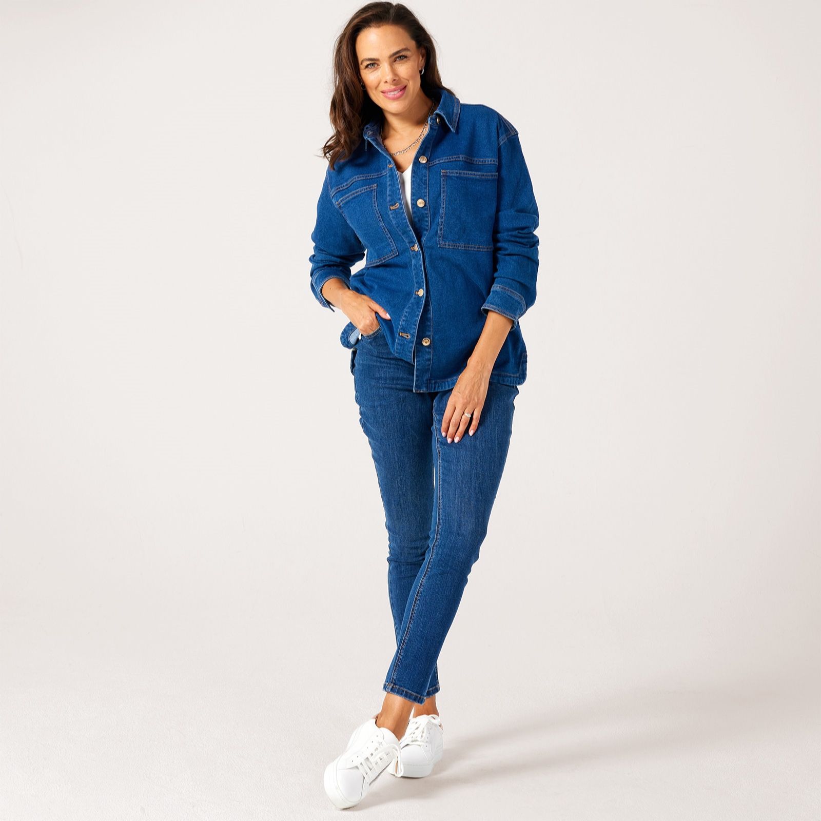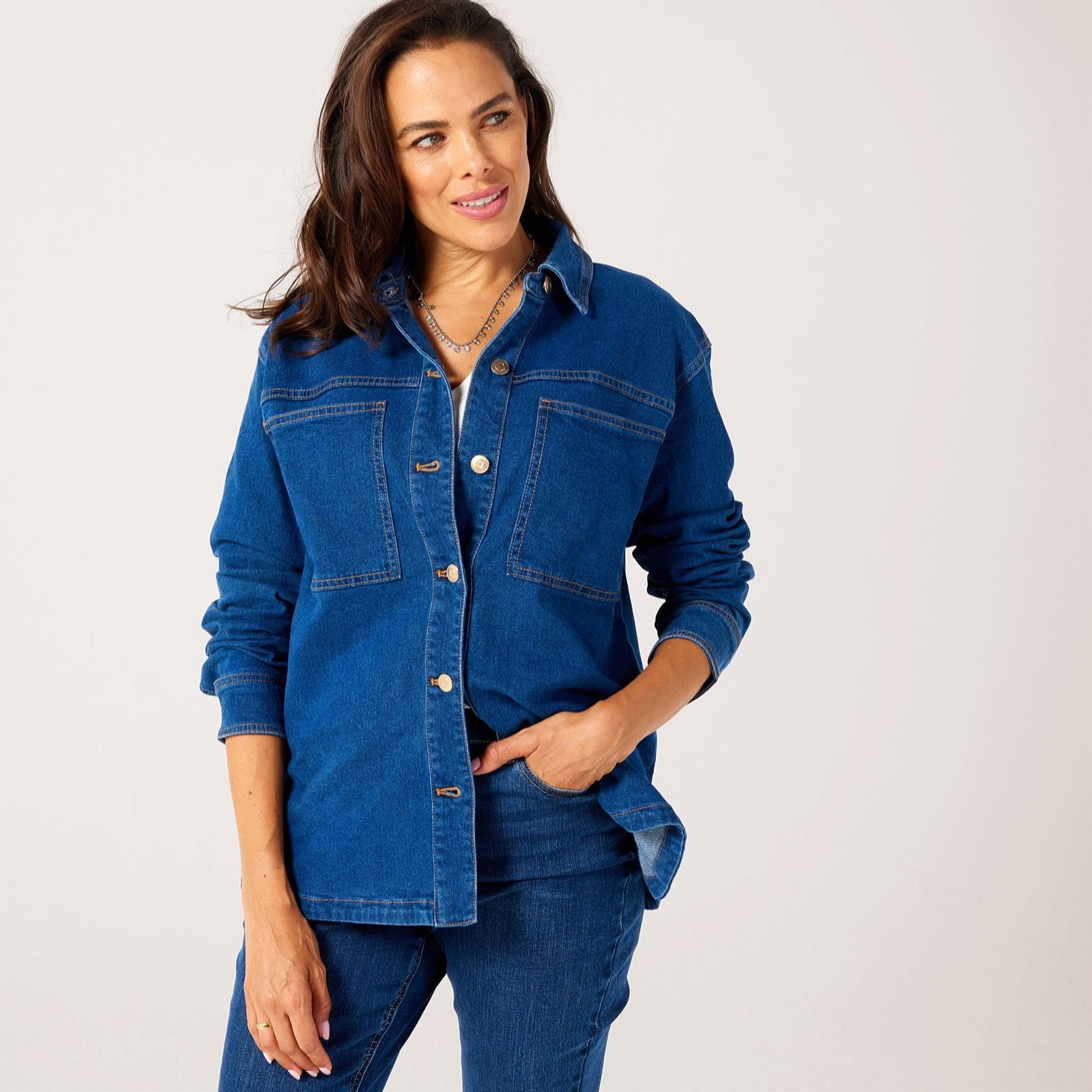 Effortlessly blending casual charm with everyday practicality, the denim shacket by Ruth Langsford is a versatile piece you'll find yourself reaching for season after season. Whether thrown over a simple tee for a relaxed day out or layered atop a blouse for a smart-casual finish, it adapts to any occasion. Try pairing it with slim jeans and trainers for an easy, laid-back look.