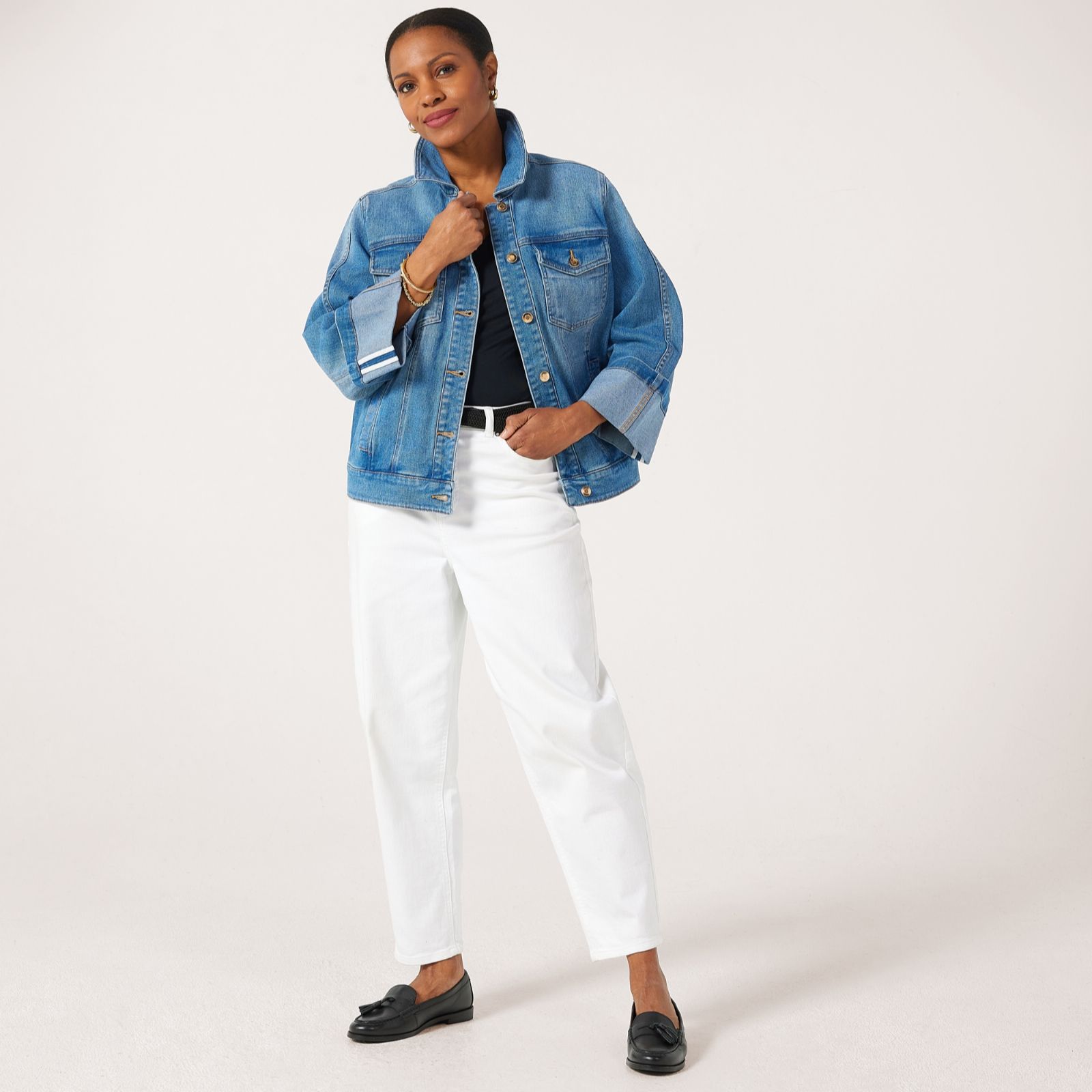 With its relaxed shape and stylish turn-back cuffs, the Ruth Langsford Denim Jacket brings a modern edge to a timeless favourite. Whether you're heading out for a weekend brunch or layering up for an evening stroll, this versatile piece adds instant polish to casual looks. Try pairing it with a printed midi dress or slim trousers for effortless everyday style.