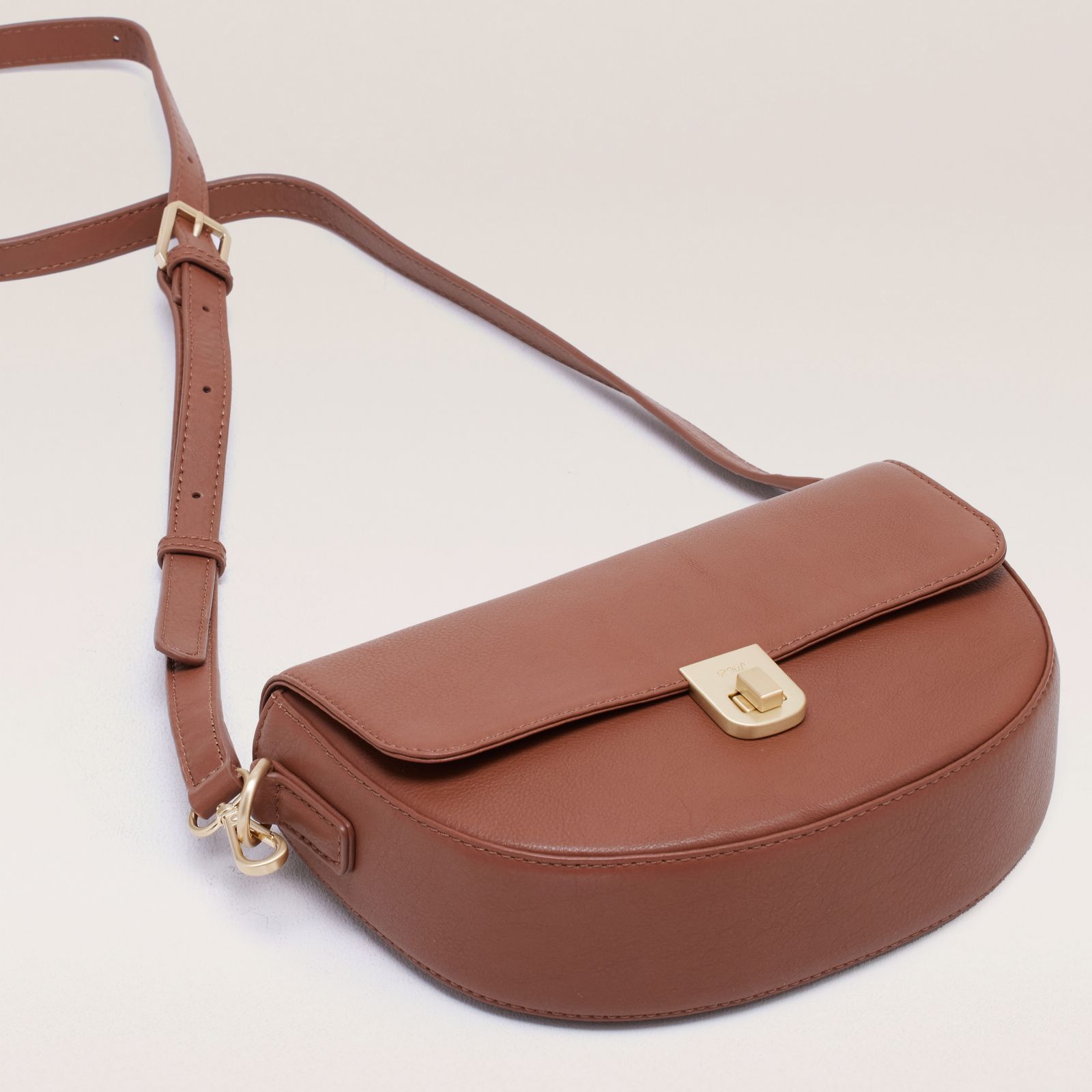 Embrace effortless style with the Ruth Langsford double strap cross-body bag. This small, flap-over, half-moon design is crafted from luxurious leather, featuring a branded lock that encloses the main compartment for added security. Inside, you'll find a large nylon zip pocket on the back wall, perfect for keeping your essentials organised. The bag comes with two detachable shoulder straps one long leather strap and an adjustable webbing strap offering versatile carrying options for any occasion.