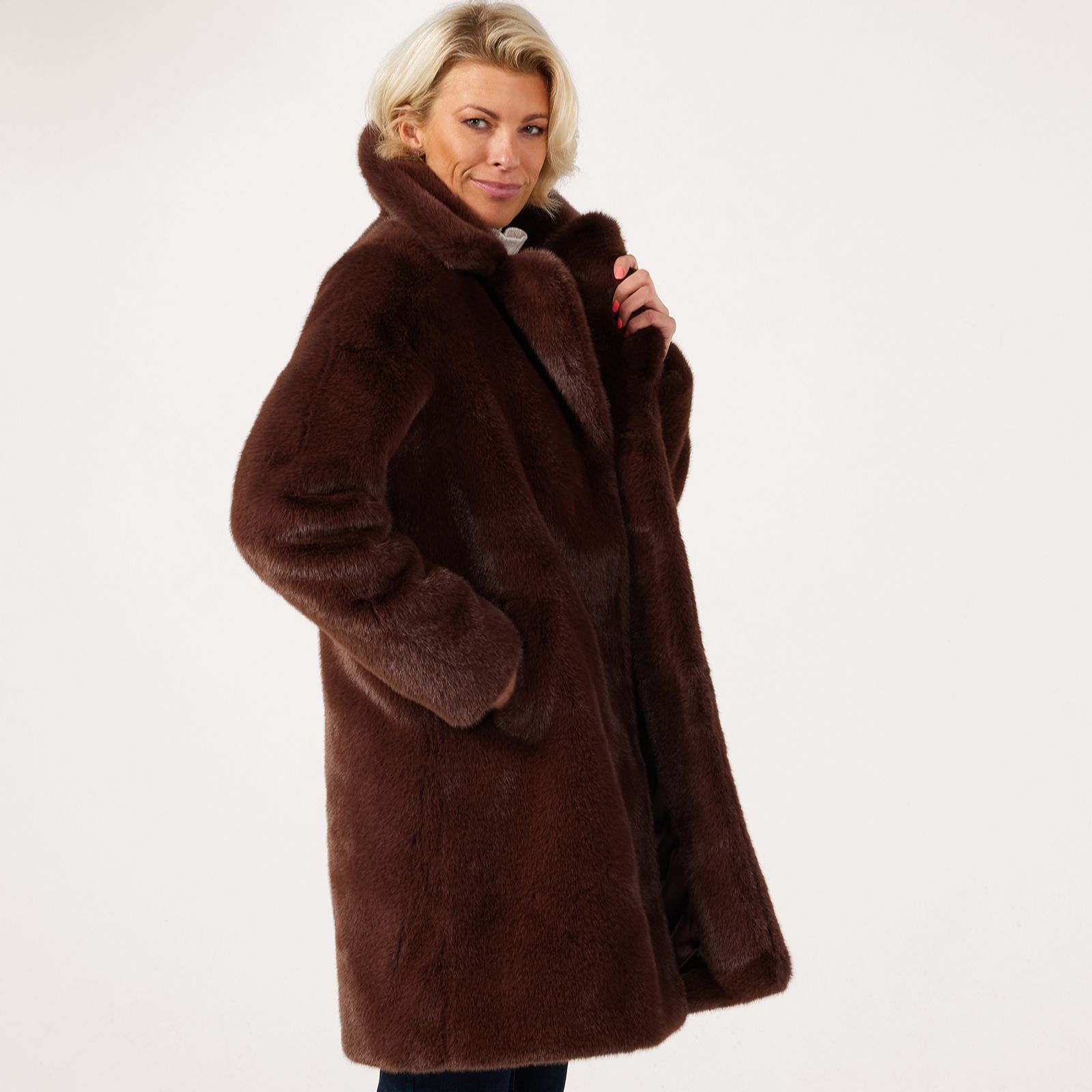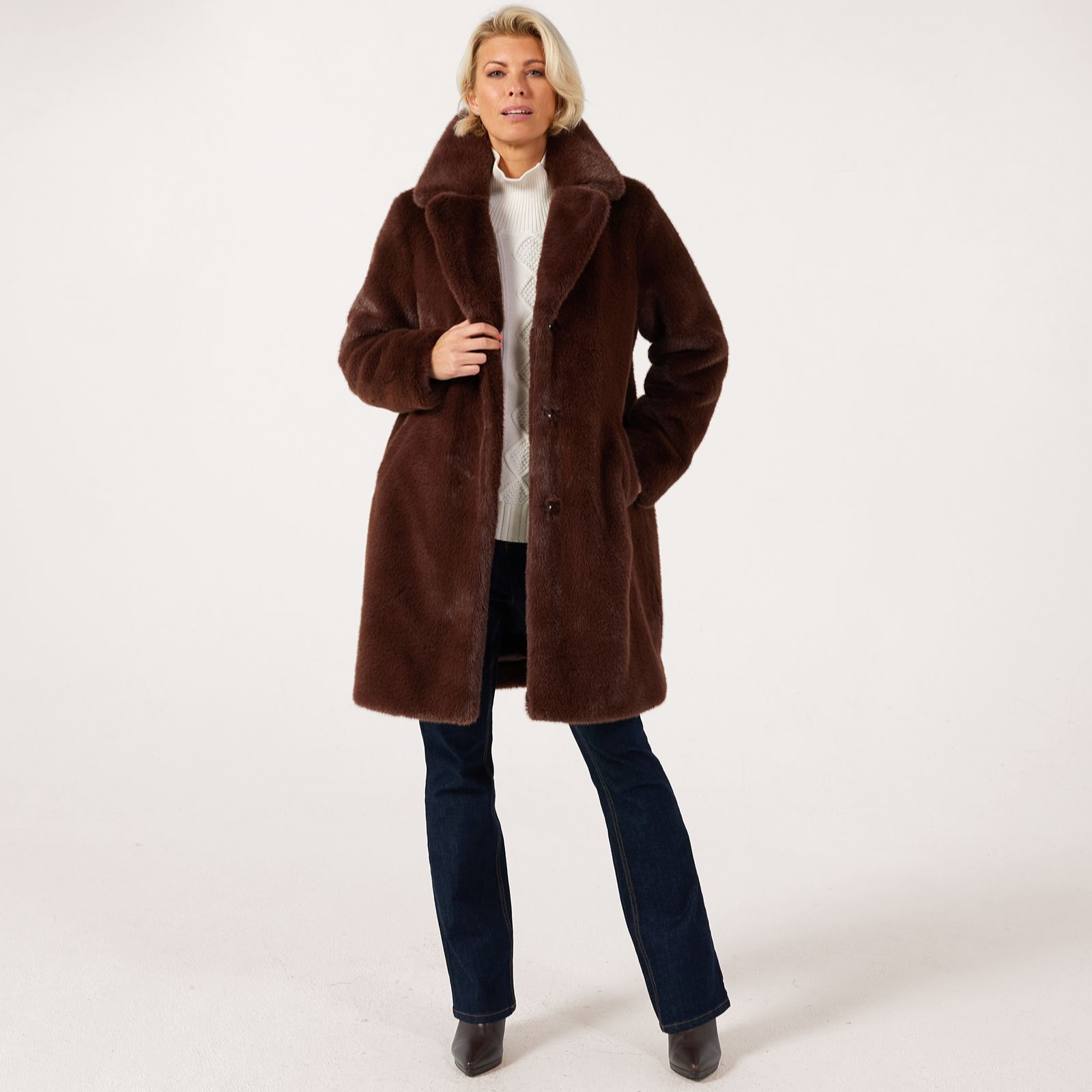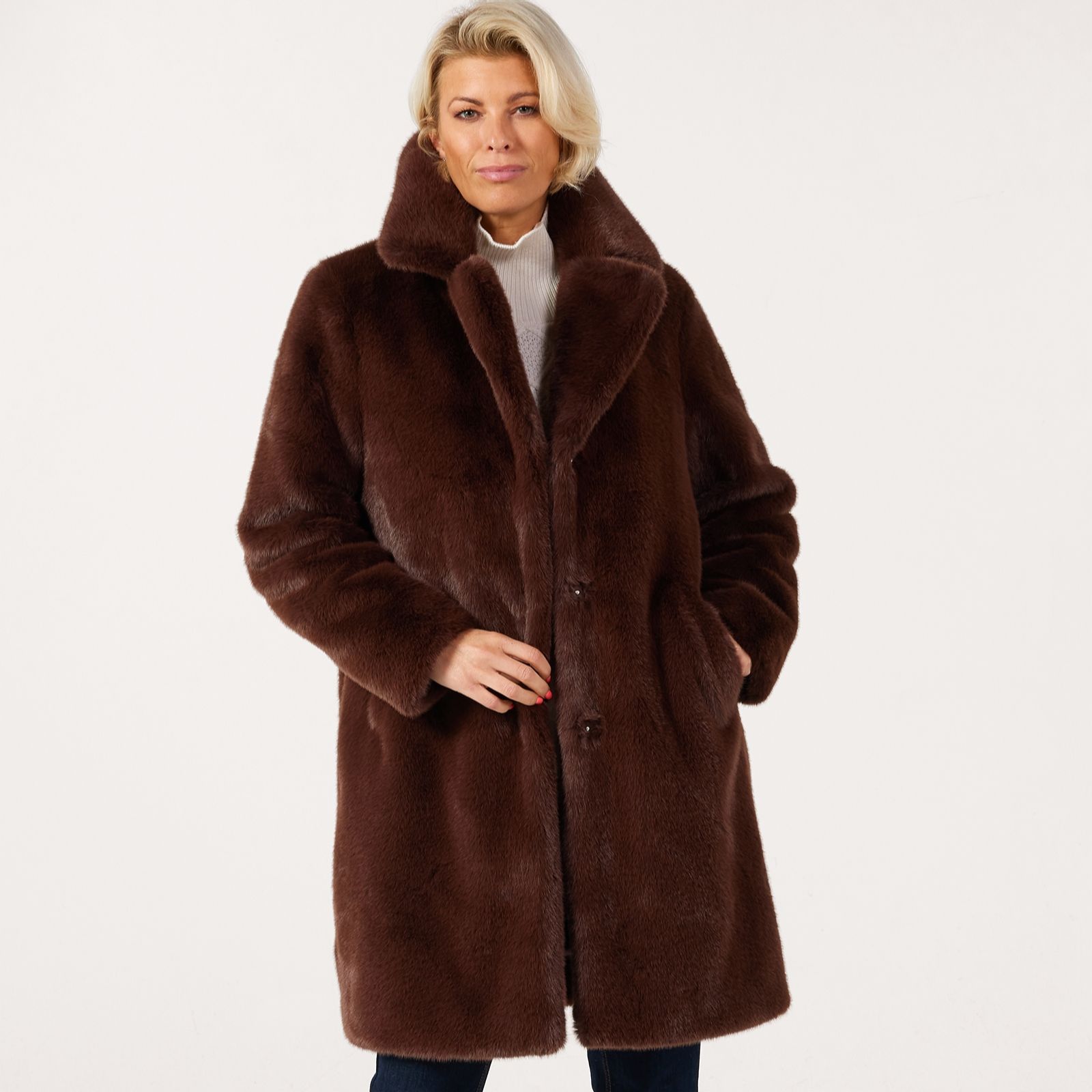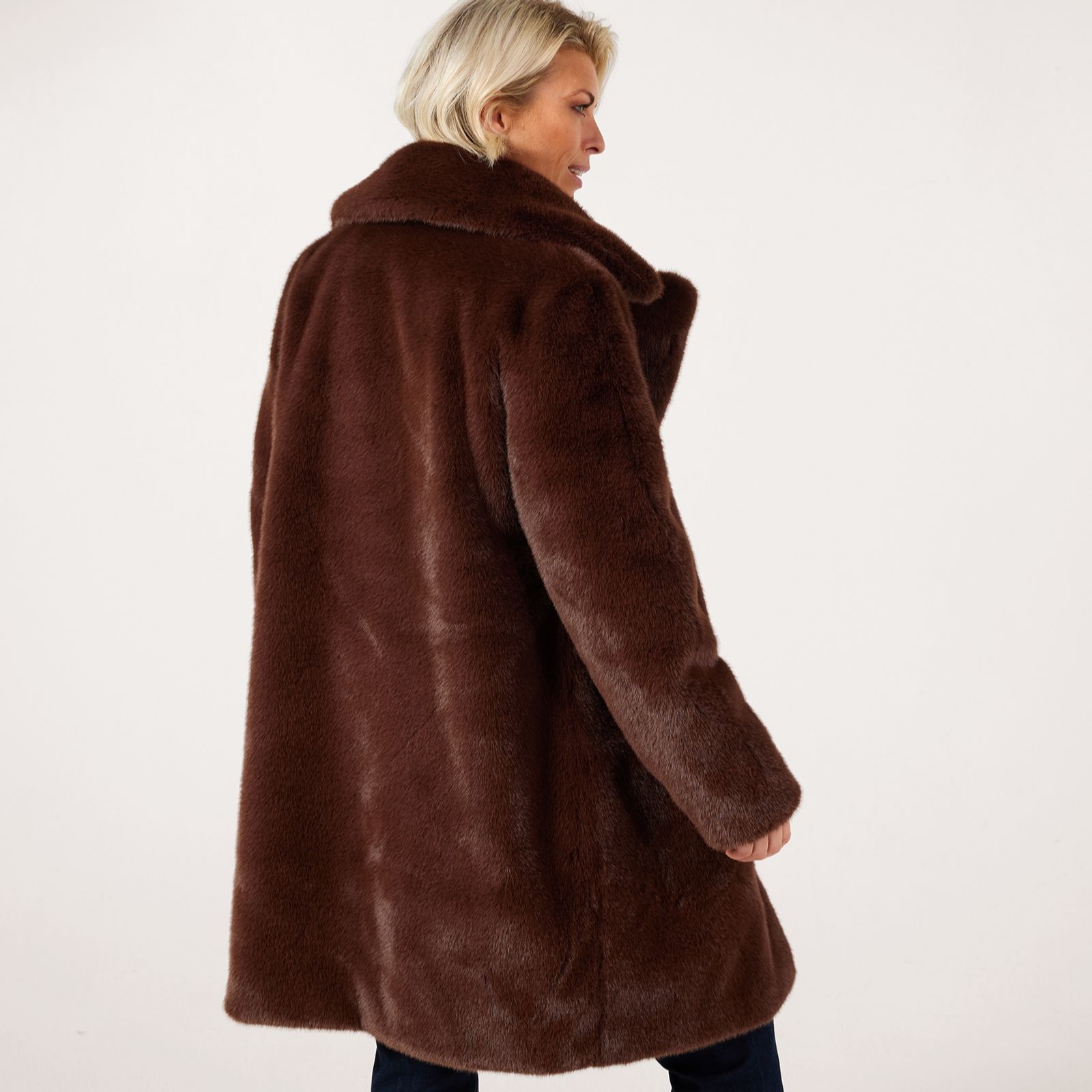 Wrap yourself in the sumptuous warmth of the Ruth Langsford faux fur coat, designed with plush faux fur for a look that exudes timeless glamour. Perfect for elevating your everyday style or adding a touch of luxury to evening outings, this coat offers both sophistication and comfort. Pair it with tailored trousers and heeled boots for a polished city look or drape it over a dress for an effortlessly chic finish.