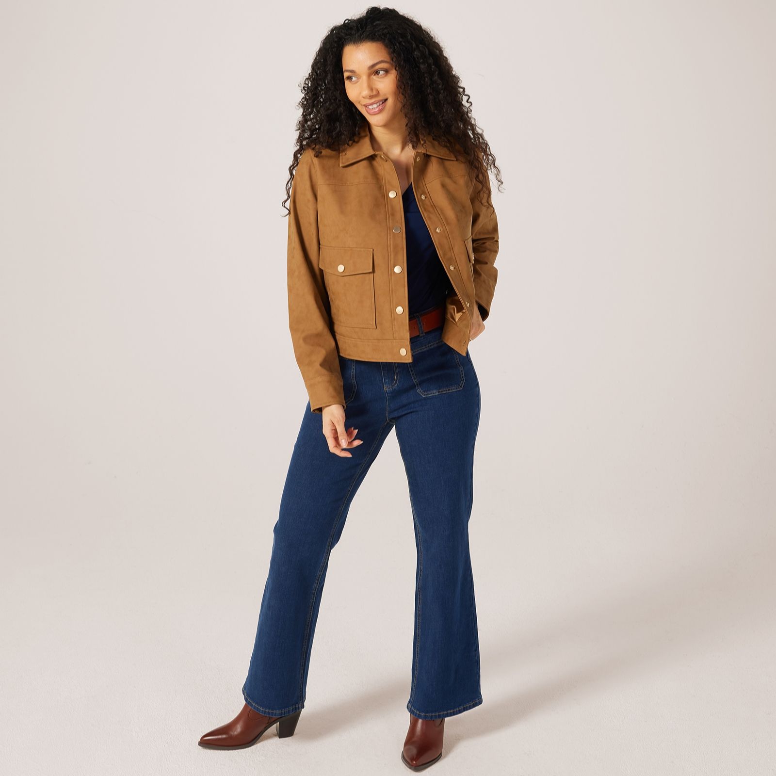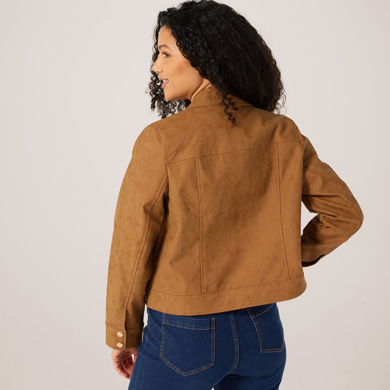 Add a touch of sophistication to your outerwear collection with the Ruth Langsford Faux Nubuck Pocket Front Jacket. This chic jacket features a sleek design with practical front pockets, making it perfect for both casual and smart occasions. Crafted with a soft faux nubuck finish, it offers a luxurious feel and a timeless appeal. Layer it over a blouse and tailored trousers for a polished office look, or pair it with jeans and a tee for a stylish weekend ensemble.
