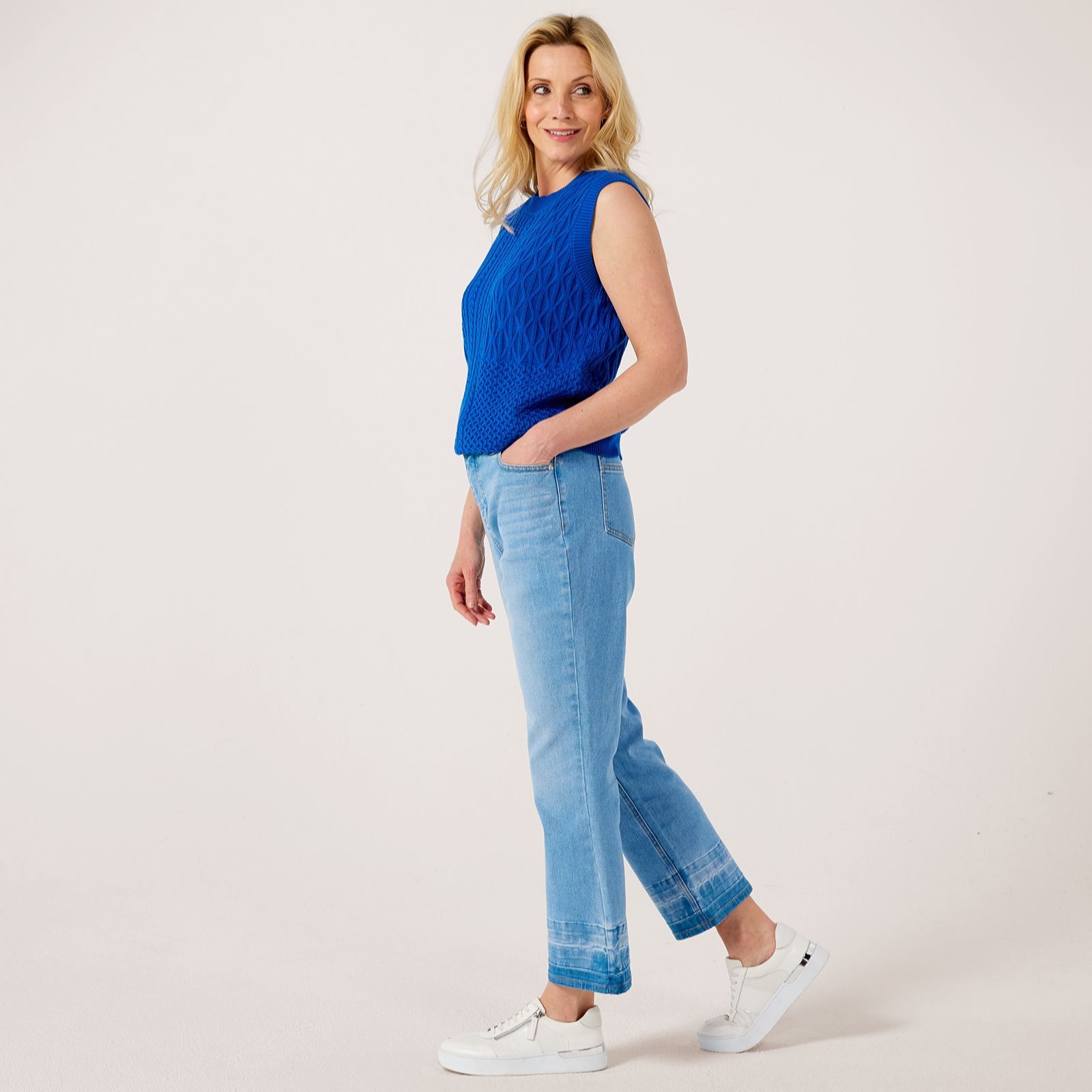 Take your everyday denim up a notch with Ruth Langsford's Hem Detail Jeans in a petite fit. These jeans are designed to offer a contemporary twist on classic denim, featuring an elegant hem detail that adds a touch of sophistication to your everyday style. Perfect for both casual outings and more polished occasions, these jeans provide a versatile option that can be dressed up or down. Pair with a crisp white shirt and loafers for a chic, effortless look.
