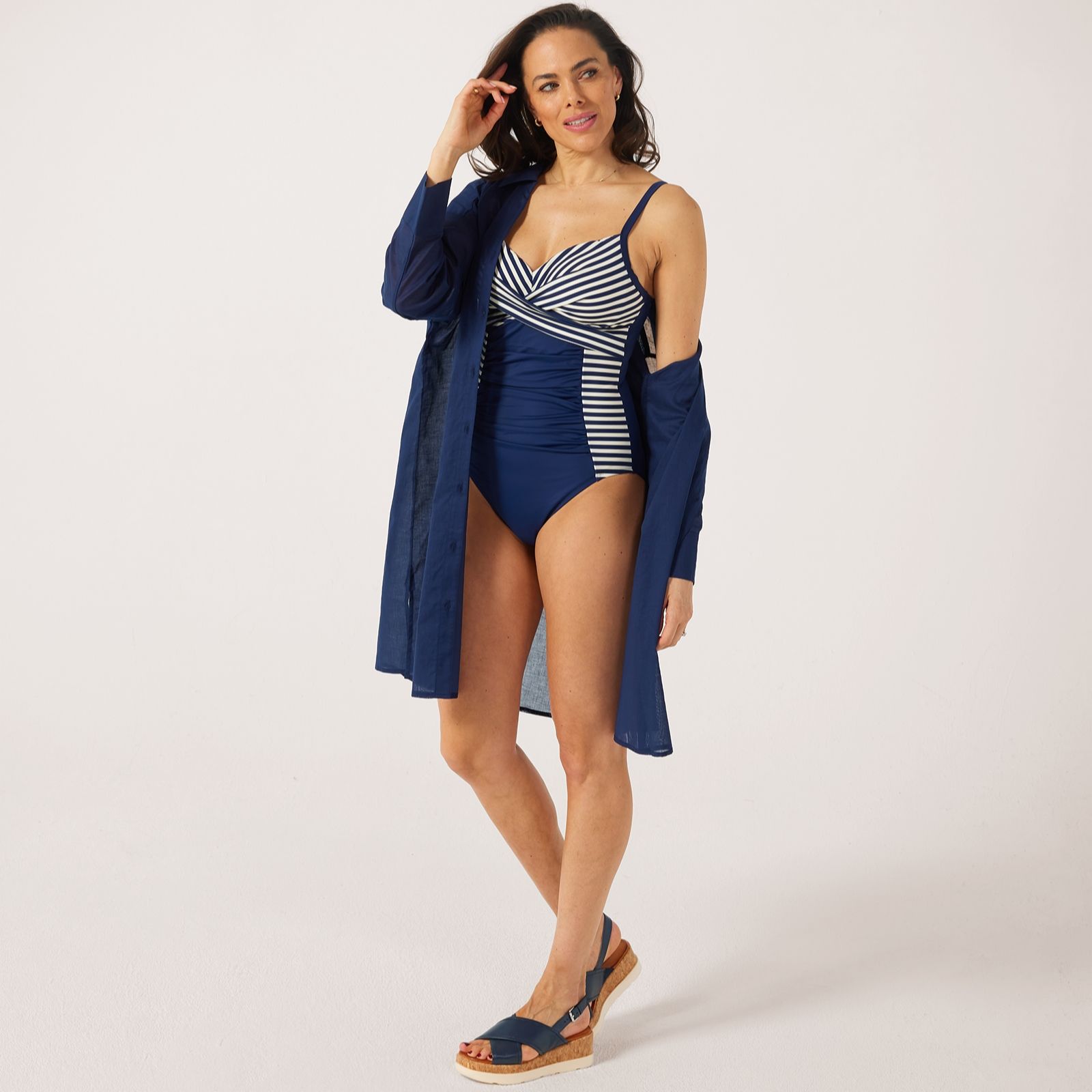 Ruth Langsford Holiday Shop Stripe Blocked Swimsuit