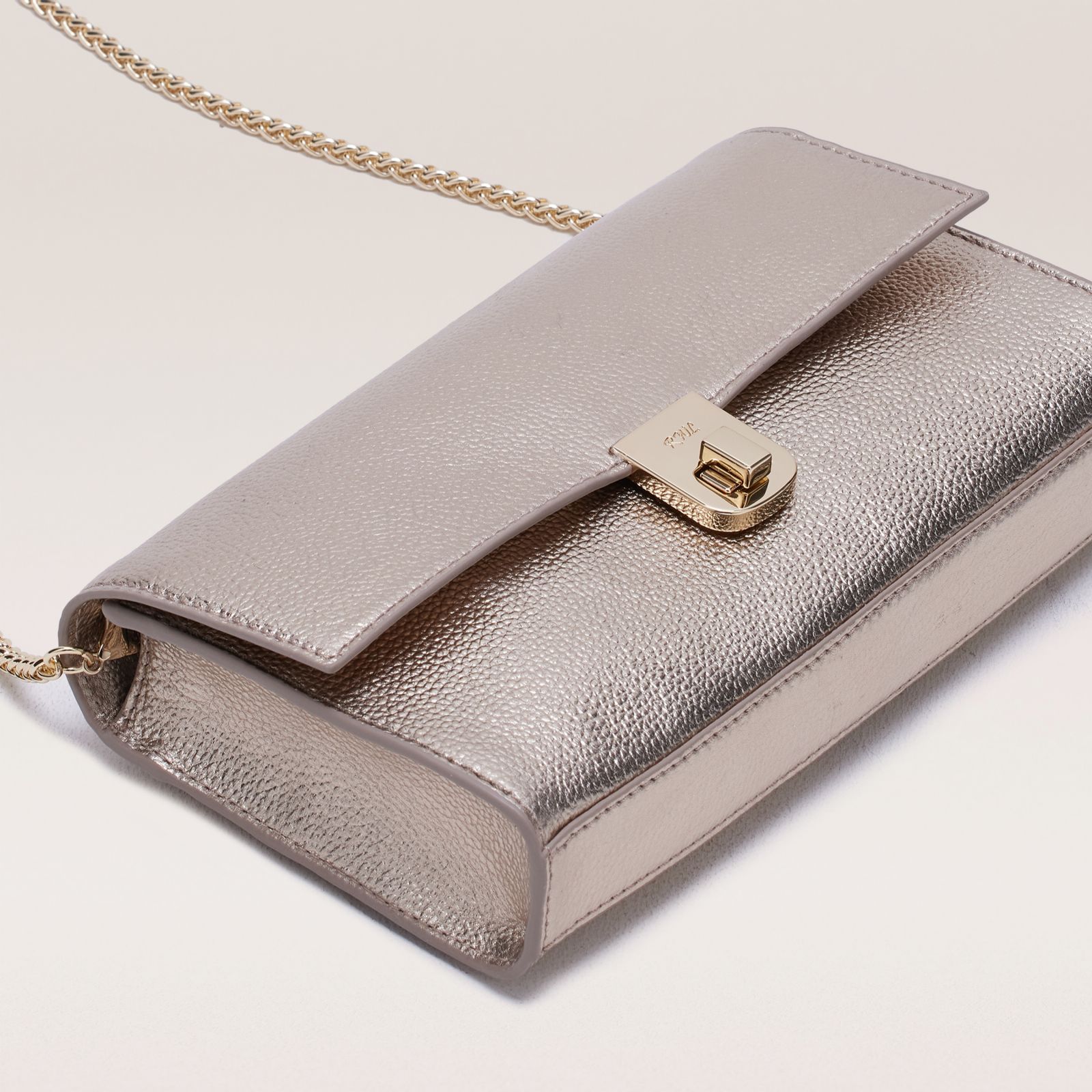 Be the main event with the Ruth Langsford flap cross-body occasion bag. This exquisite leather bag, adorned with a chic branded lock, is perfect for any event. Its spacious main compartment, complemented by a large zip pocket and slip pocket, ensures your essentials are always at hand. The detachable long chain handle adds a touch of versatility, allowing you to wear it over the shoulder or across the body. Whether you're heading to a party or a casual outing, this bag is your ideal companion.