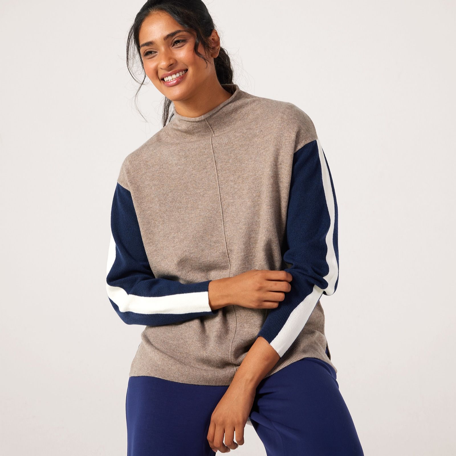 Step out in style with this colour blocked jumper from Ruth Langsford, where bold, contemporary panels meet a relaxed silhouette for a look that's both eye-catching and easy to wear. Whether you're heading to brunch with friends or adding a splash of personality to your office attire, this jumper is designed to make every outfit feel fresh and modern. Pair it with your favourite jeans or tailored trousers for a chic, confident finish.